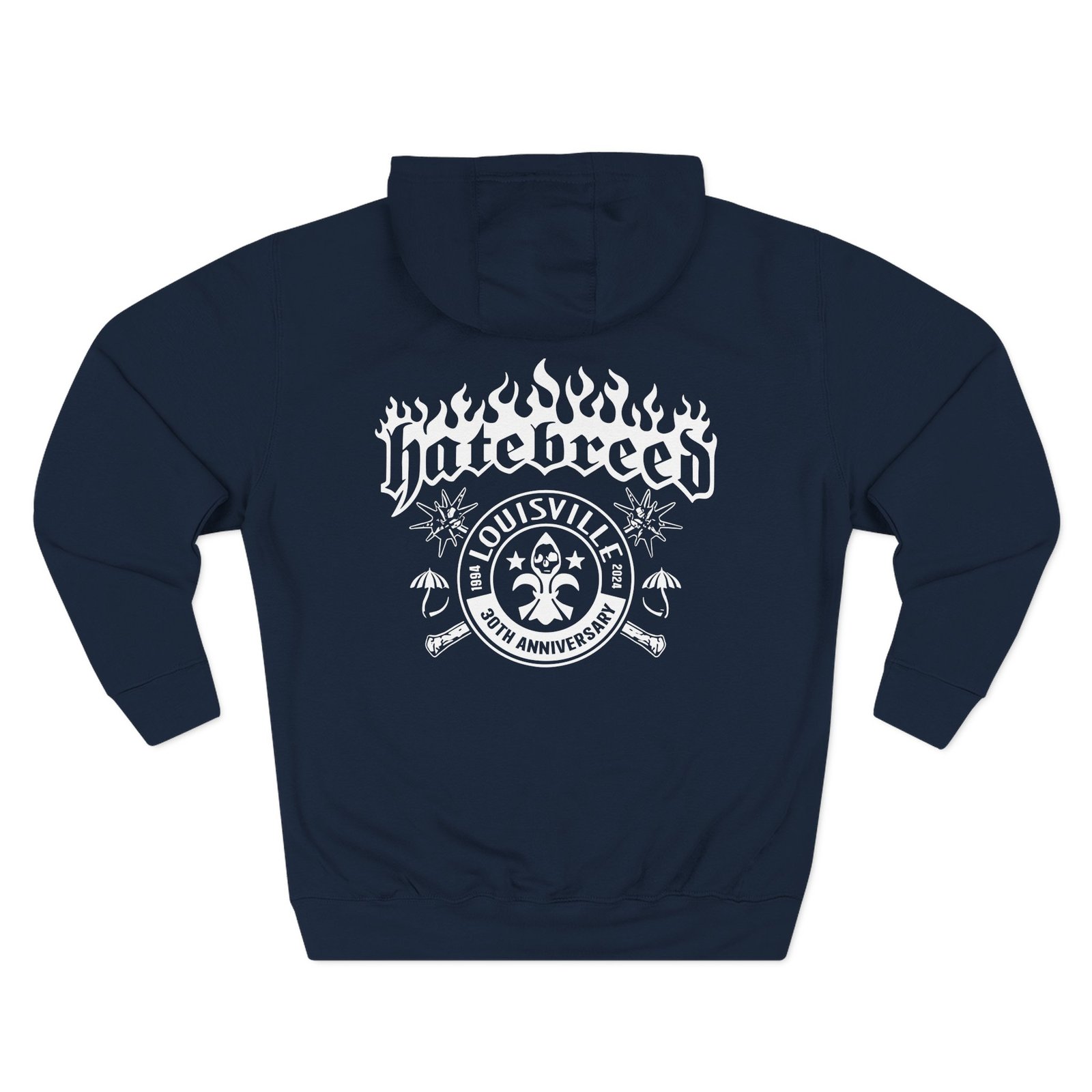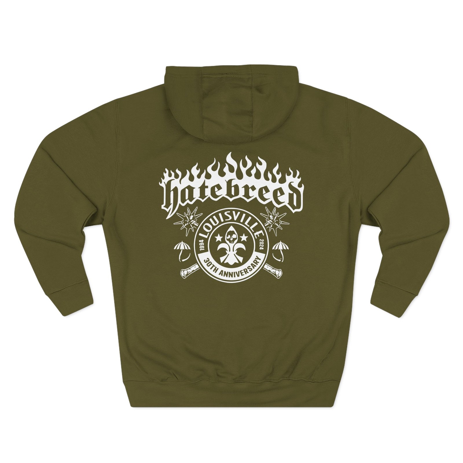 Beat the cold with this Hatebreed Louisville premium pullover hoodie that’s just the right layer of warm and cozy. Made with three-panel fleece lining, this pullover is double stitched for durability and roomy. Pick one in your favorite color to match your style.