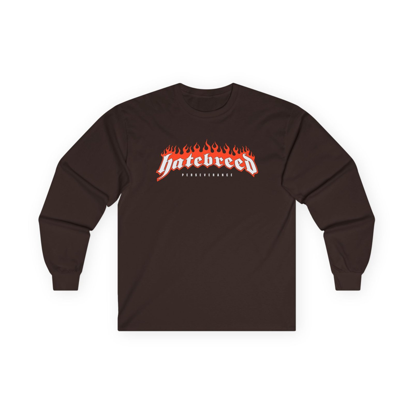 A bit more formal than a standard-issue t-shirt, the Hatebreed Perseverance ultra cotton long sleeve tee is a clear comfort winner. The sleeves also act as a nice frame. There are no side seams. The shoulders are taped for improved durability. This makes for a good fitting around the shoulders and neck. The cotton used for these shirts is environmentally friendly.