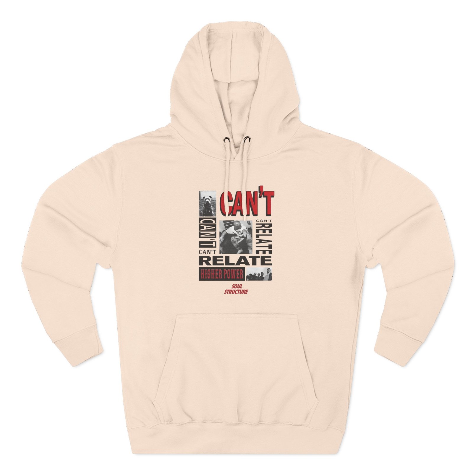 Beat the cold with this Higher Power Can't Relate premium pullover hoodie that’s just the right layer of warm and cozy. Made with three-panel fleece lining, this pullover is double stitched for durability and roomy. Pick one in your favorite color to match your style.