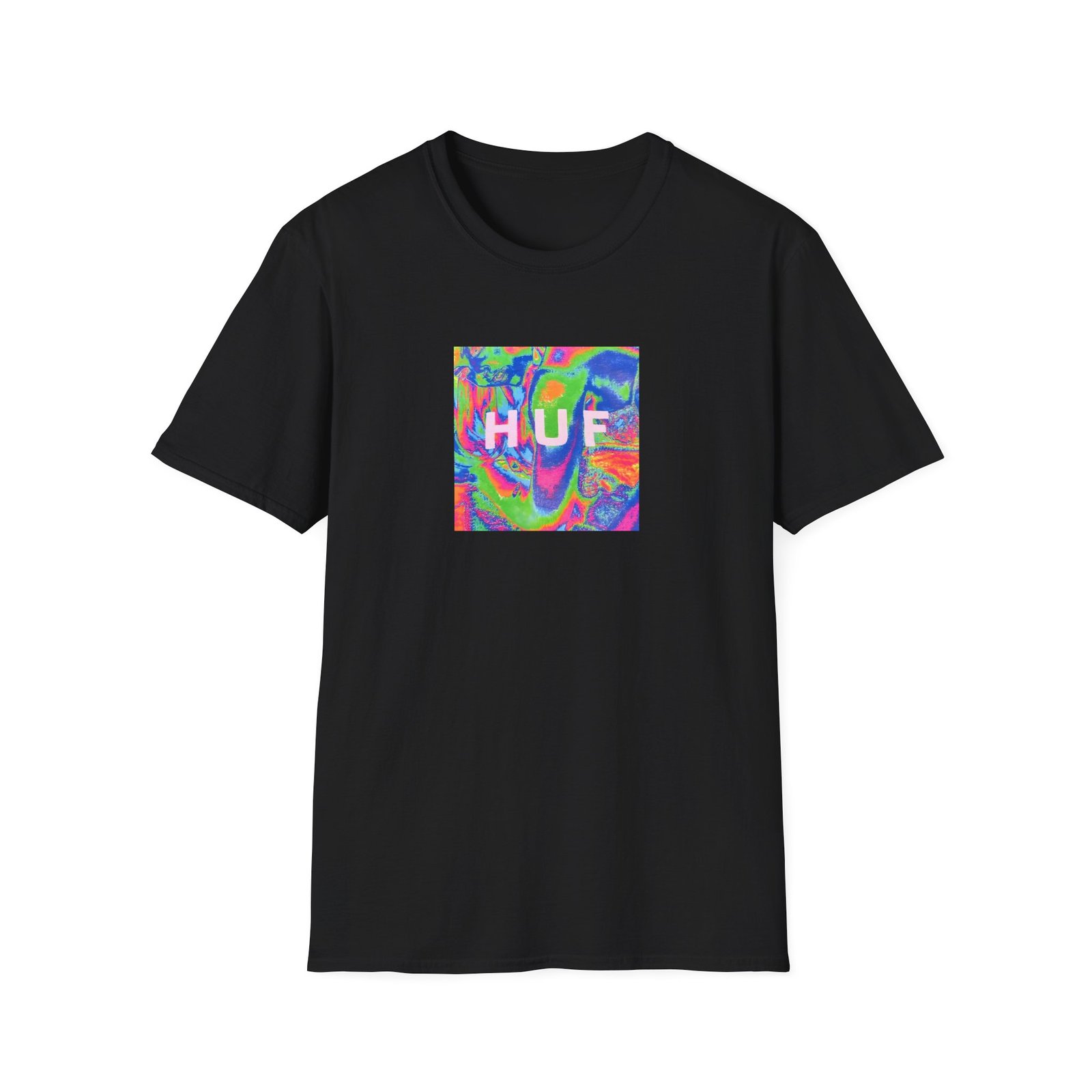 The Housebox Huf Acid House Box Logo unisex soft-style t-shirt puts a new spin on casual comfort. Made from very soft materials, this tee is 100% cotton for solid colors. Heather colors and sports grey include polyester. The shoulders have twill tape for improved durability. There are no side seams. The collar is made with ribbed knitting to prevent curling damage.