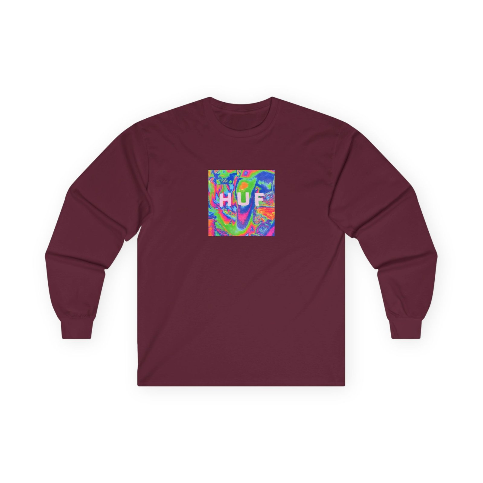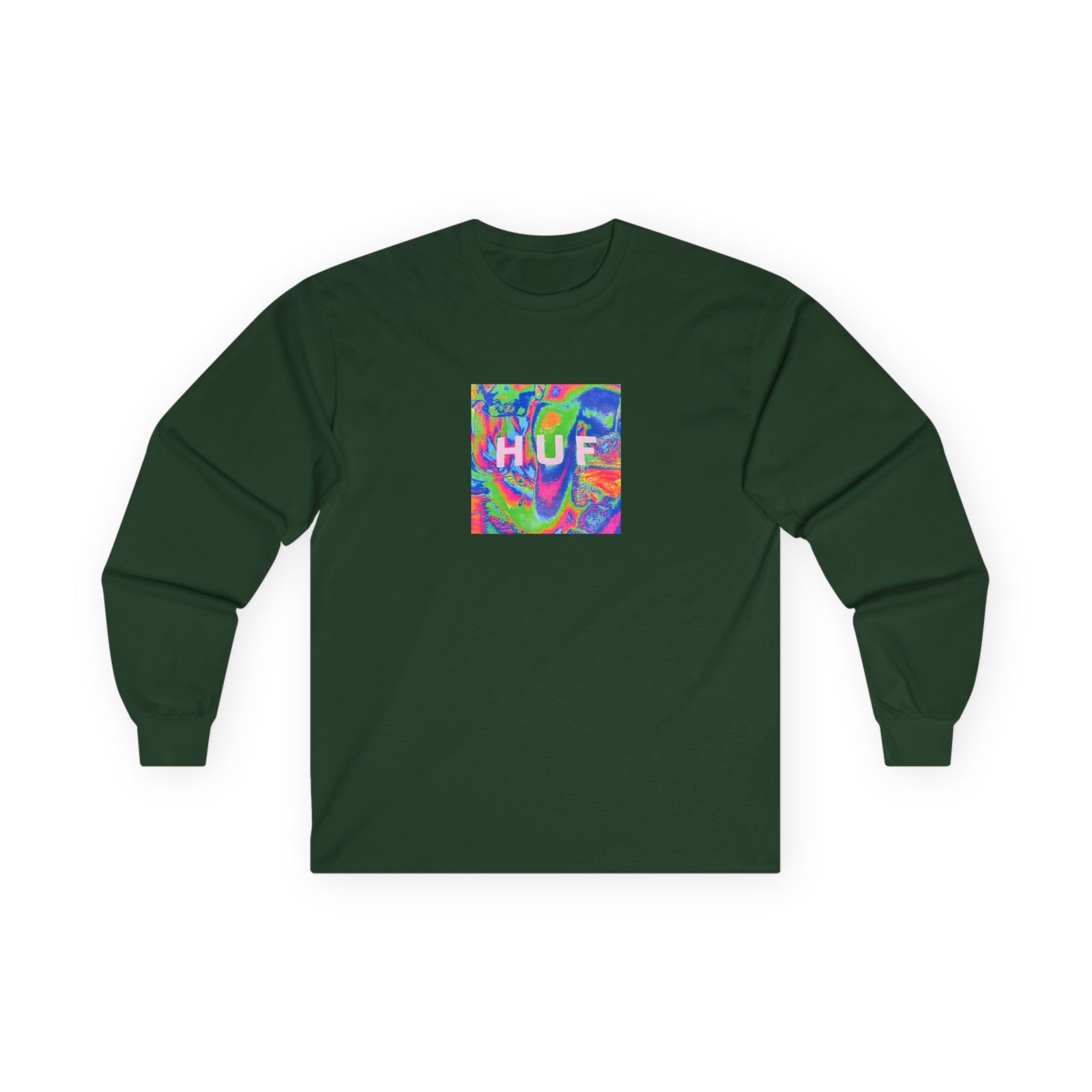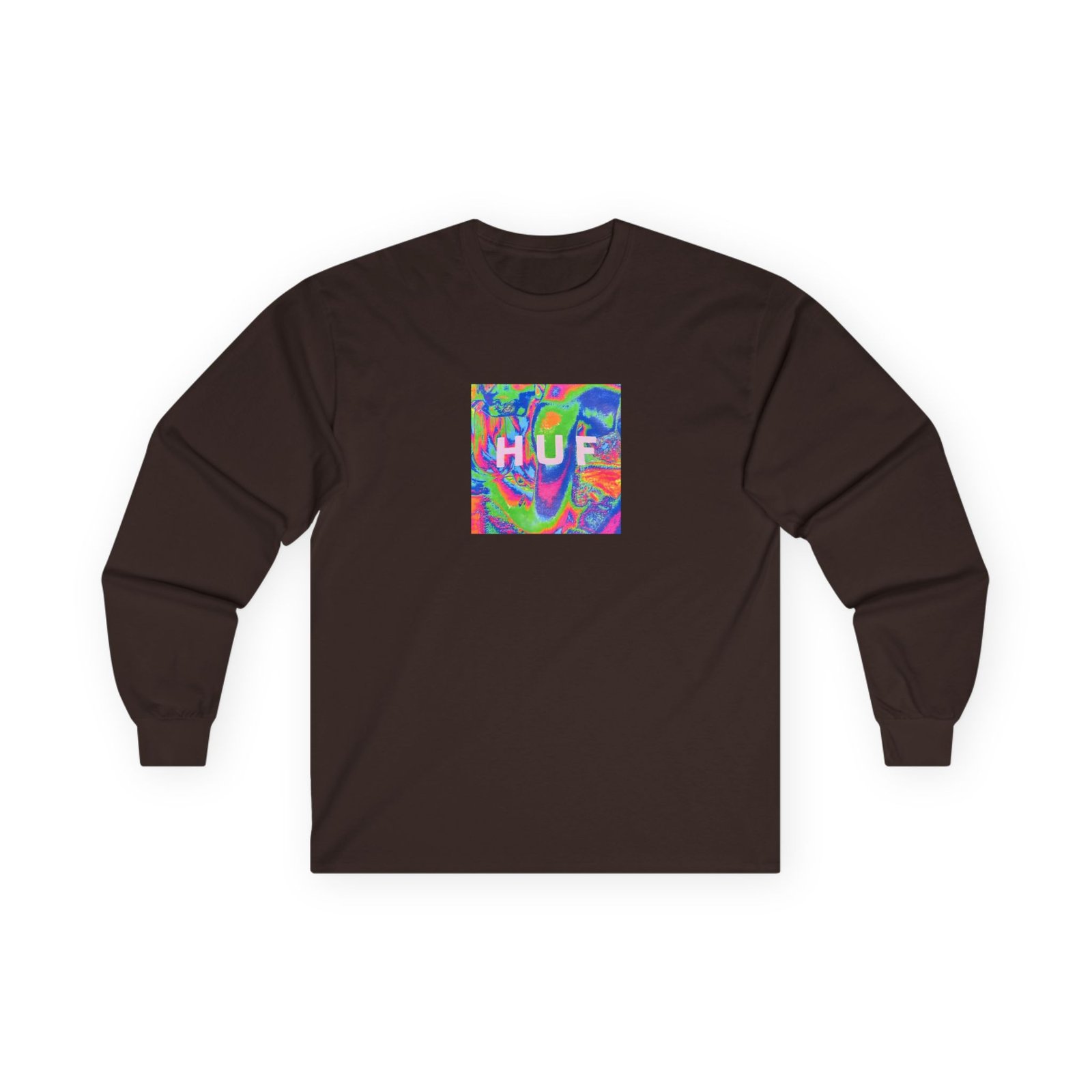 A bit more formal than a standard-issue t-shirt, the Housebox Huf Acid House Box Logo ultra cotton long sleeve tee is a clear comfort winner. The sleeves also act as a nice frame. There are no side seams. The shoulders are taped for improved durability. This makes for a good fitting around the shoulders and neck. The cotton used for these shirts is environmentally friendly.