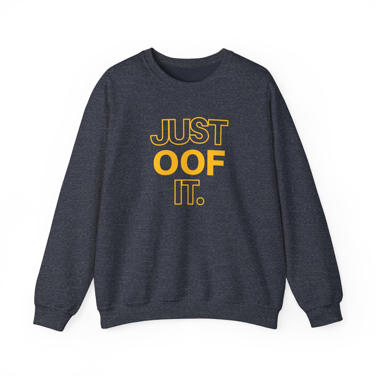 Ideal for any situation, a Housebox Just Oof It unisex heavy blend crewneck sweatshirt is pure comfort. These garments are made from polyester and cotton. This combination helps designs come out looking fresh and beautiful. The collar is ribbed knit, so it retains its shape even after washing. There are no itchy side seams on these sweaters.