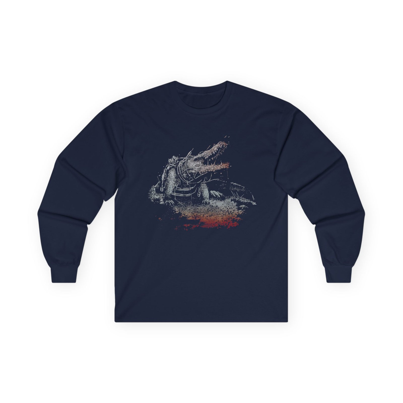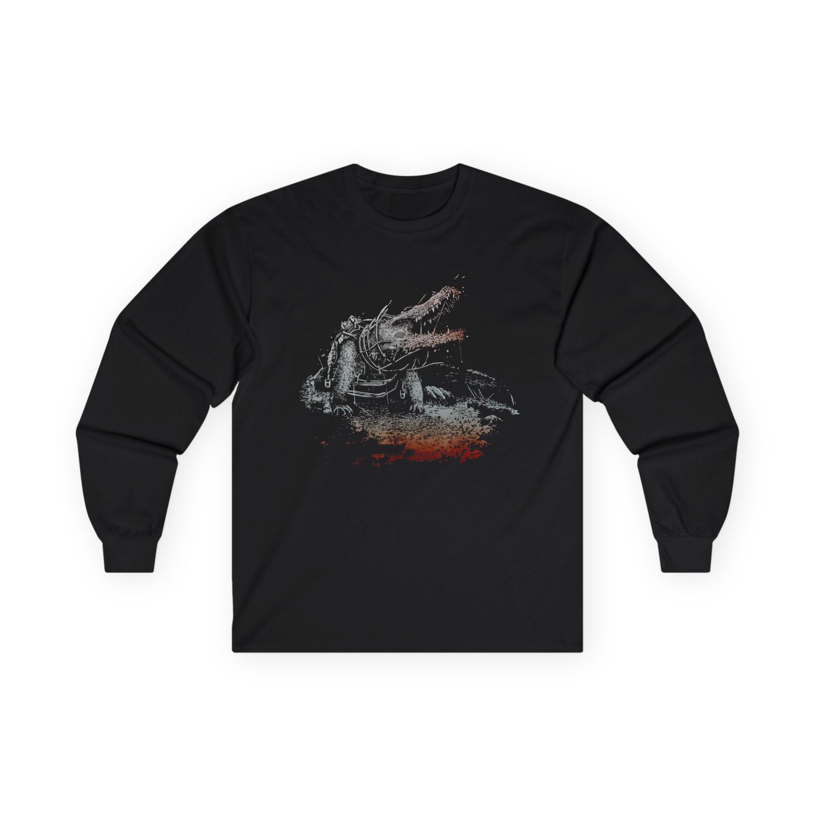 A bit more formal than a standard-issue t-shirt, the Hunt Show Down Rotjaw ultra cotton long sleeve tee is a clear comfort winner. The sleeves also act as a nice frame. There are no side seams. The shoulders are taped for improved durability. This makes for a good fitting around the shoulders and neck. The cotton used for these shirts is environmentally friendly.