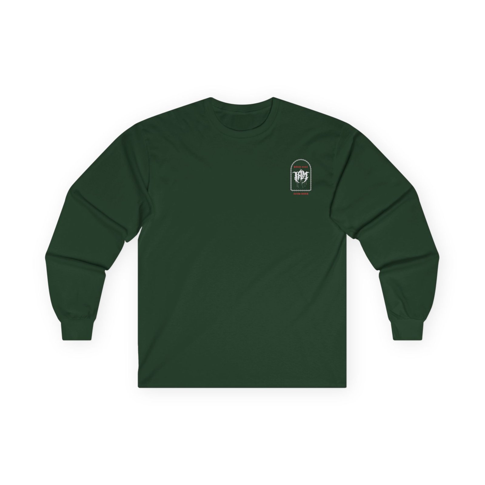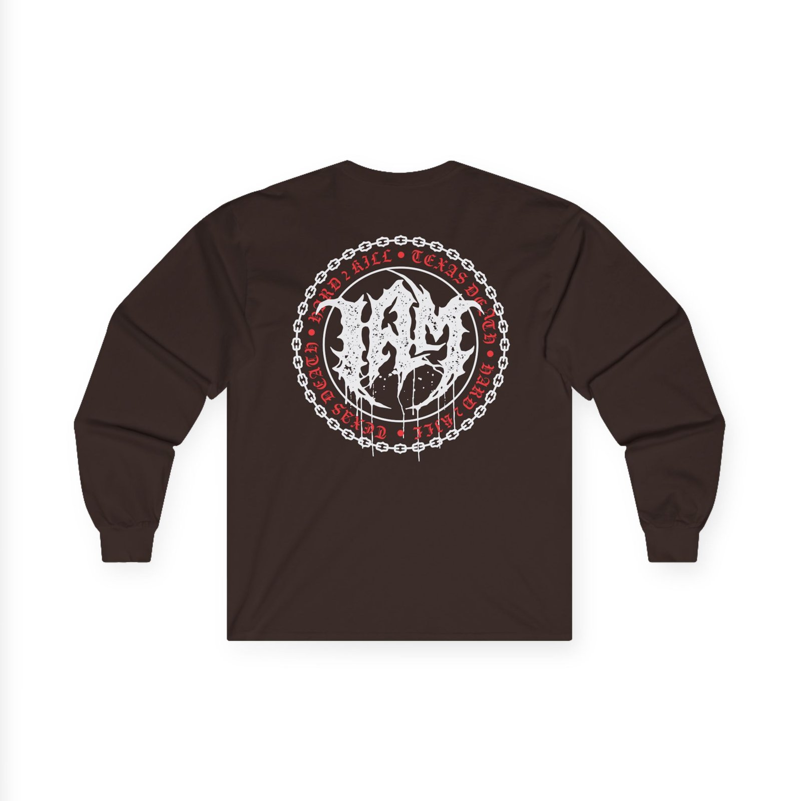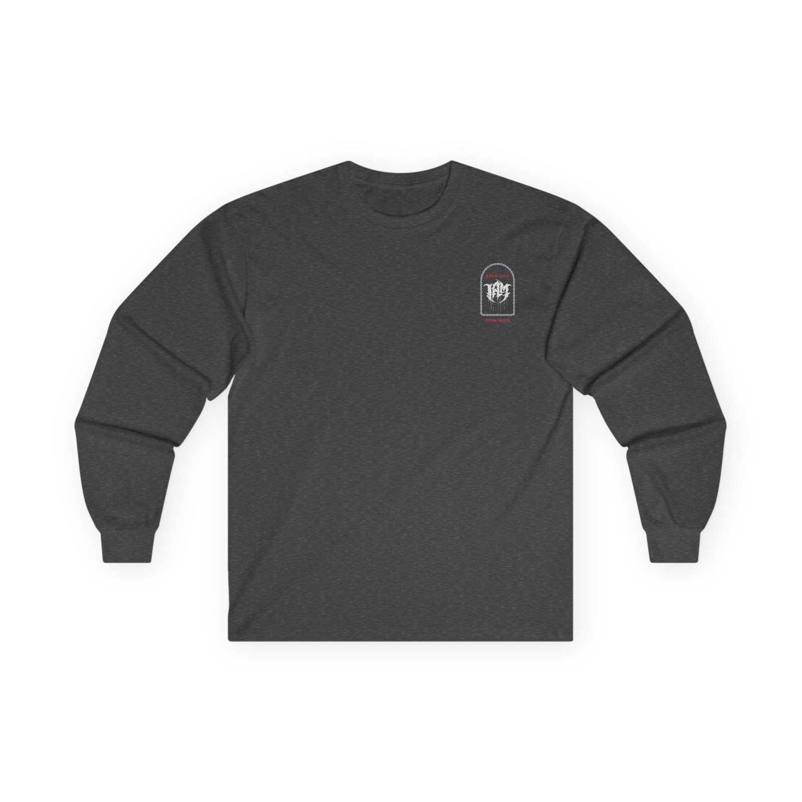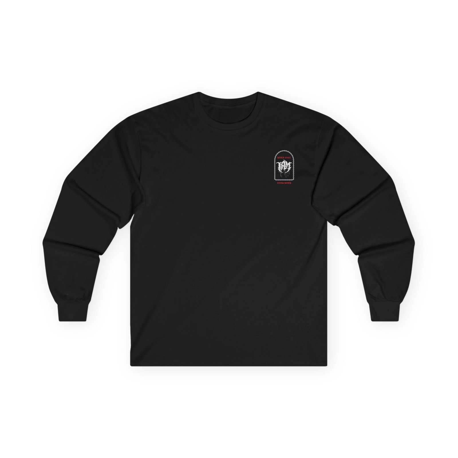A bit more formal than a standard-issue t-shirt, the I AM Texas Death ultra cotton long sleeve tee is a clear comfort winner. The sleeves also act as a nice frame. There are no side seams. The shoulders are taped for improved durability. This makes for a good fitting around the shoulders and neck. The cotton used for these shirts is environmentally friendly.