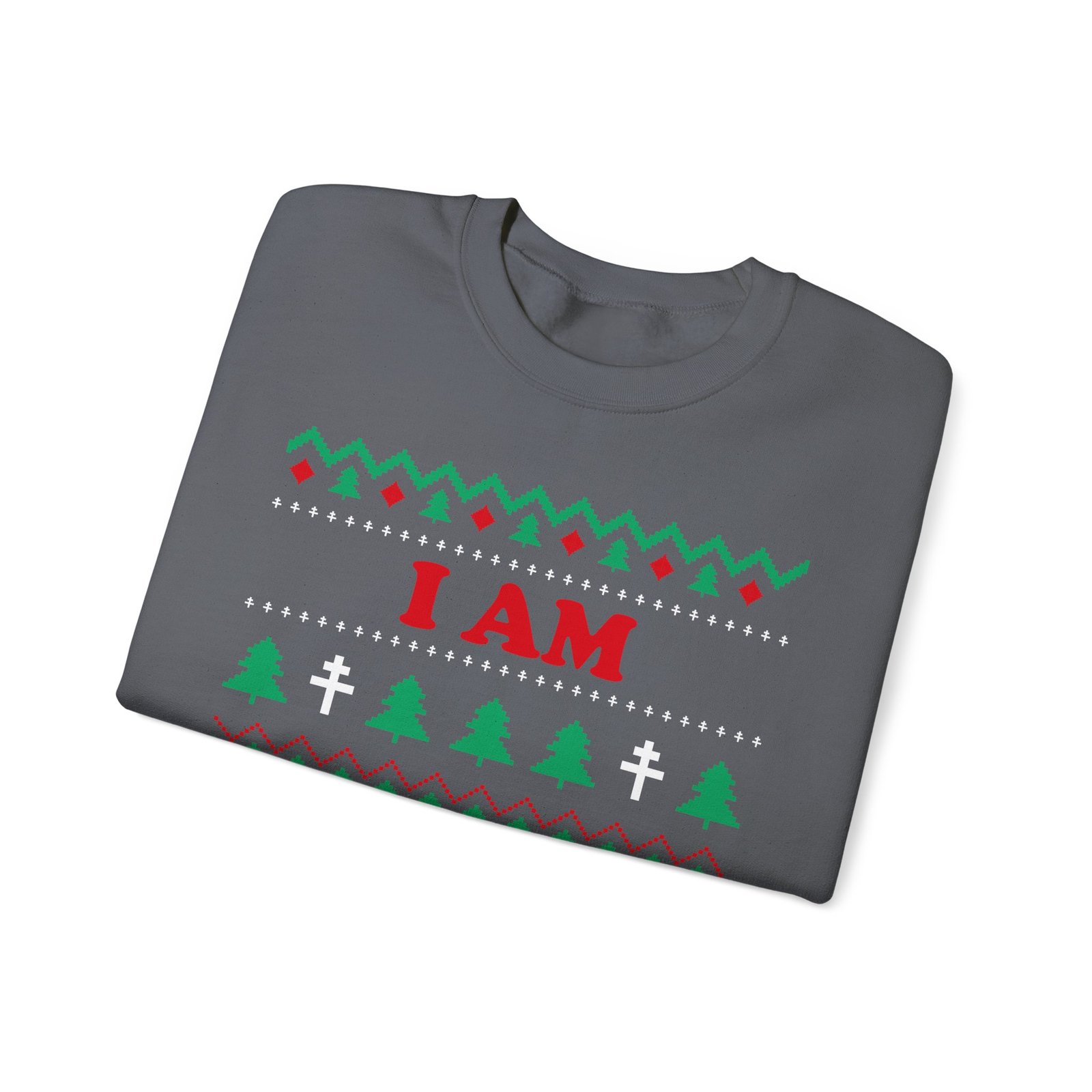 Ideal for any situation, a I AM unisex heavy blend crewneck sweatshirt is pure comfort. These garments are made from polyester and cotton. This combination helps designs come out looking fresh and beautiful. The collar is ribbed knit, so it retains its shape even after washing. There are no itchy side seams on these sweaters.
