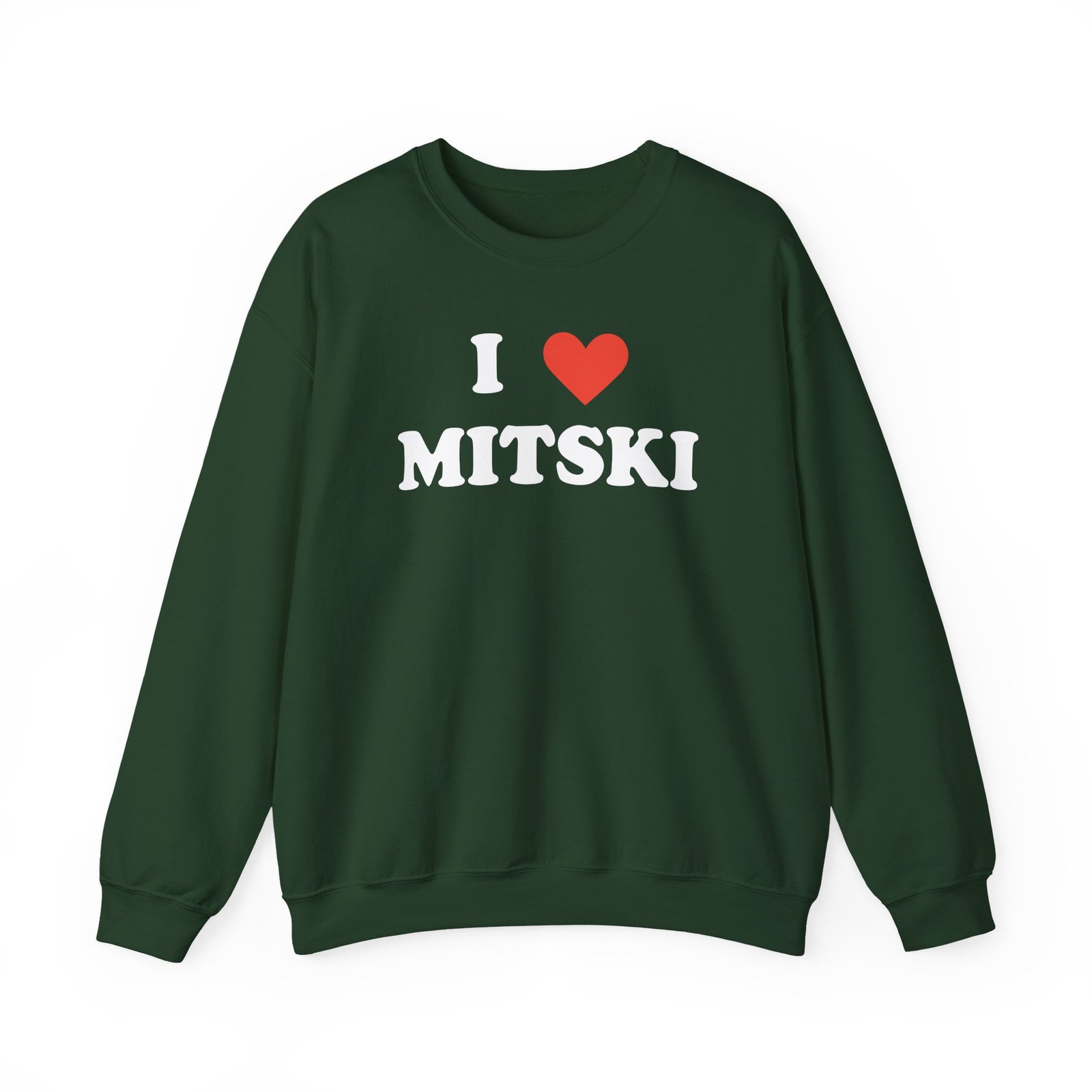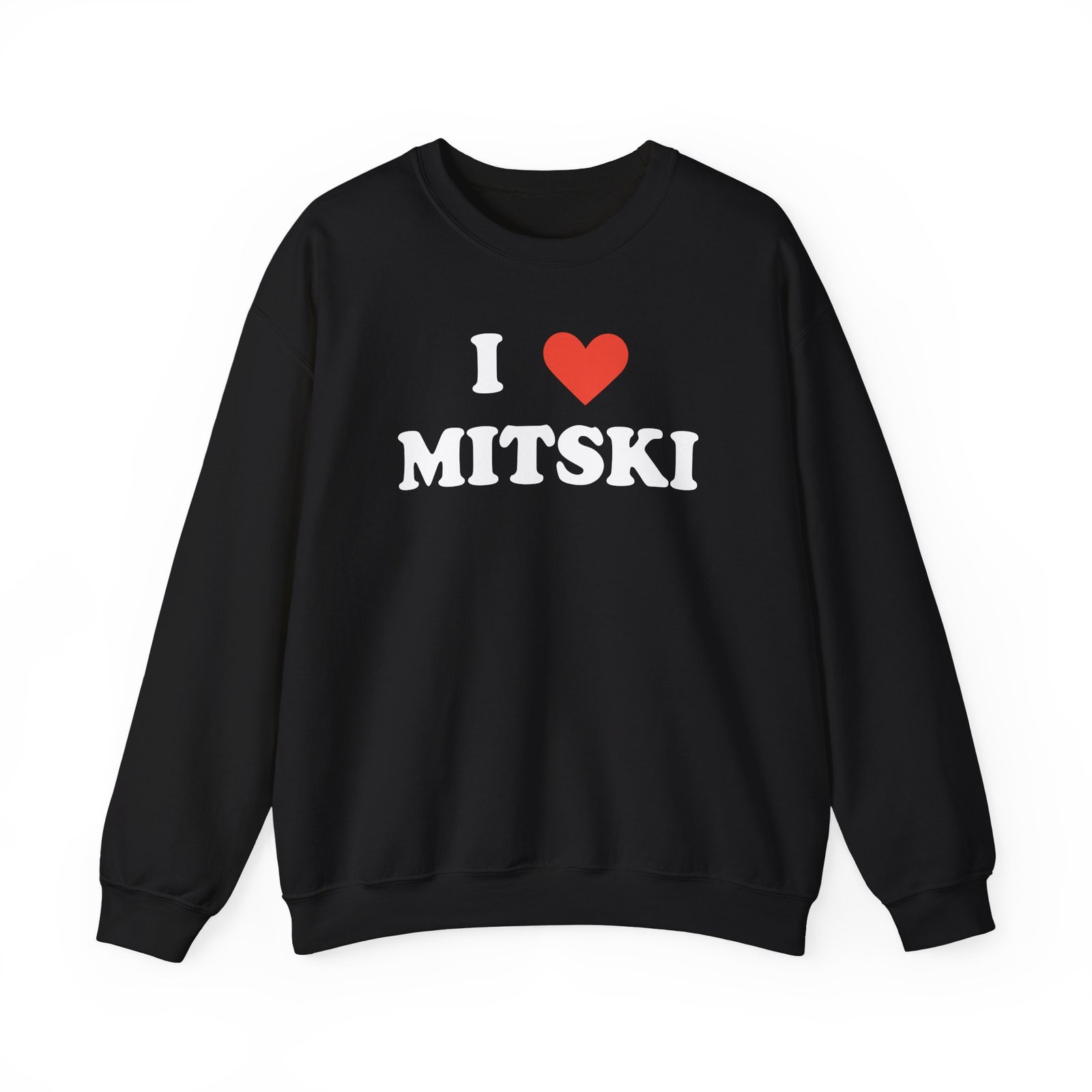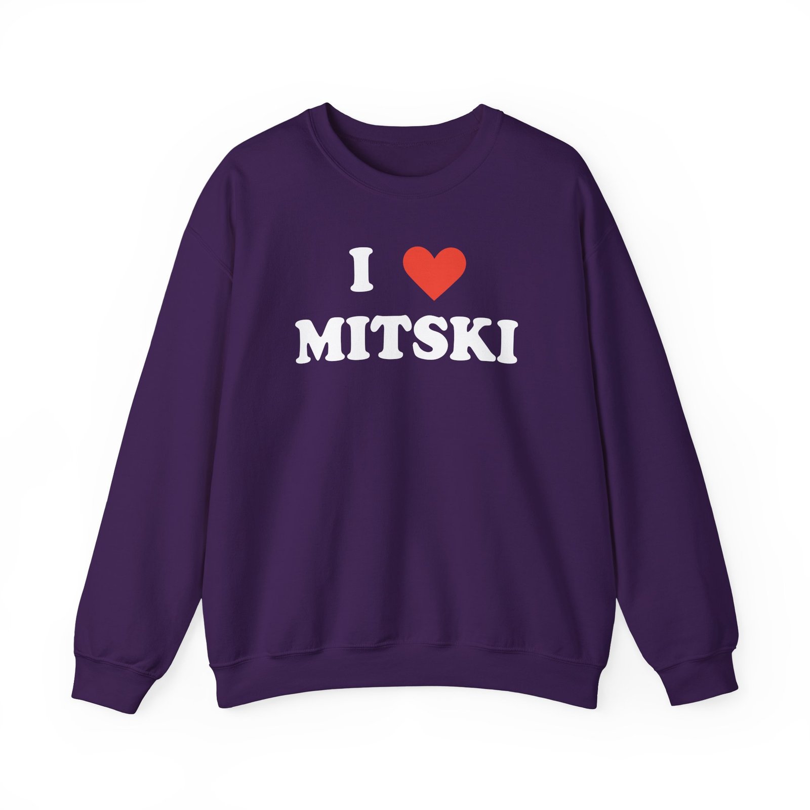 Ideal for any situation, a I Love Mitski unisex heavy blend crewneck sweatshirt is pure comfort. These garments are made from polyester and cotton. This combination helps designs come out looking fresh and beautiful. The collar is ribbed knit, so it retains its shape even after washing. There are no itchy side seams on these sweaters.