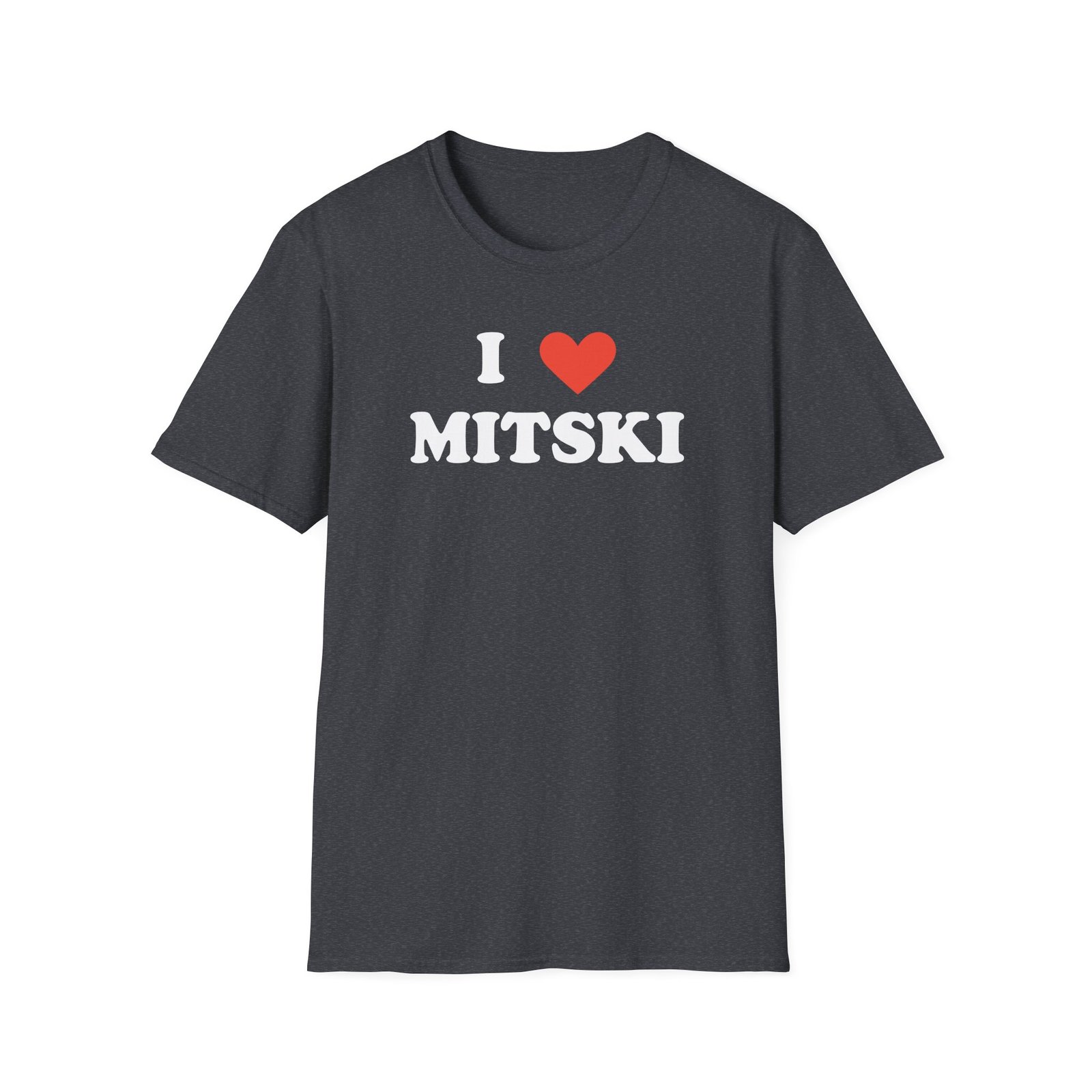 The I Love Mitski unisex soft-style t-shirt puts a new spin on casual comfort. Made from very soft materials, this tee is 100% cotton for solid colors. Heather colors and sports grey include polyester. The shoulders have twill tape for improved durability. There are no side seams. The collar is made with ribbed knitting to prevent curling damage.