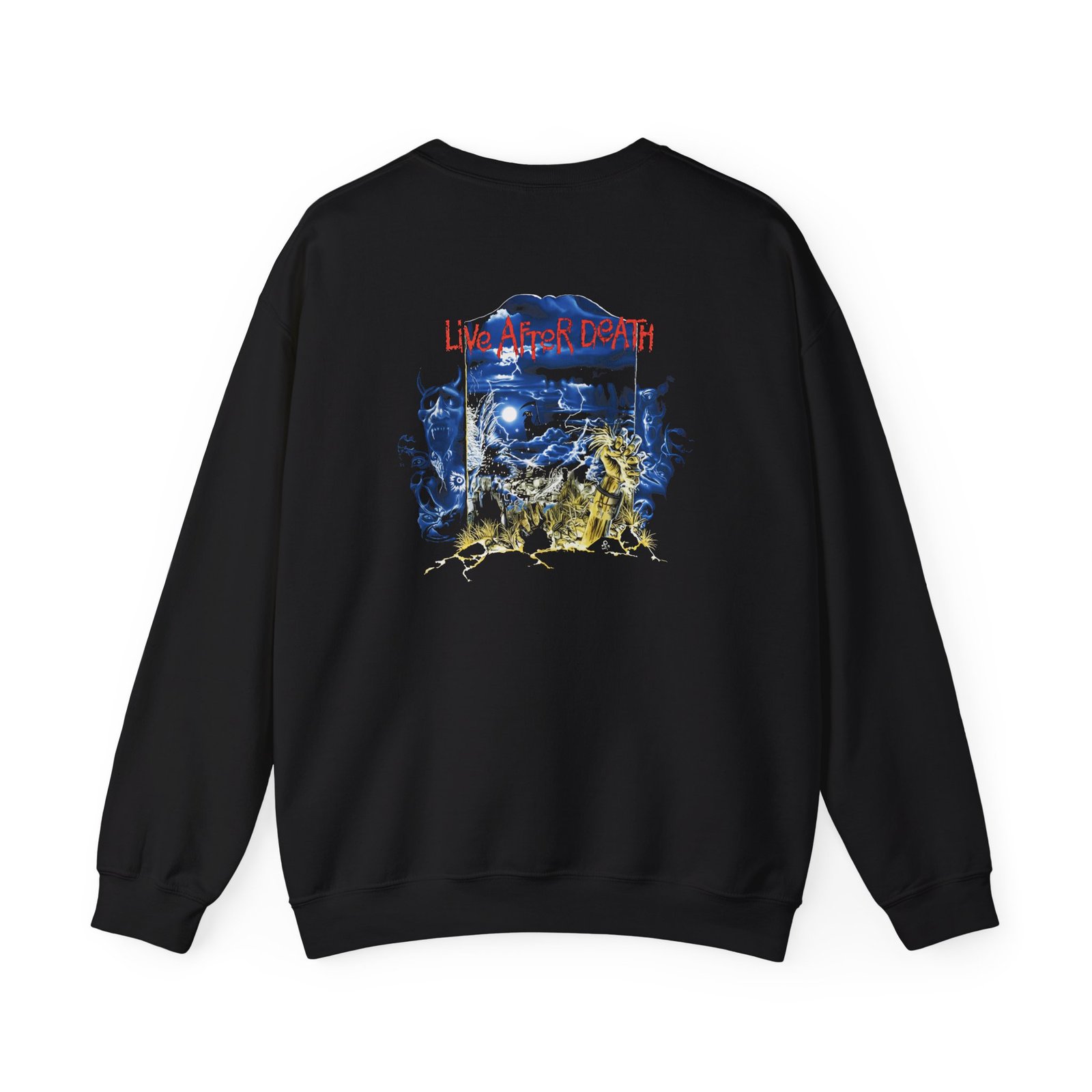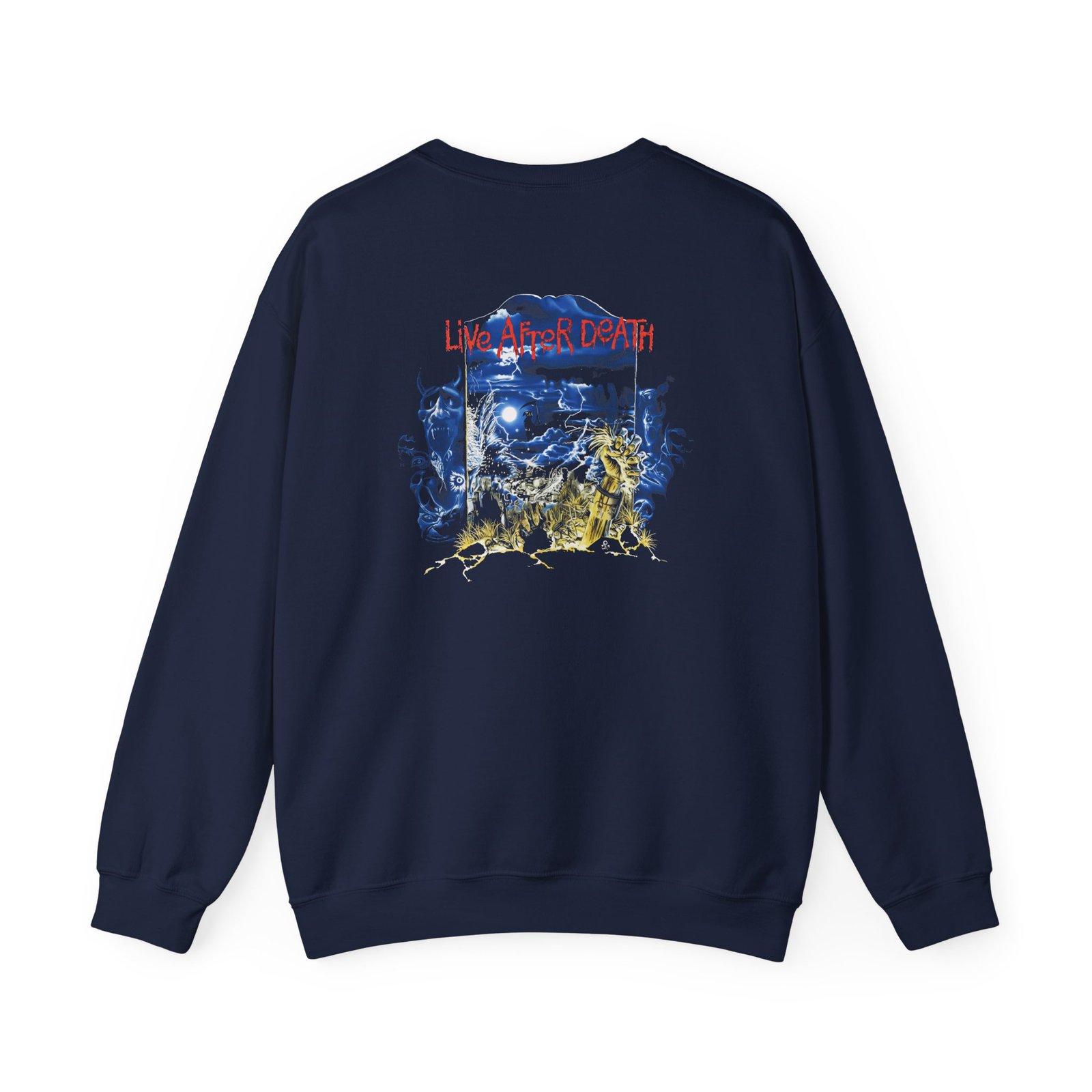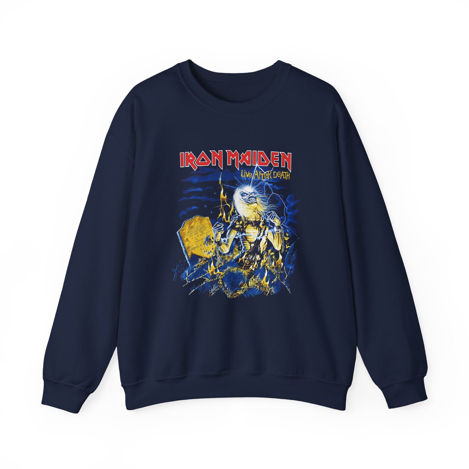 Ideal for any situation, a Iron Maiden Live After Death 40th Anniversary unisex heavy blend crewneck sweatshirt is pure comfort. These garments are made from polyester and cotton. This combination helps designs come out looking fresh and beautiful. The collar is ribbed knit, so it retains its shape even after washing. There are no itchy side seams on these sweaters.