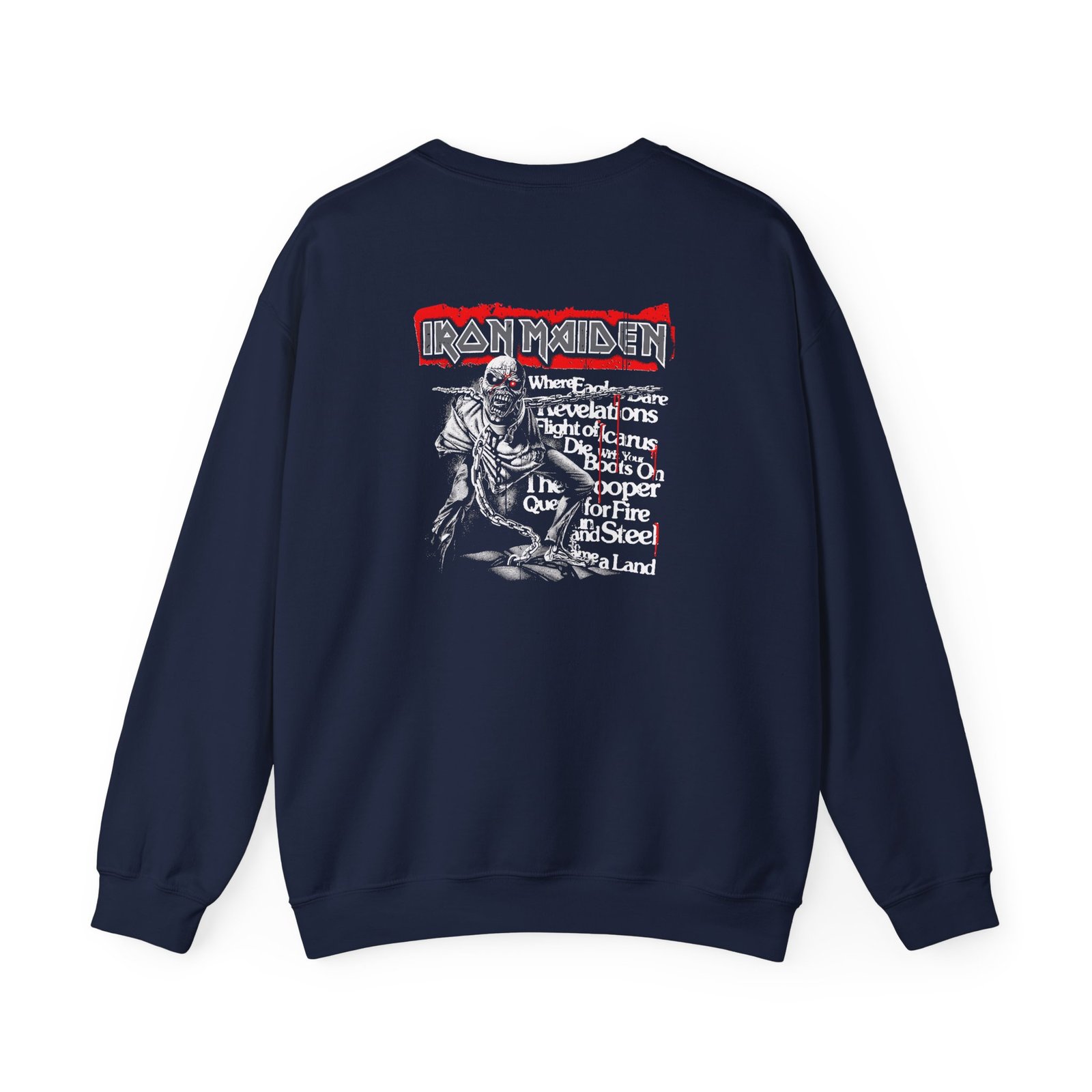 Ideal for any situation, a Iron Maiden Piece of Mind 40th Anniversary unisex heavy blend crewneck sweatshirt is pure comfort. These garments are made from polyester and cotton. This combination helps designs come out looking fresh and beautiful. The collar is ribbed knit, so it retains its shape even after washing. There are no itchy side seams on these sweaters.