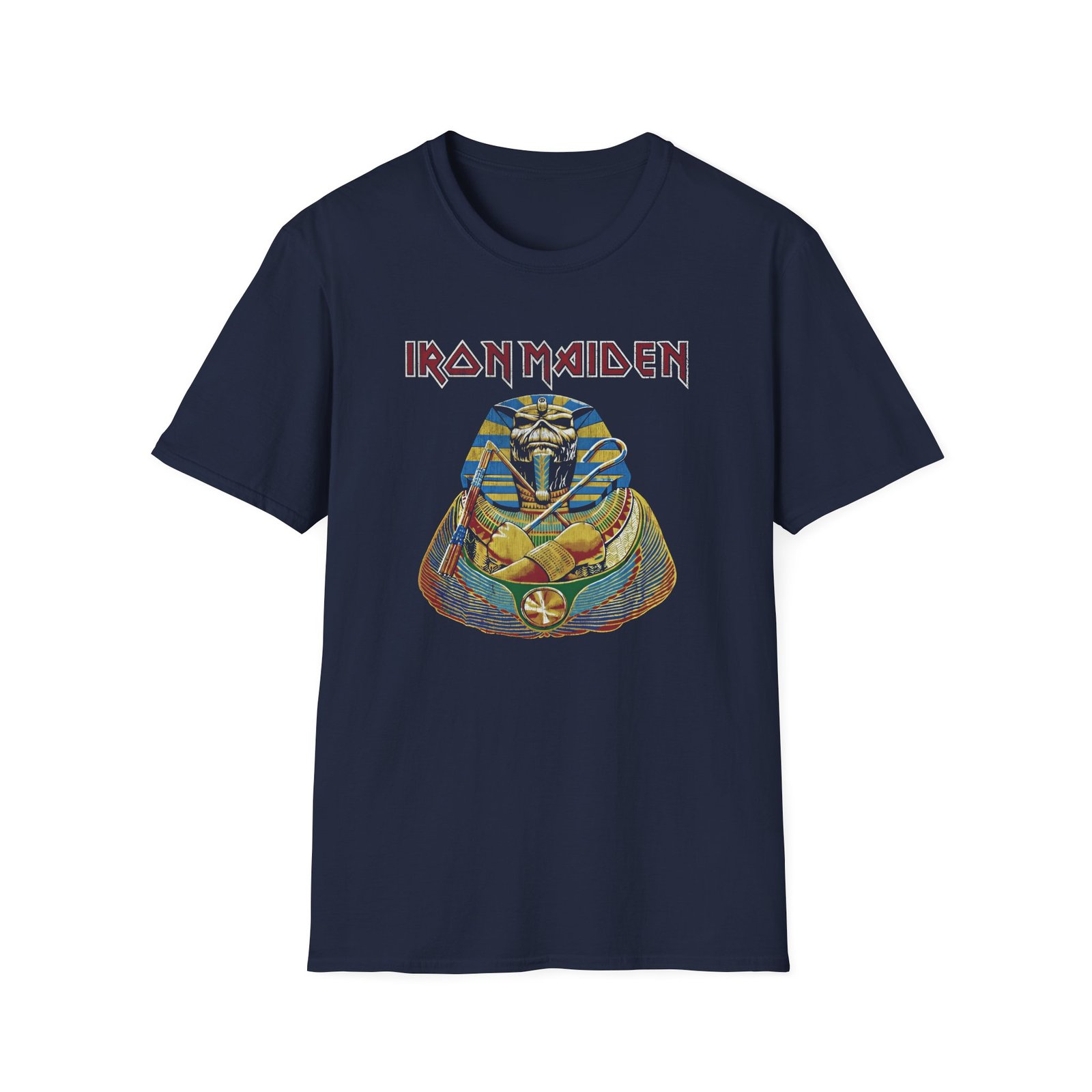 The Iron Maiden Powerslave unisex soft-style t-shirt puts a new spin on casual comfort. Made from very soft materials, this tee is 100% cotton for solid colors. Heather colors and sports grey include polyester. The shoulders have twill tape for improved durability. There are no side seams. The collar is made with ribbed knitting to prevent curling damage.