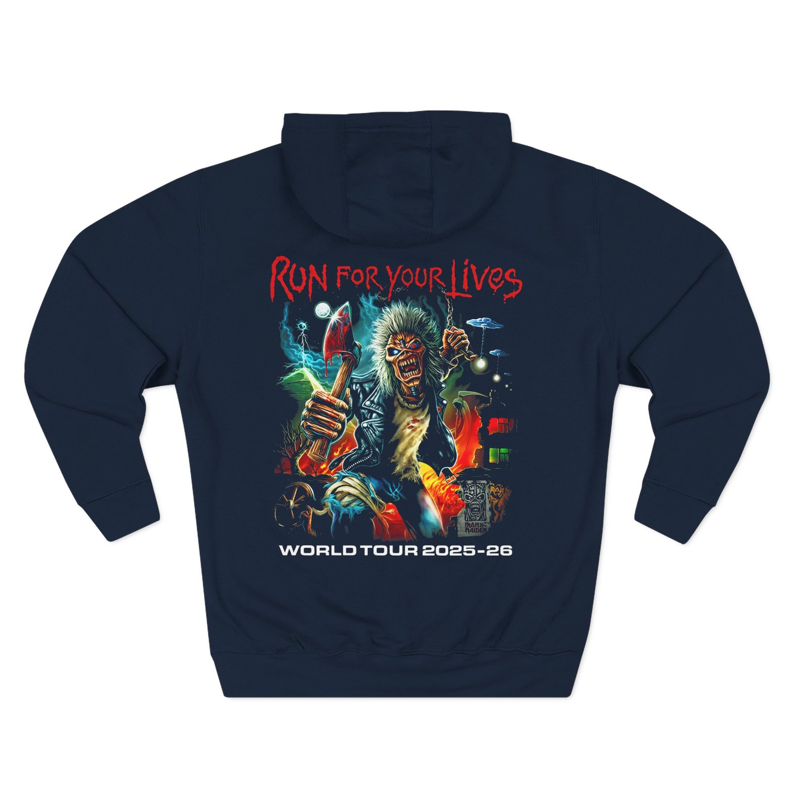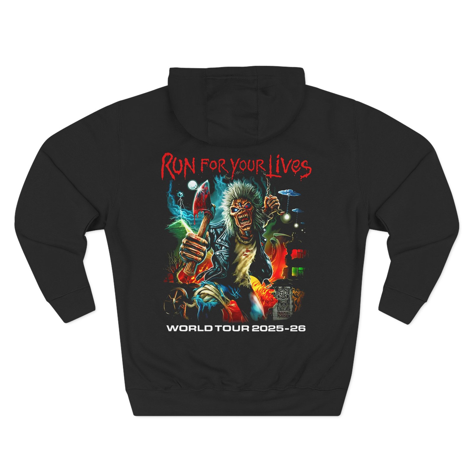 Be the first to review “Iron Maiden Run For Your Lives 2025 Tour Zip Three-Panel Fleece Hoodie”