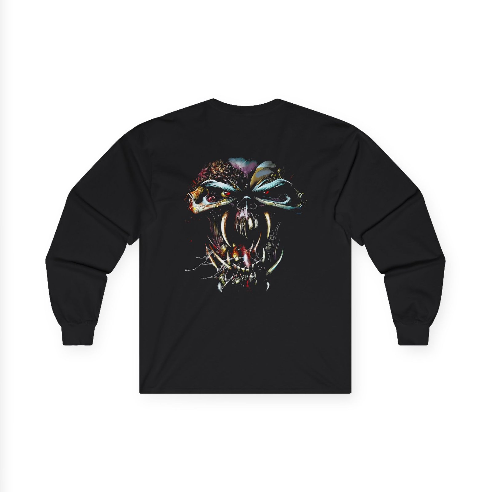 A bit more formal than a standard-issue t-shirt, the Iron Maiden The Final Frontier ultra cotton long sleeve tee is a clear comfort winner. The sleeves also act as a nice frame. There are no side seams. The shoulders are taped for improved durability. This makes for a good fitting around the shoulders and neck. The cotton used for these shirts is environmentally friendly.