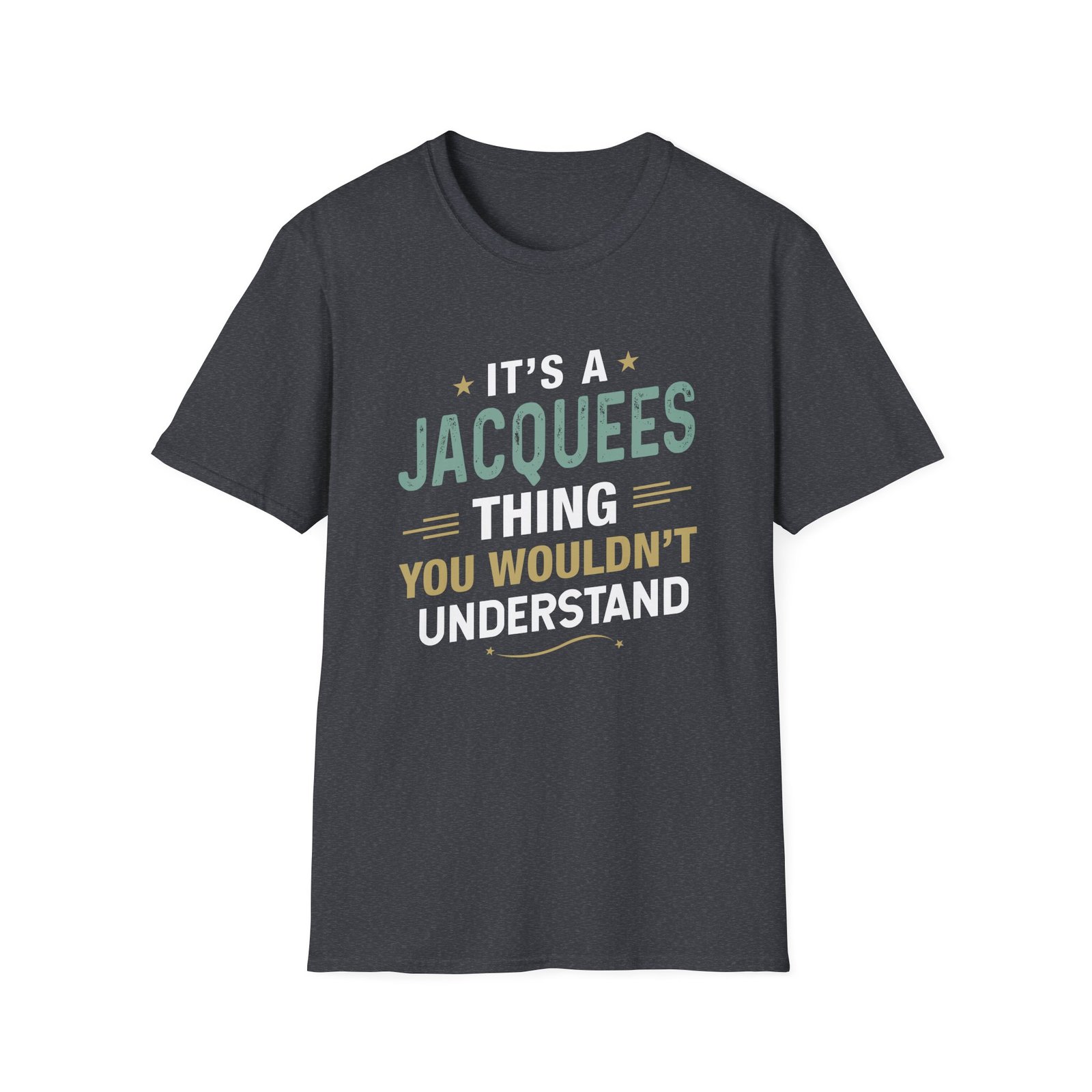The Jacquees unisex soft-style t-shirt puts a new spin on casual comfort. Made from very soft materials, this tee is 100% cotton for solid colors. Heather colors and sports grey include polyester. The shoulders have twill tape for improved durability. There are no side seams. The collar is made with ribbed knitting to prevent curling damage.