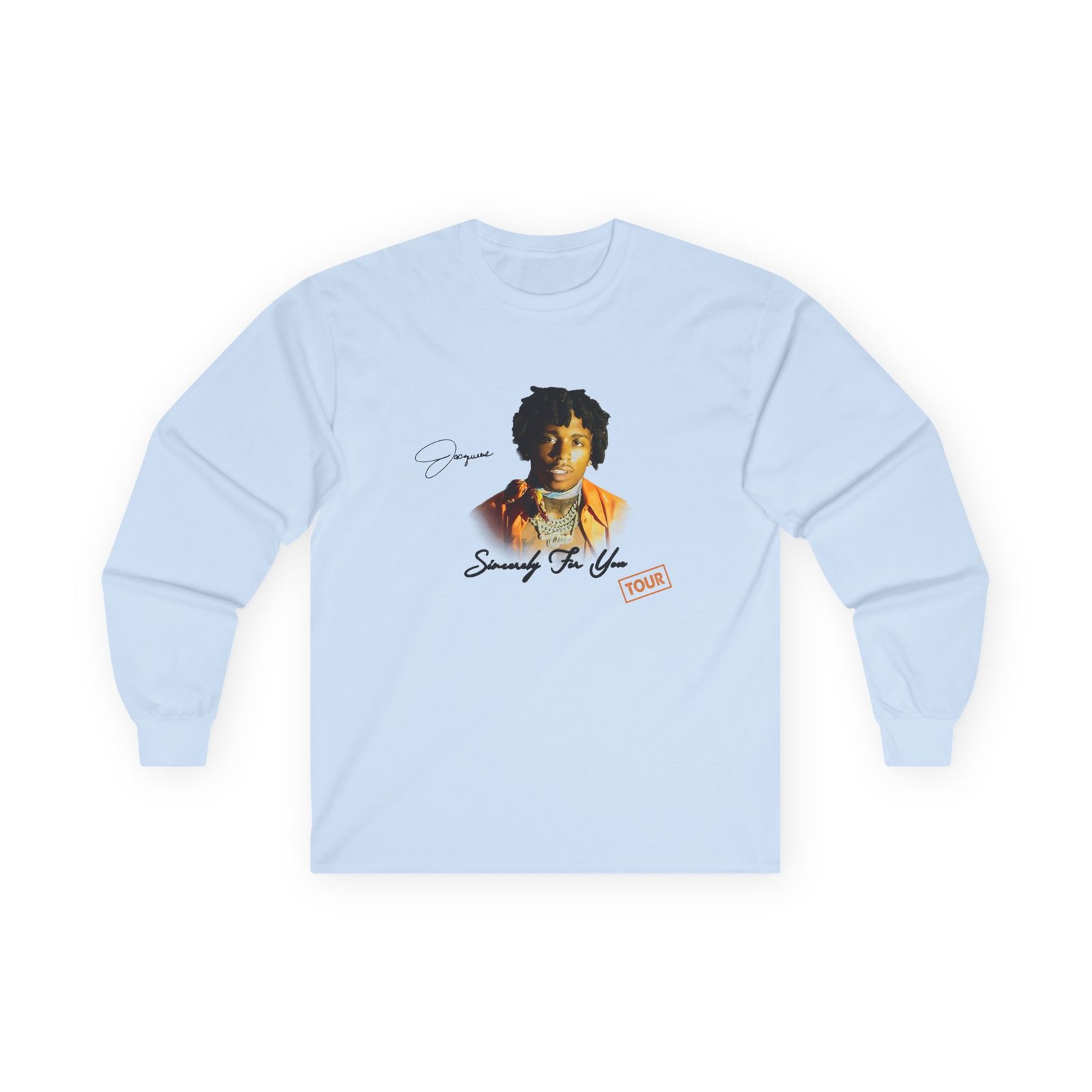 A bit more formal than a standard-issue t-shirt, the Jacquees ultra cotton long sleeve tee is a clear comfort winner. The sleeves also act as a nice frame. There are no side seams. The shoulders are taped for improved durability. This makes for a good fitting around the shoulders and neck. The cotton used for these shirts is environmentally friendly.