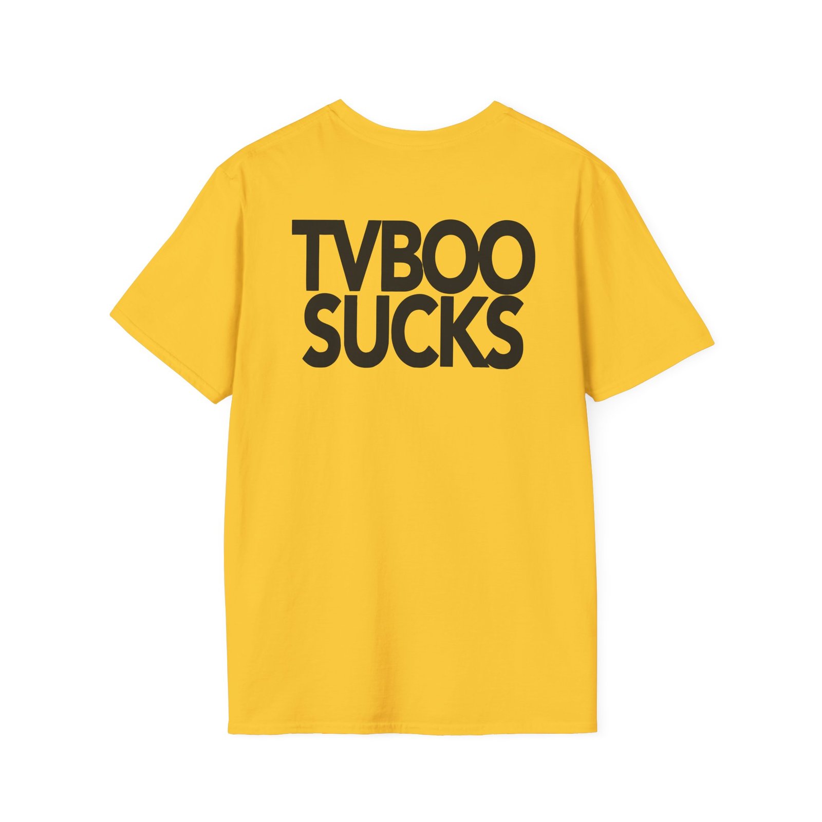 The Jantsen Fucks Tvboo Sucks unisex soft-style t-shirt puts a new spin on casual comfort. Made from very soft materials, this tee is 100% cotton for solid colors. Heather colors and sports grey include polyester. The shoulders have twill tape for improved durability. There are no side seams. The collar is made with ribbed knitting to prevent curling damage.