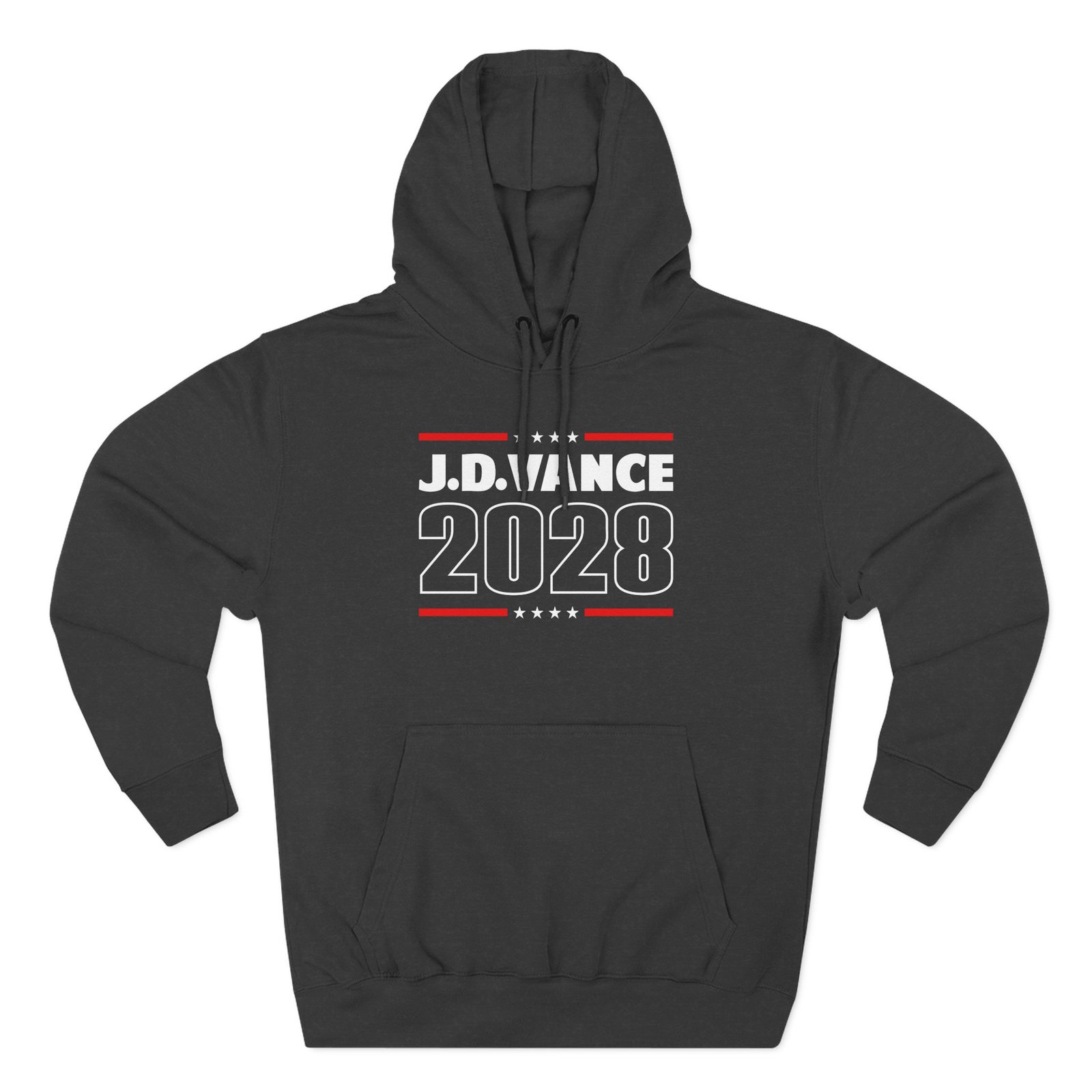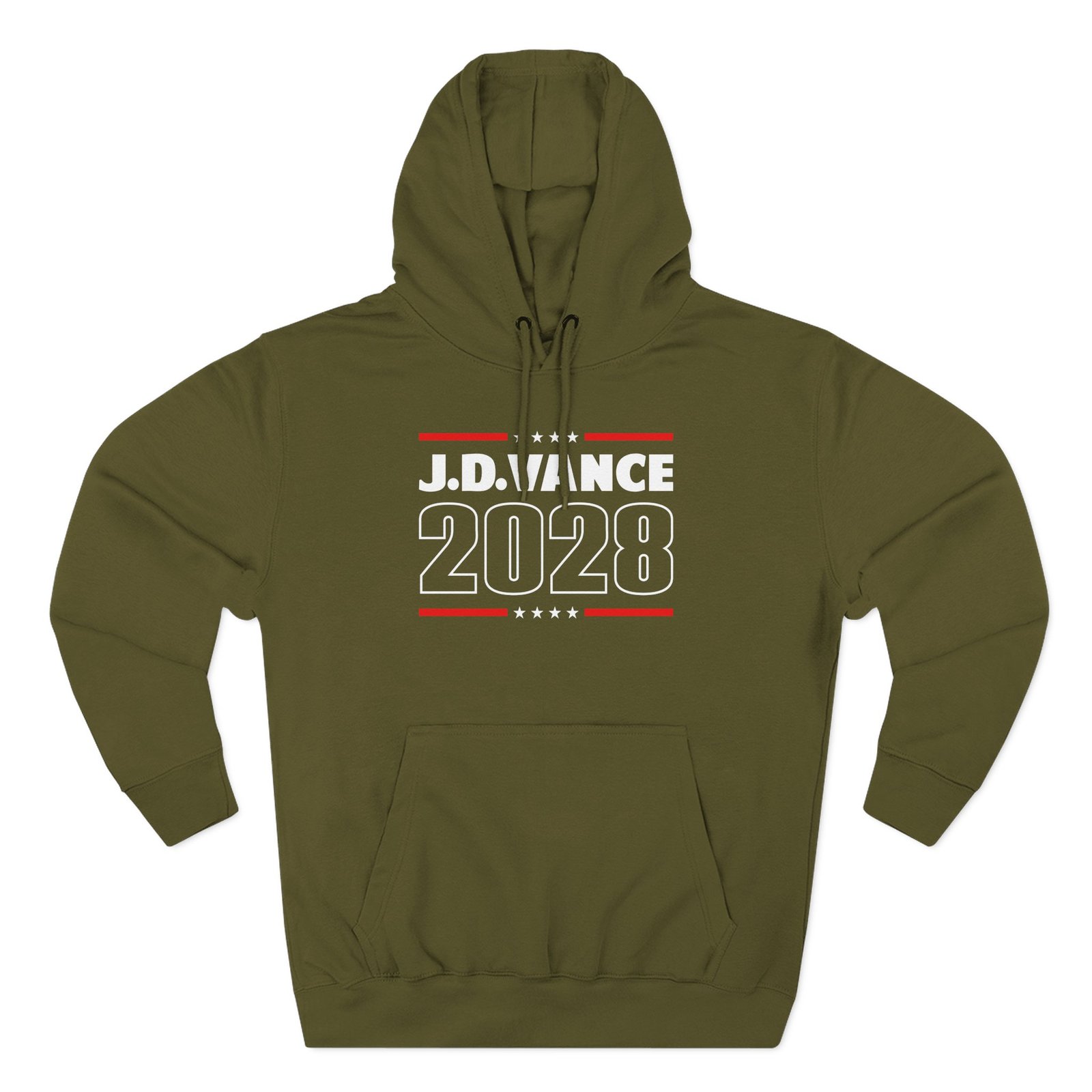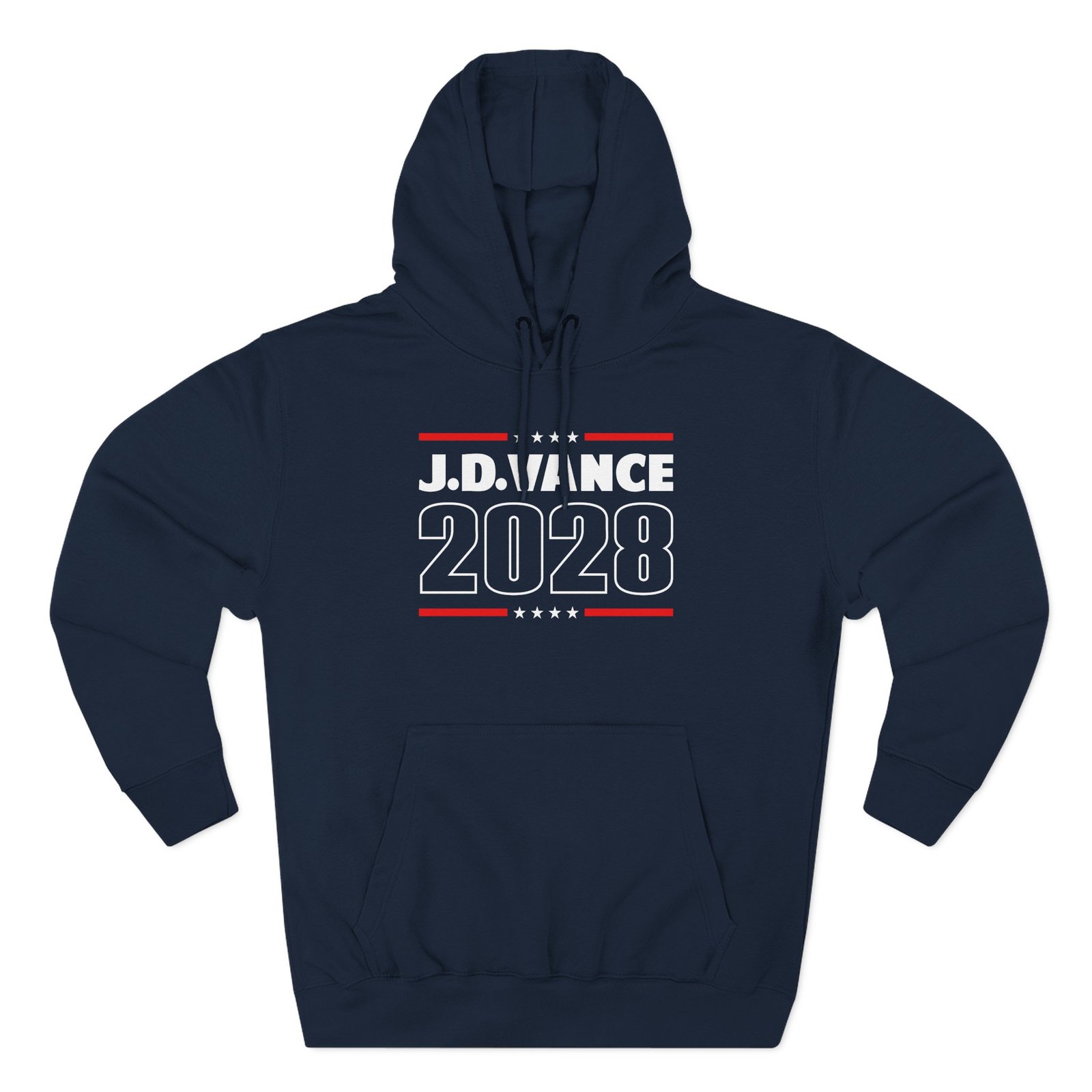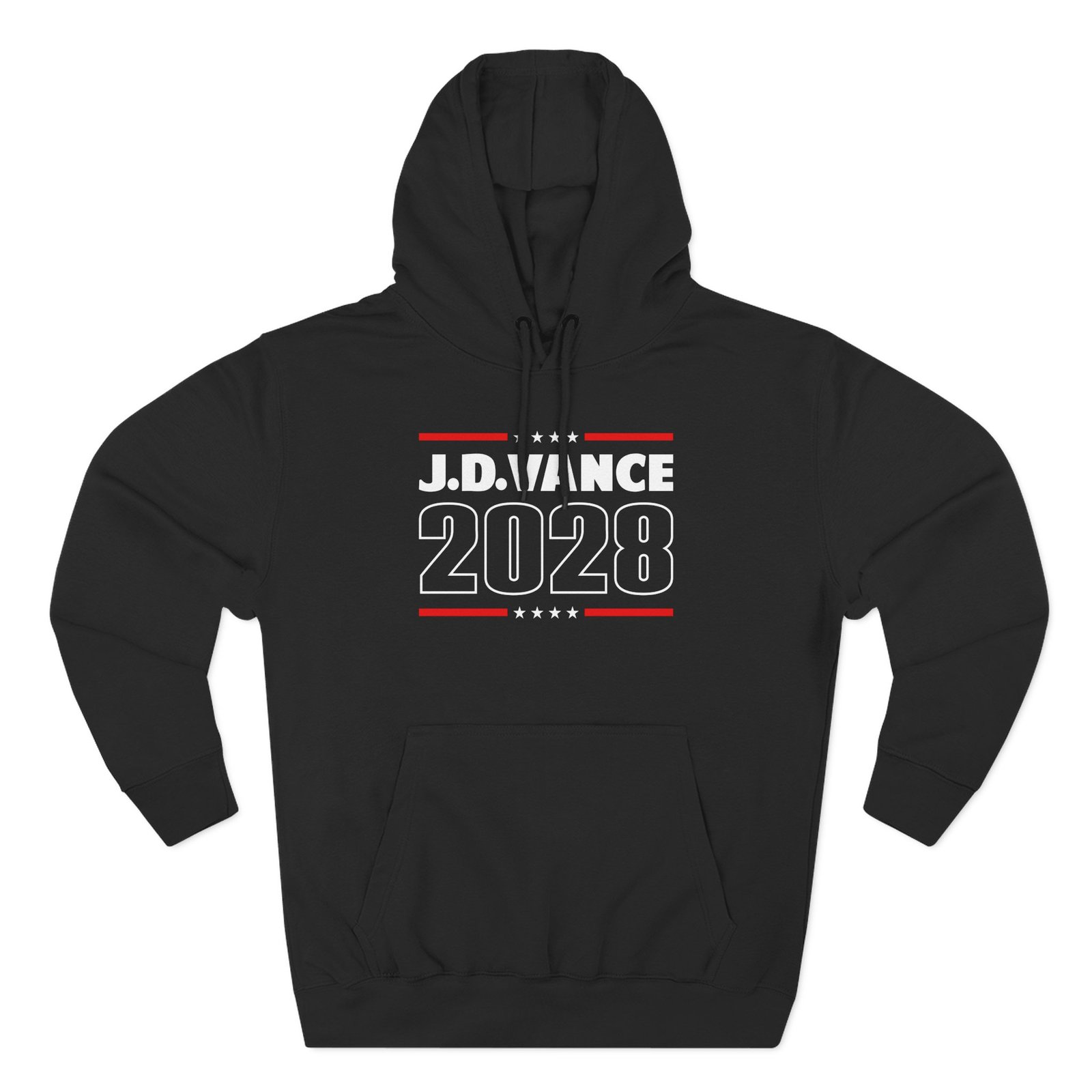 Beat the cold with this Jd Vance 2028 premium pullover hoodie that’s just the right layer of warm and cozy. Made with three-panel fleece lining, this pullover is double stitched for durability and roomy. Pick one in your favorite color to match your style.