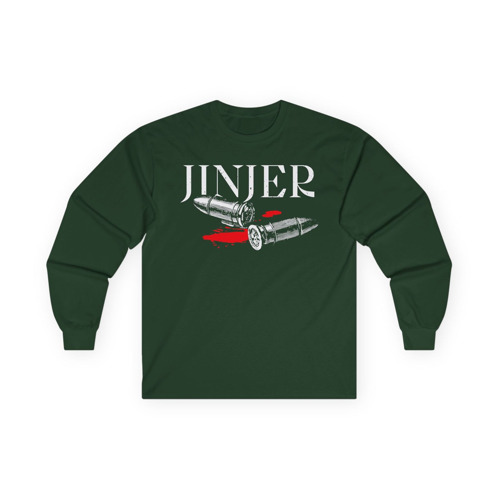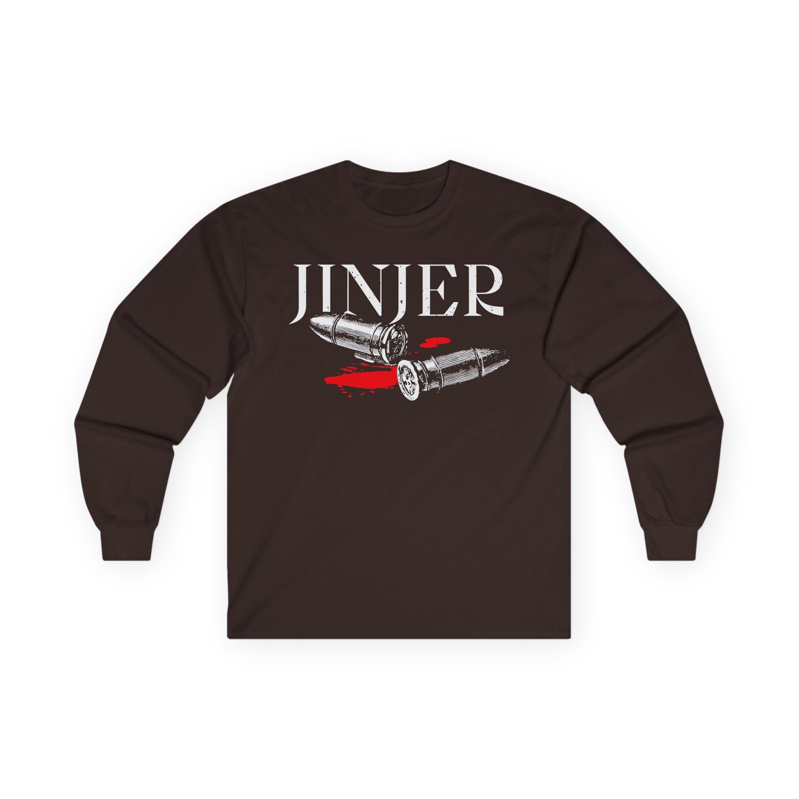 A bit more formal than a standard-issue t-shirt, the Jinjer Duél Two Bullet Theory ultra cotton long sleeve tee is a clear comfort winner. The sleeves also act as a nice frame. There are no side seams. The shoulders are taped for improved durability. This makes for a good fitting around the shoulders and neck. The cotton used for these shirts is environmentally friendly.