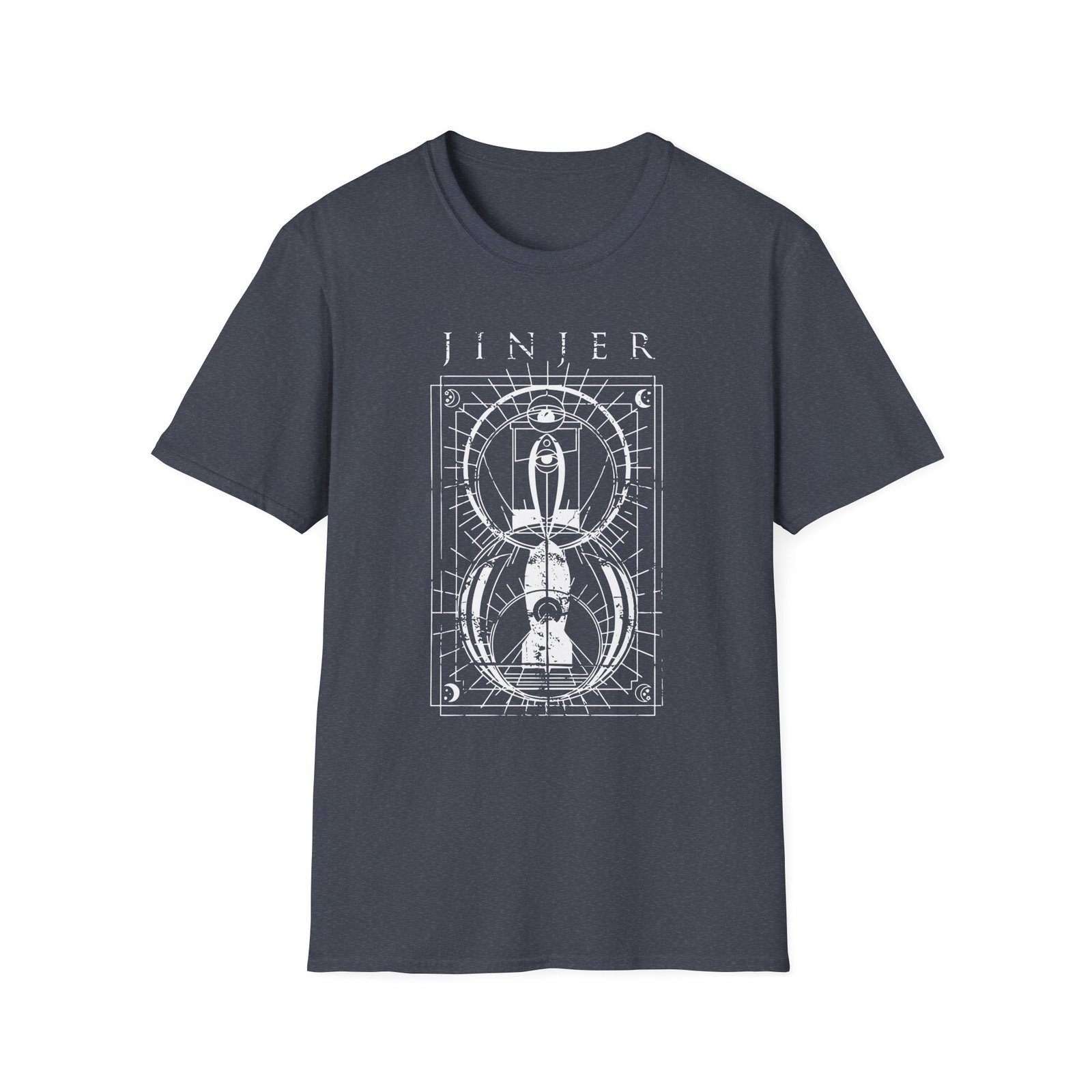 The Jinjer Jeometry Occult unisex soft-style t-shirt puts a new spin on casual comfort. Made from very soft materials, this tee is 100% cotton for solid colors. Heather colors and sports grey include polyester. The shoulders have twill tape for improved durability. There are no side seams. The collar is made with ribbed knitting to prevent curling damage.