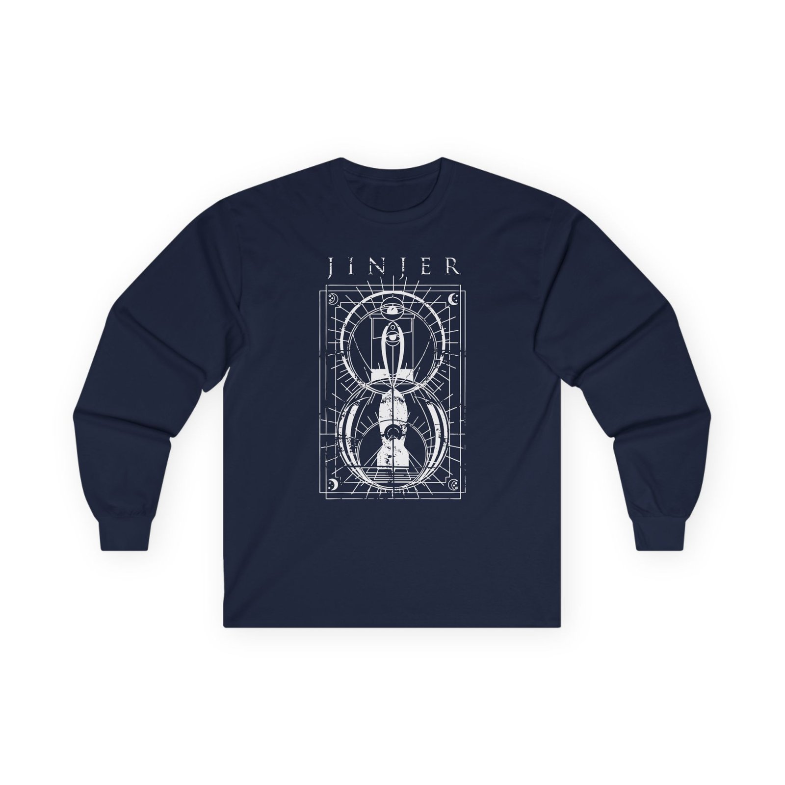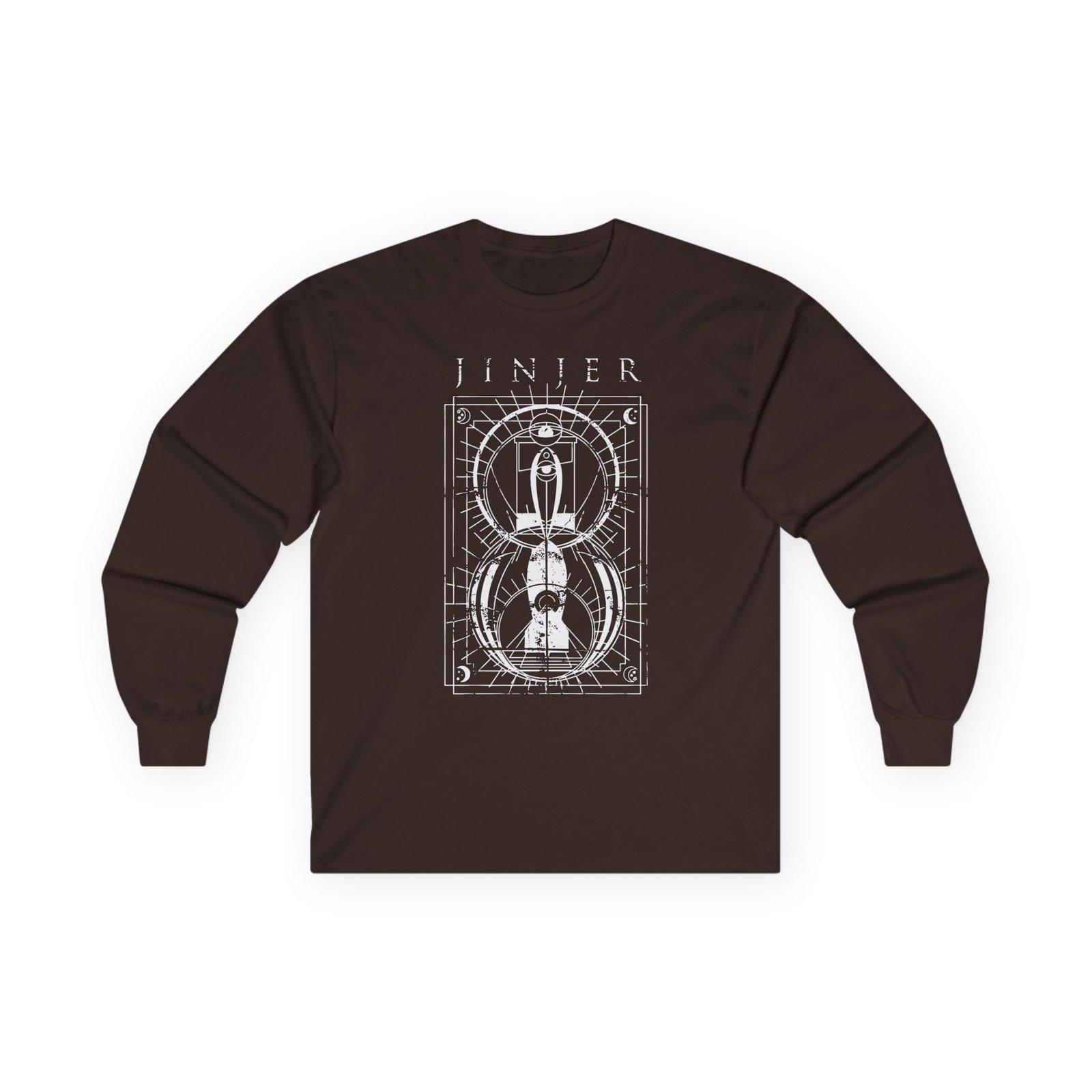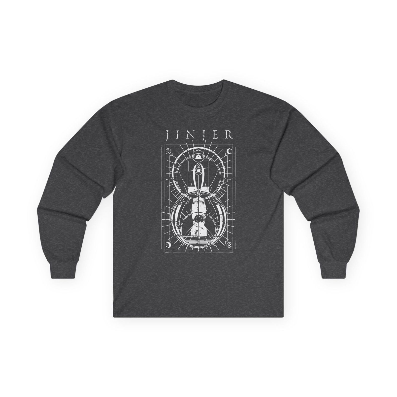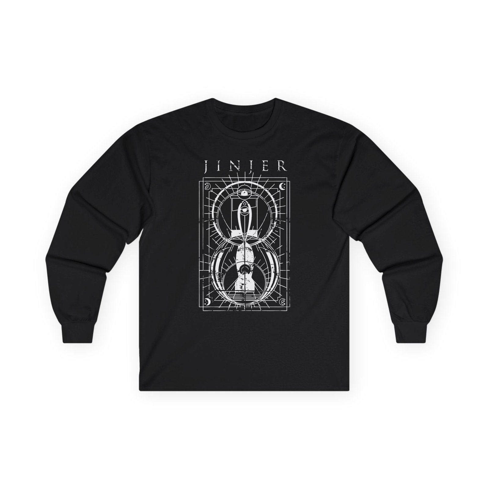 A bit more formal than a standard-issue t-shirt, the Jinjer Jeometry Occult ultra cotton long sleeve tee is a clear comfort winner. The sleeves also act as a nice frame. There are no side seams. The shoulders are taped for improved durability. This makes for a good fitting around the shoulders and neck. The cotton used for these shirts is environmentally friendly.