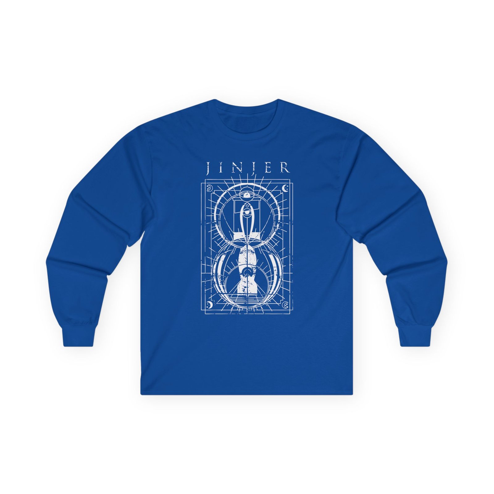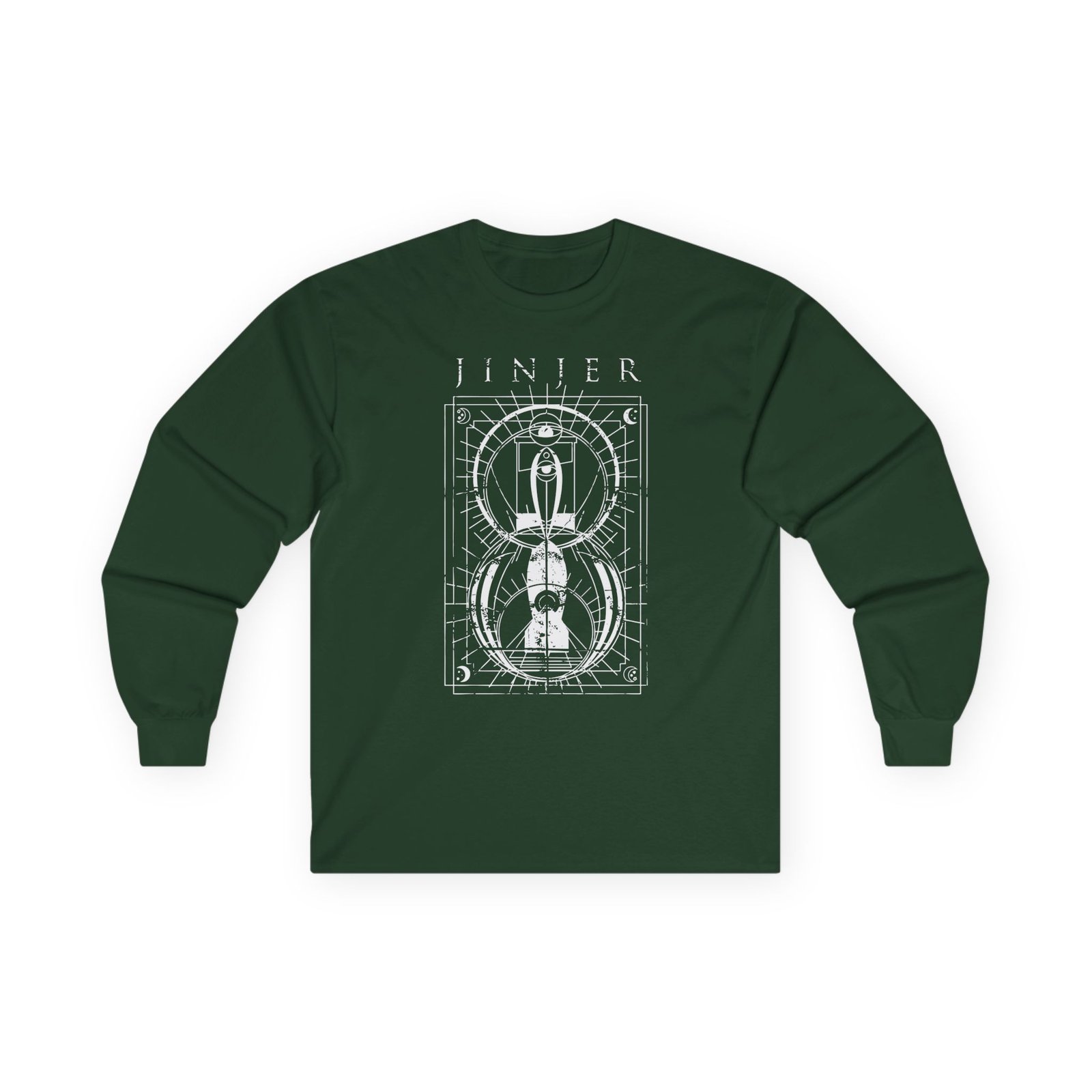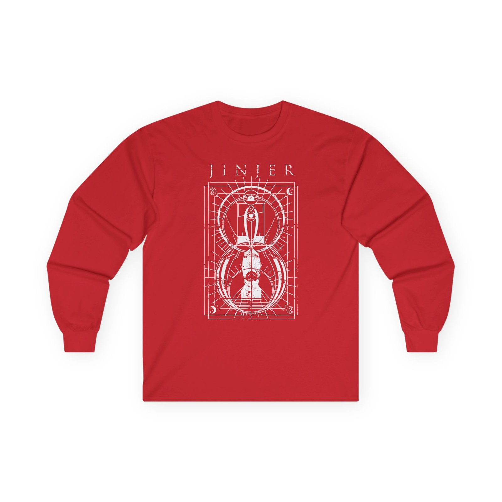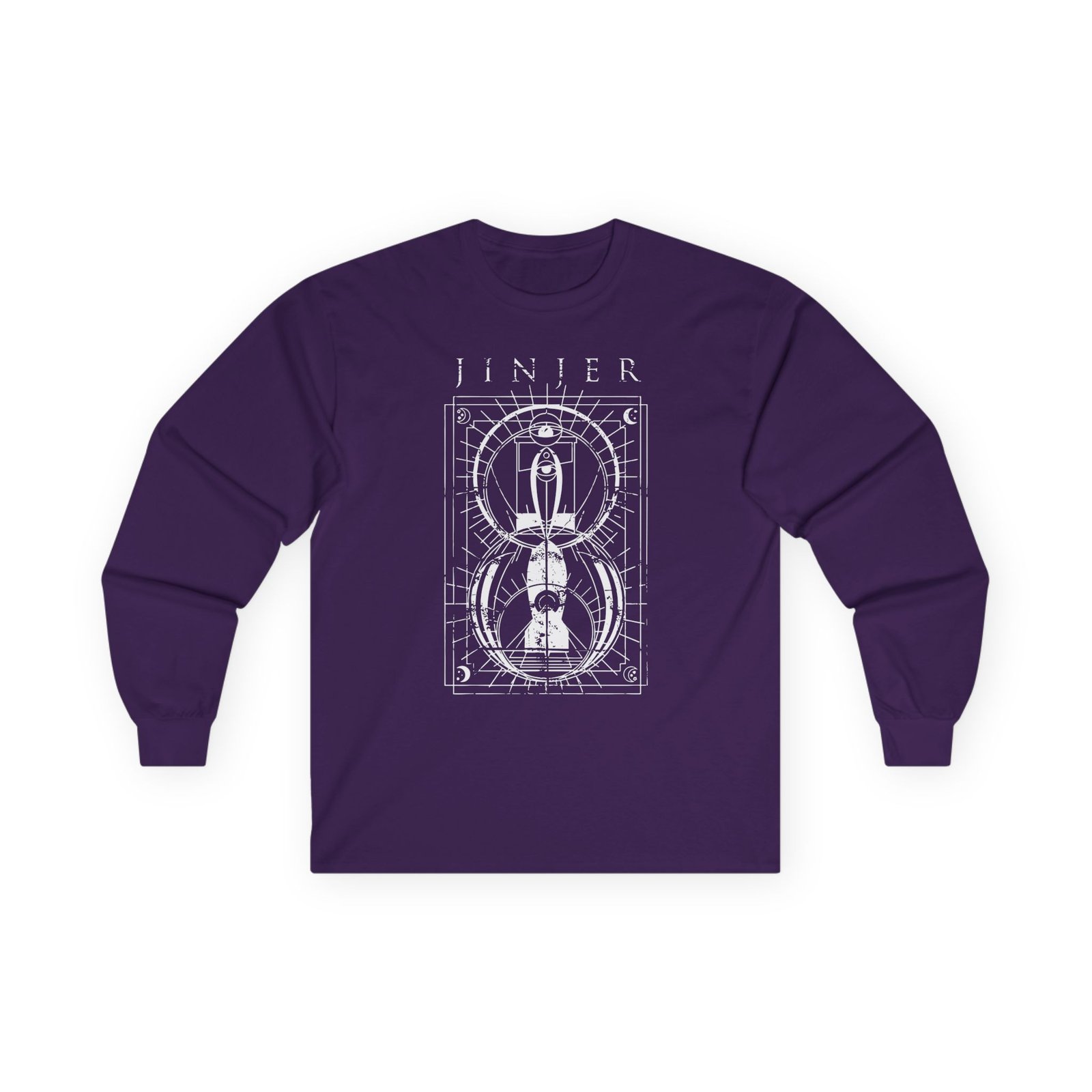 A bit more formal than a standard-issue t-shirt, the Jinjer Jeometry Occult ultra cotton long sleeve tee is a clear comfort winner. The sleeves also act as a nice frame. There are no side seams. The shoulders are taped for improved durability. This makes for a good fitting around the shoulders and neck. The cotton used for these shirts is environmentally friendly.