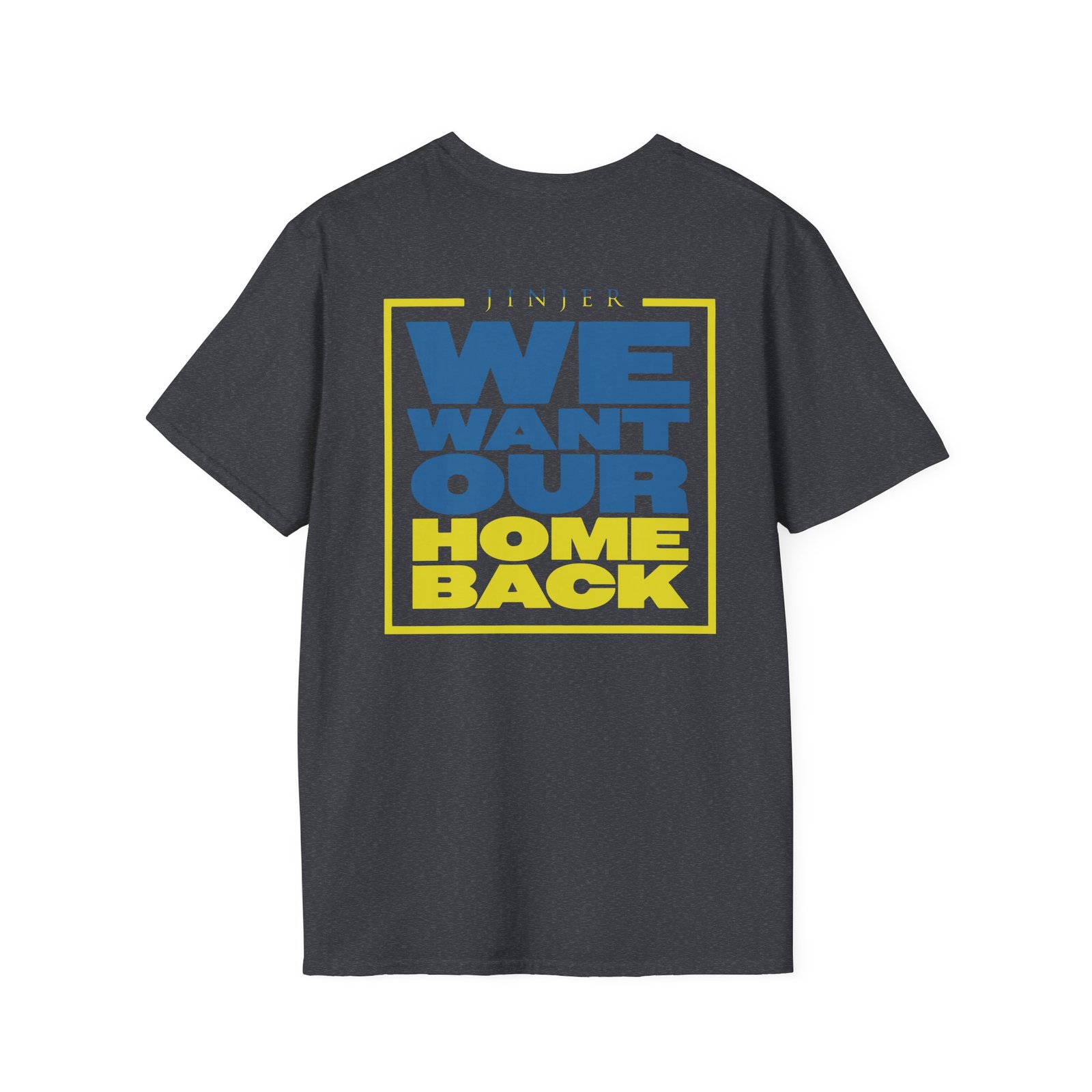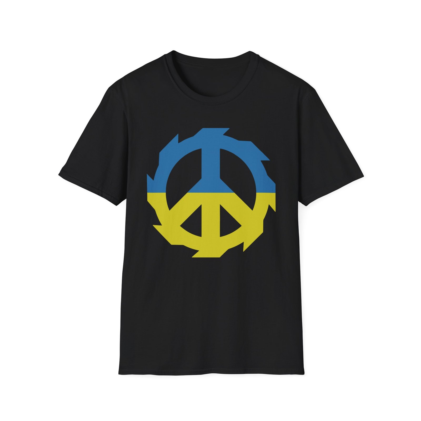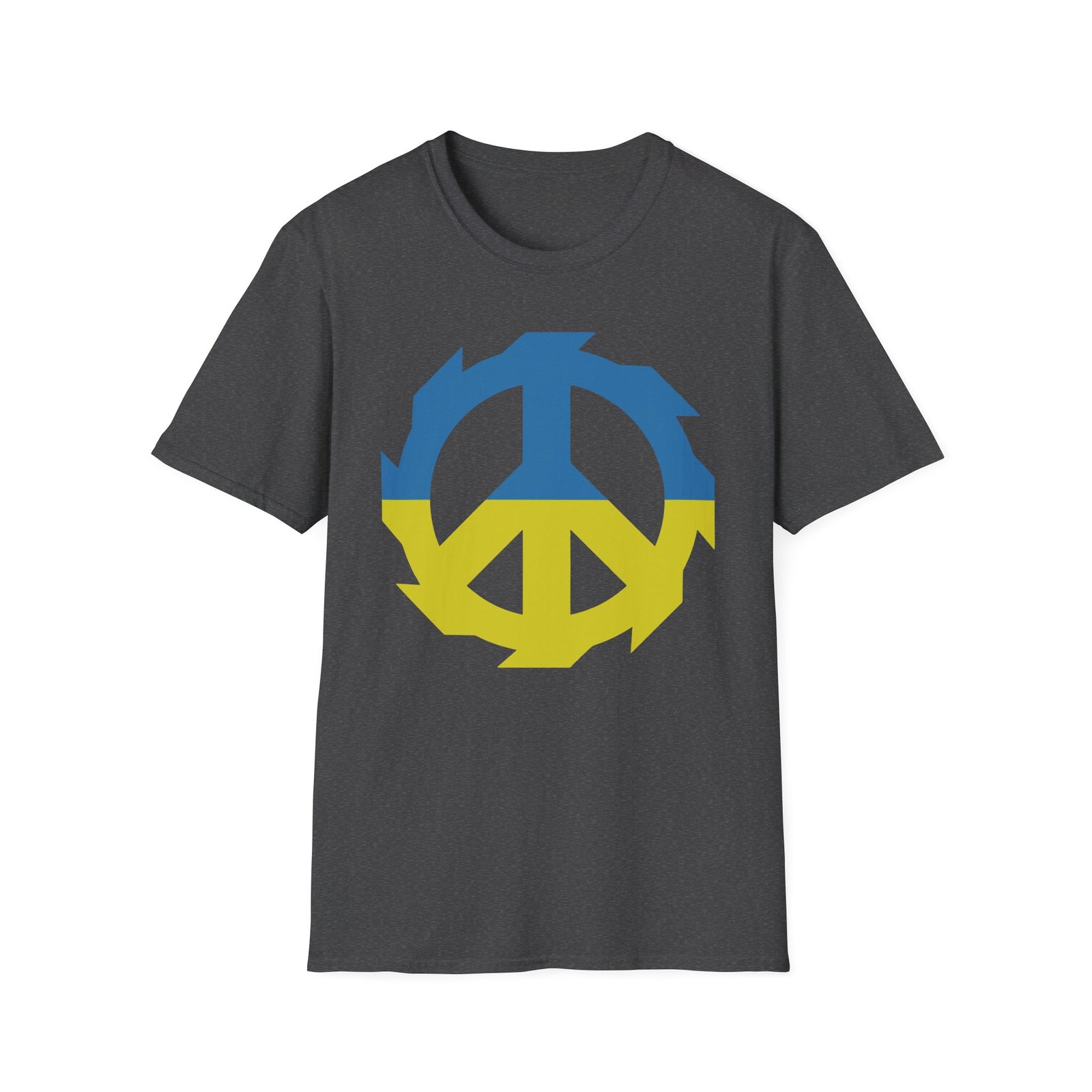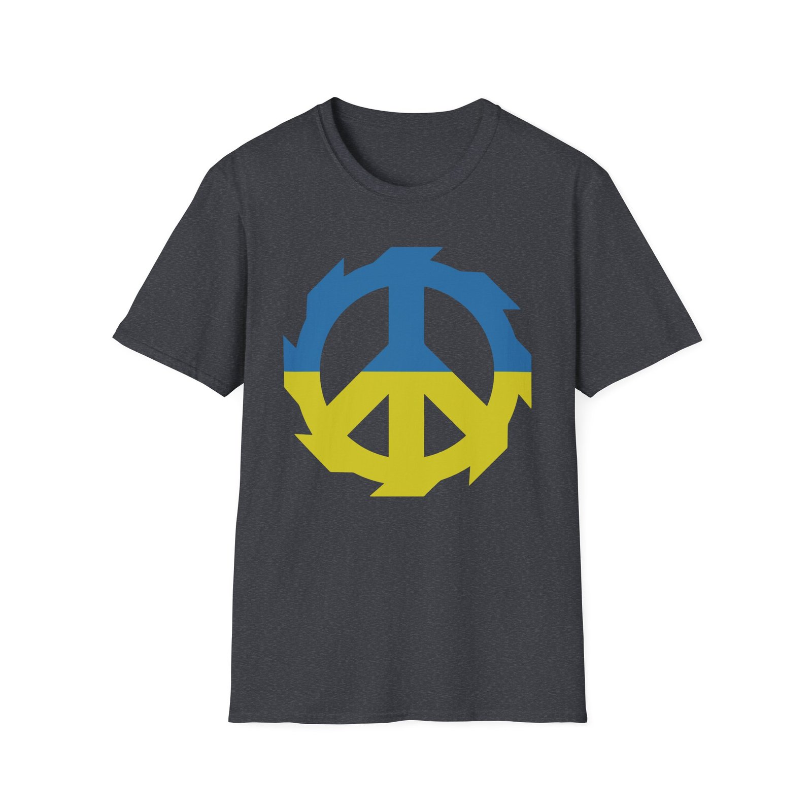 The Jinjer Peace to Ukraine unisex soft-style t-shirt puts a new spin on casual comfort. Made from very soft materials, this tee is 100% cotton for solid colors. Heather colors and sports grey include polyester. The shoulders have twill tape for improved durability. There are no side seams. The collar is made with ribbed knitting to prevent curling damage.