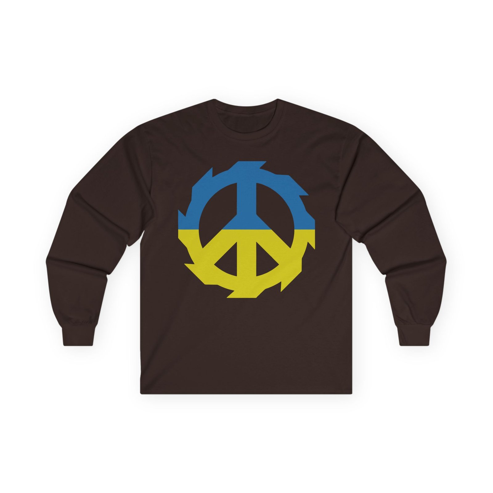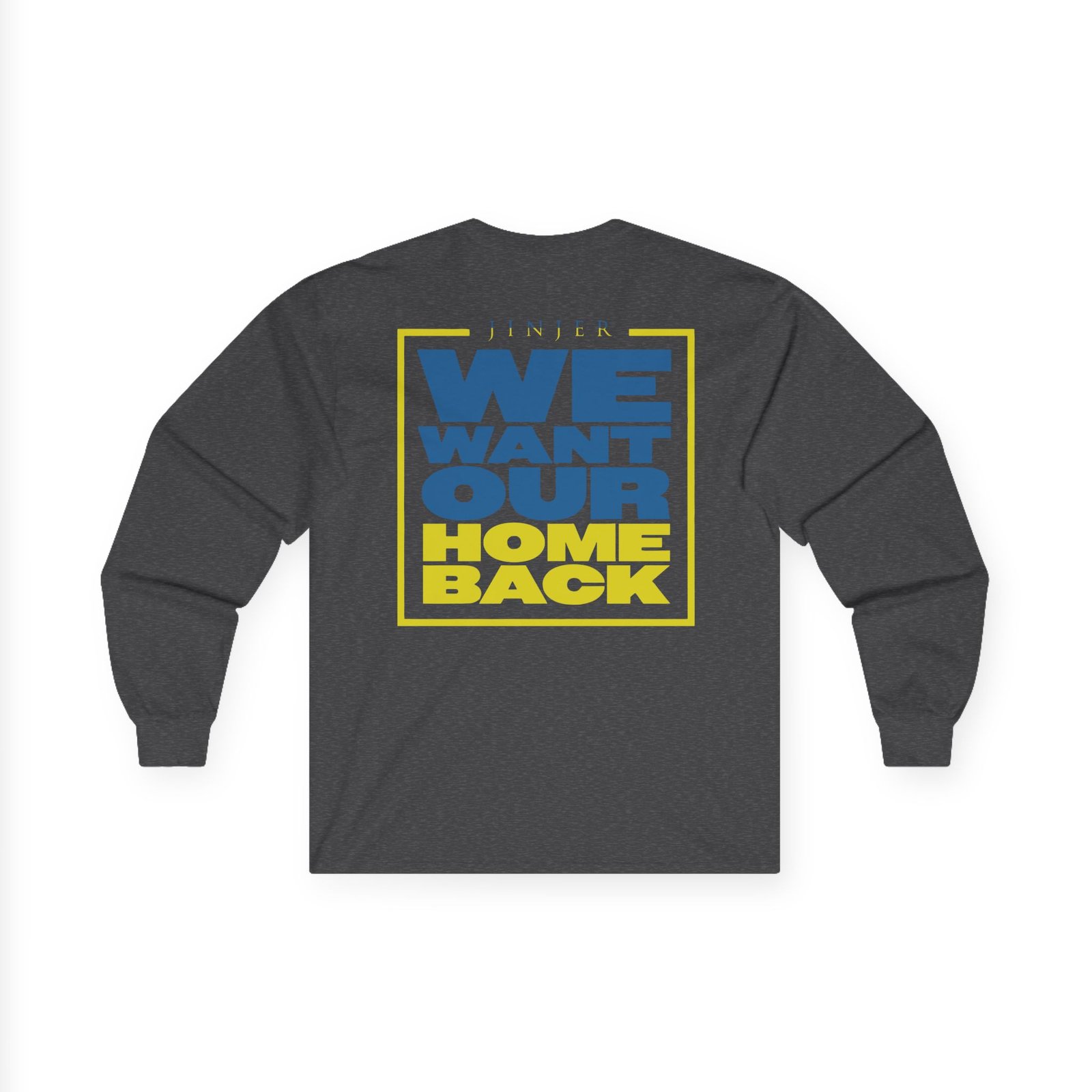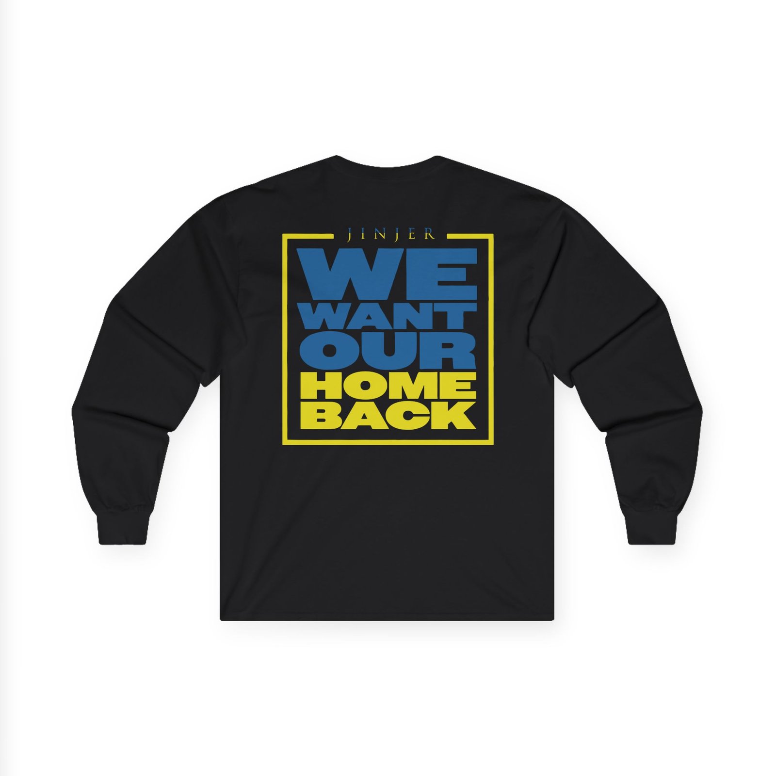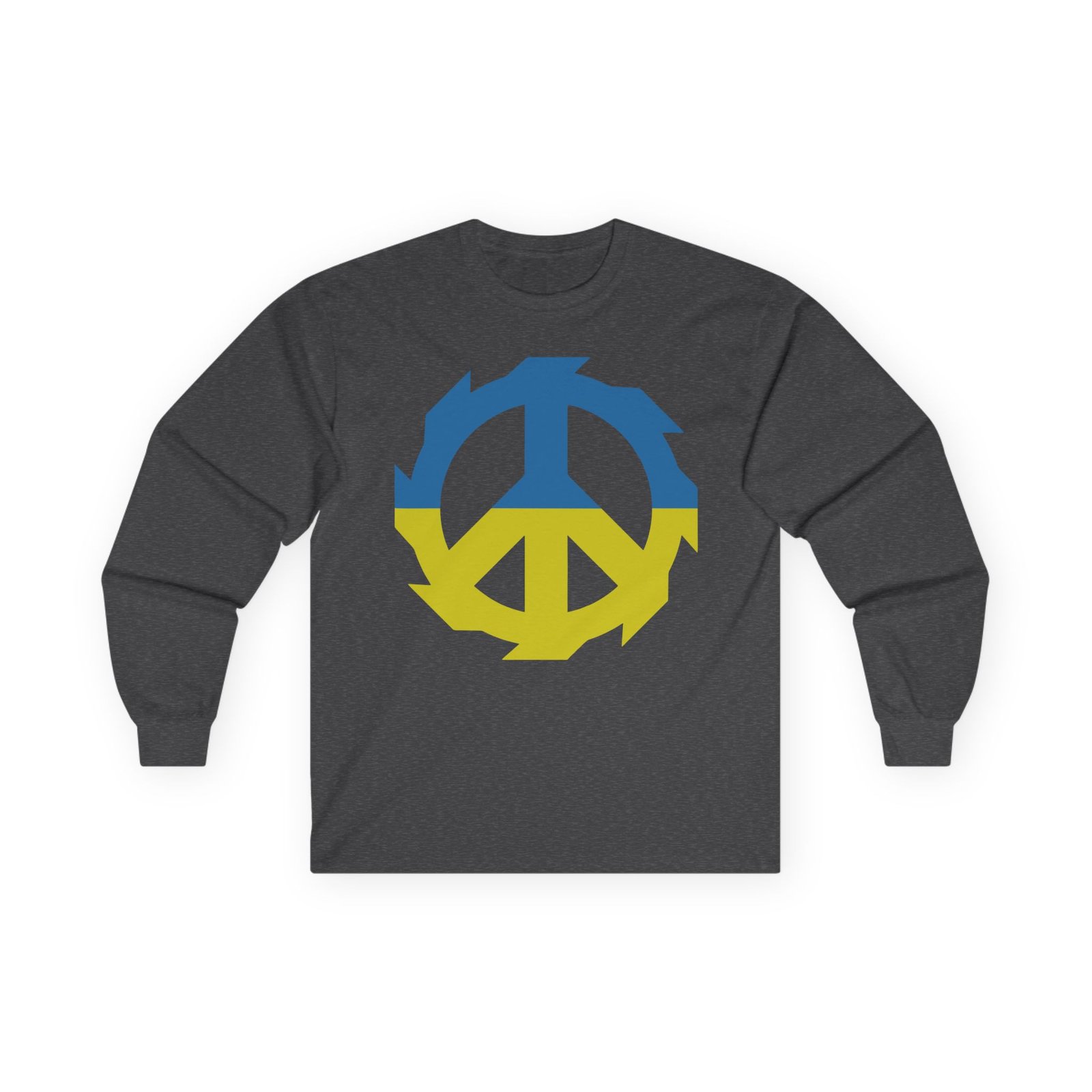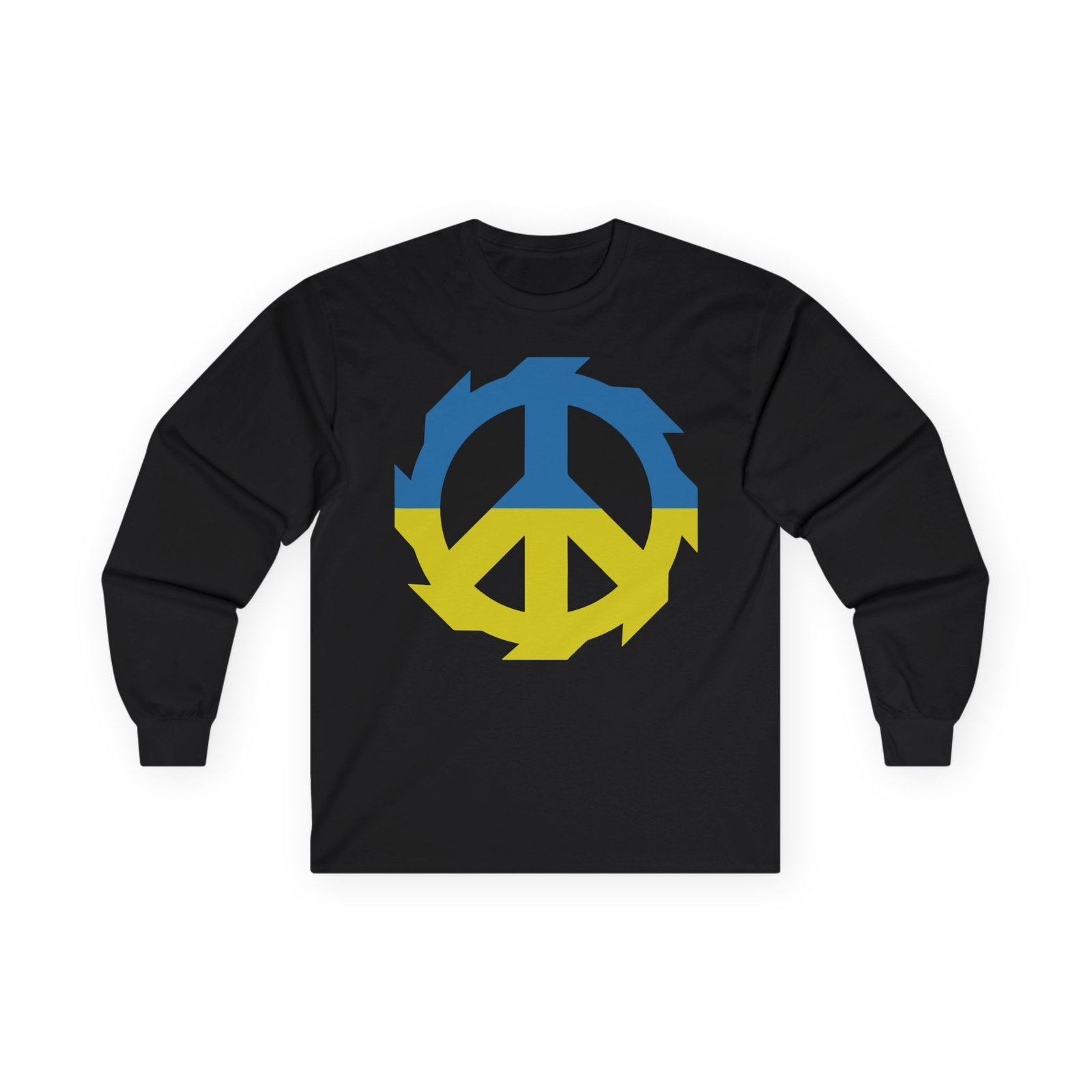 A bit more formal than a standard-issue t-shirt, the Jinjer Peace to Ukraine ultra cotton long sleeve tee is a clear comfort winner. The sleeves also act as a nice frame. There are no side seams. The shoulders are taped for improved durability. This makes for a good fitting around the shoulders and neck. The cotton used for these shirts is environmentally friendly.