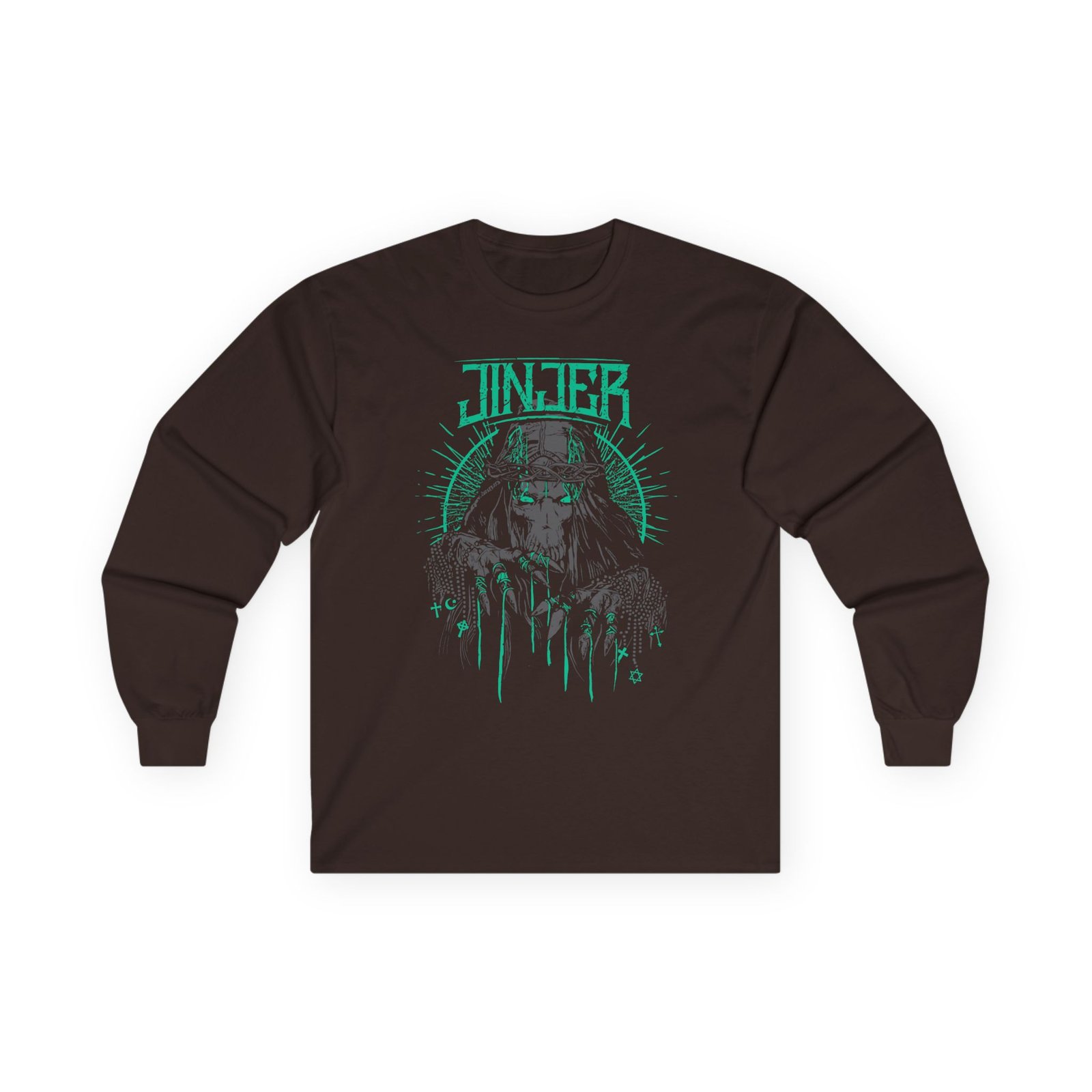 A bit more formal than a standard-issue t-shirt, the Jinjer True Believerultra cotton long sleeve tee is a clear comfort winner. The sleeves also act as a nice frame. There are no side seams. The shoulders are taped for improved durability. This makes for a good fitting around the shoulders and neck. The cotton used for these shirts is environmentally friendly.