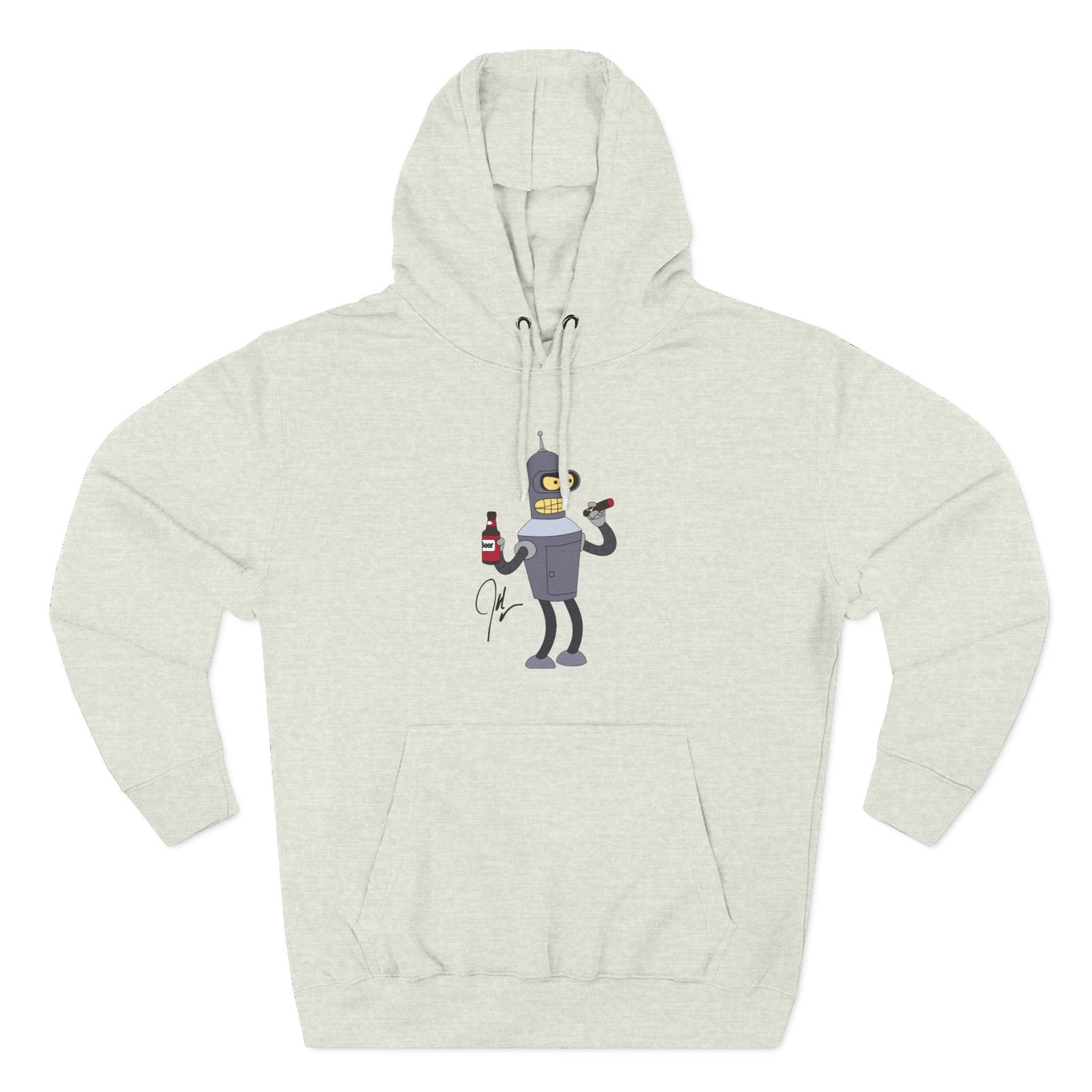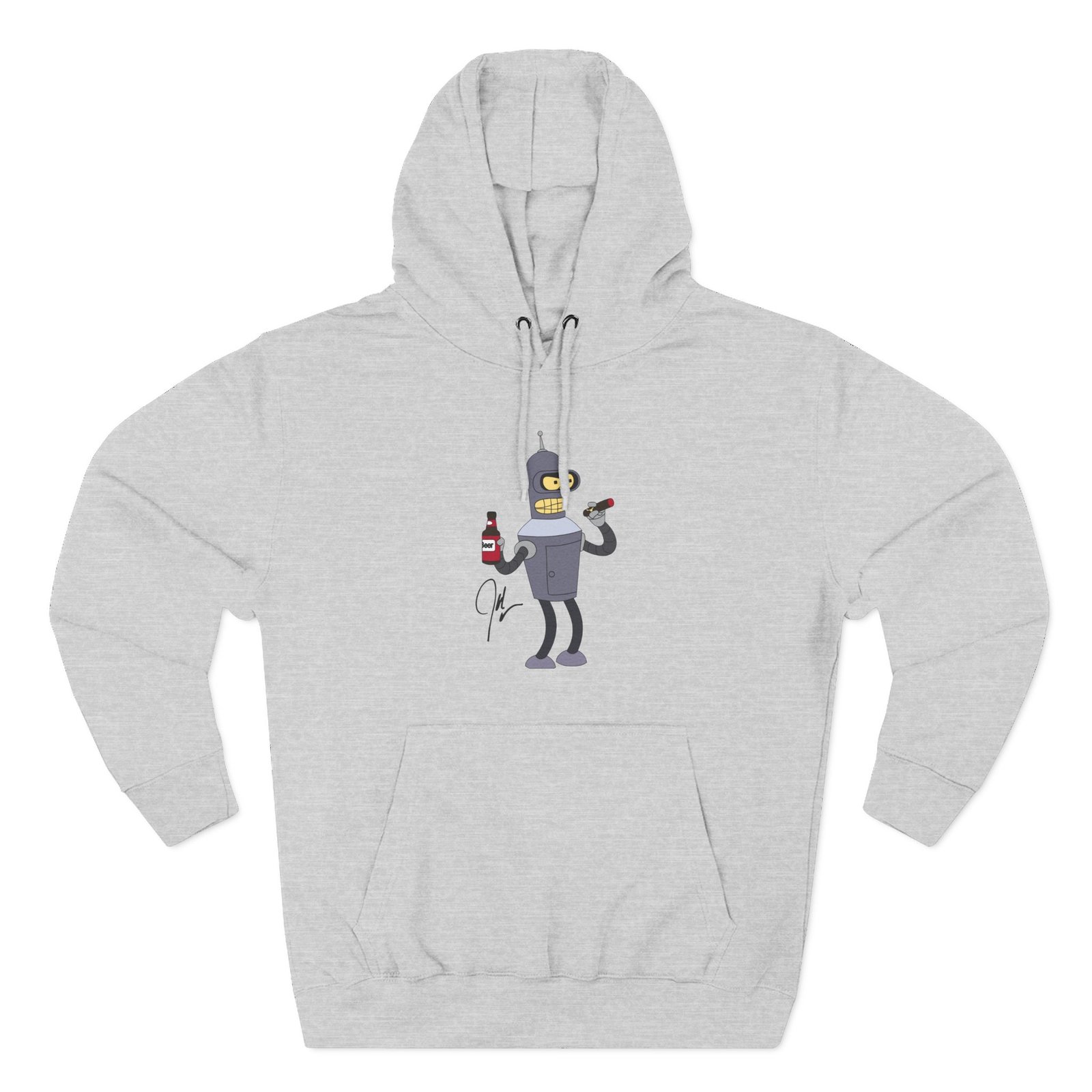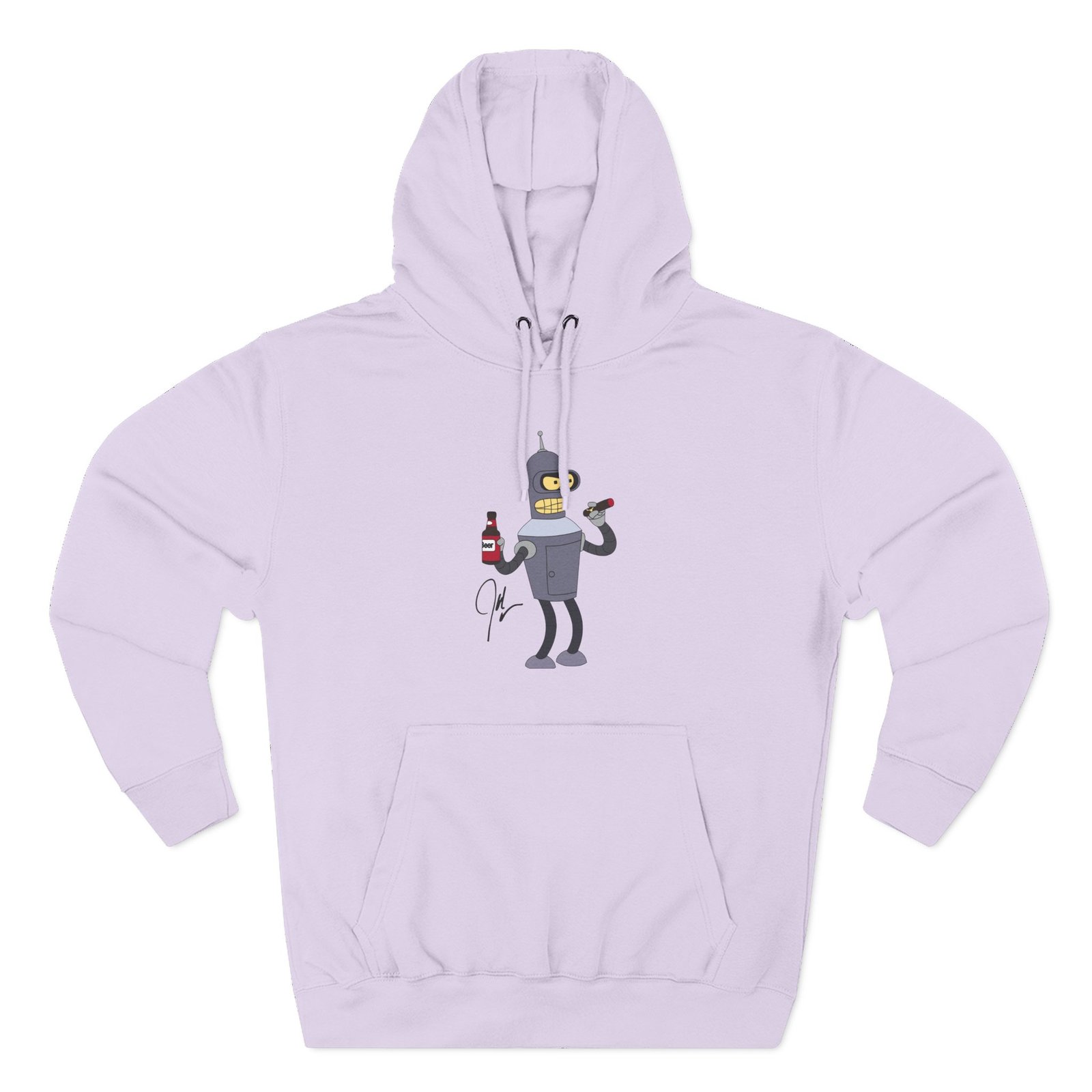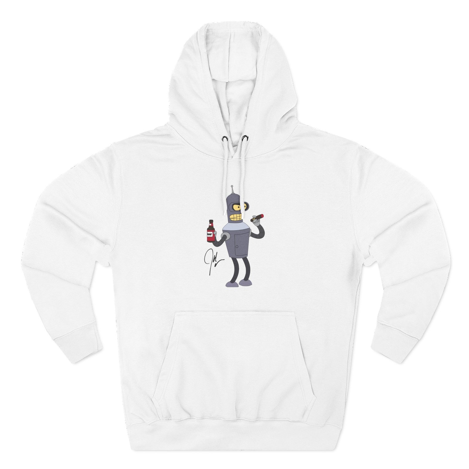 Beat the cold with this premium John Dimaggio Futurama Bender pullover hoodie that’s just the right layer of warm and cozy. Made with three-panel fleece lining, this pullover is double stitched for durability and roomy. Pick one in your favorite color to match your style.
