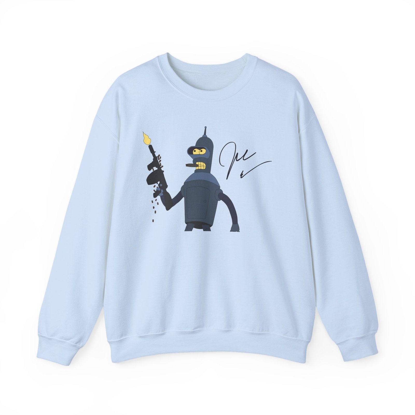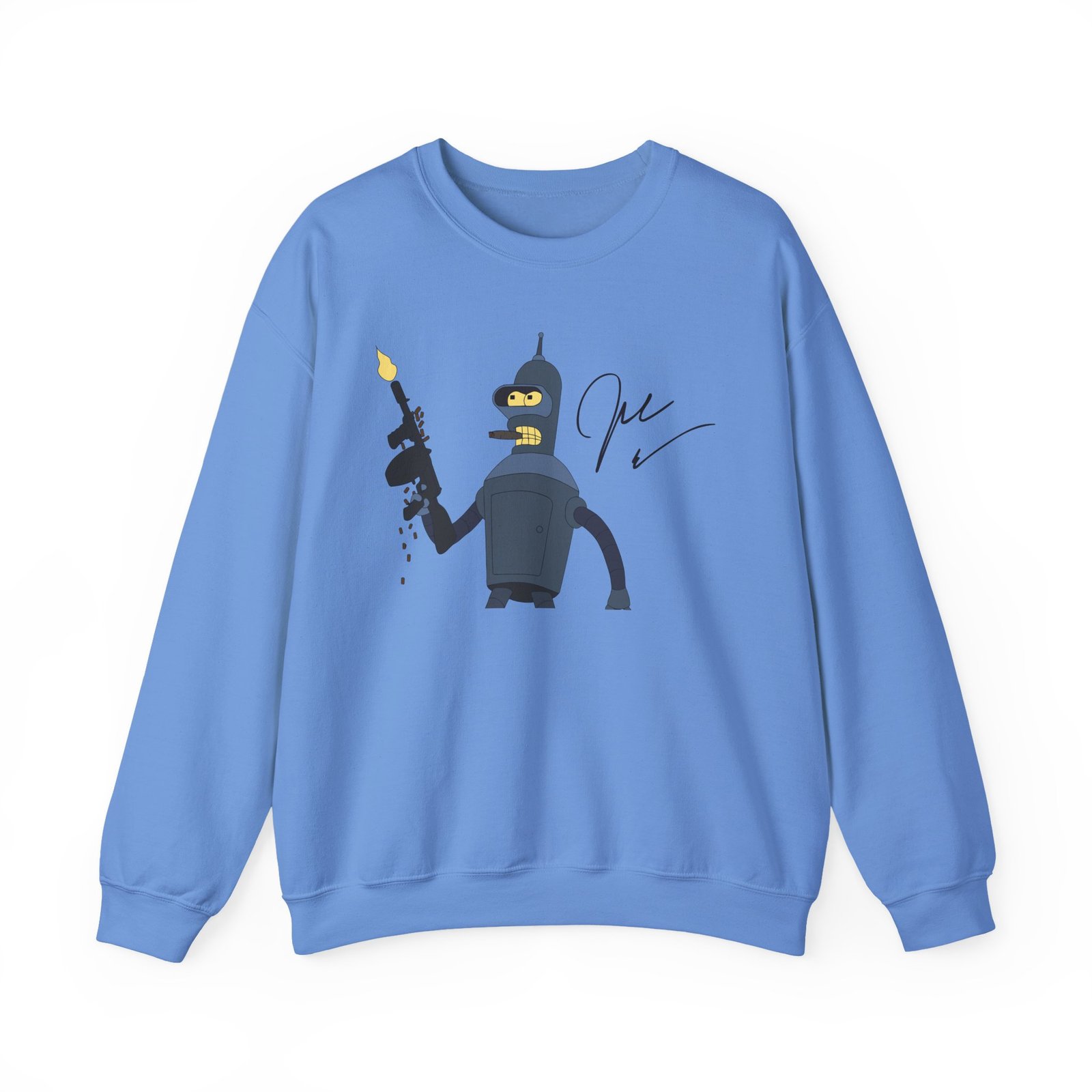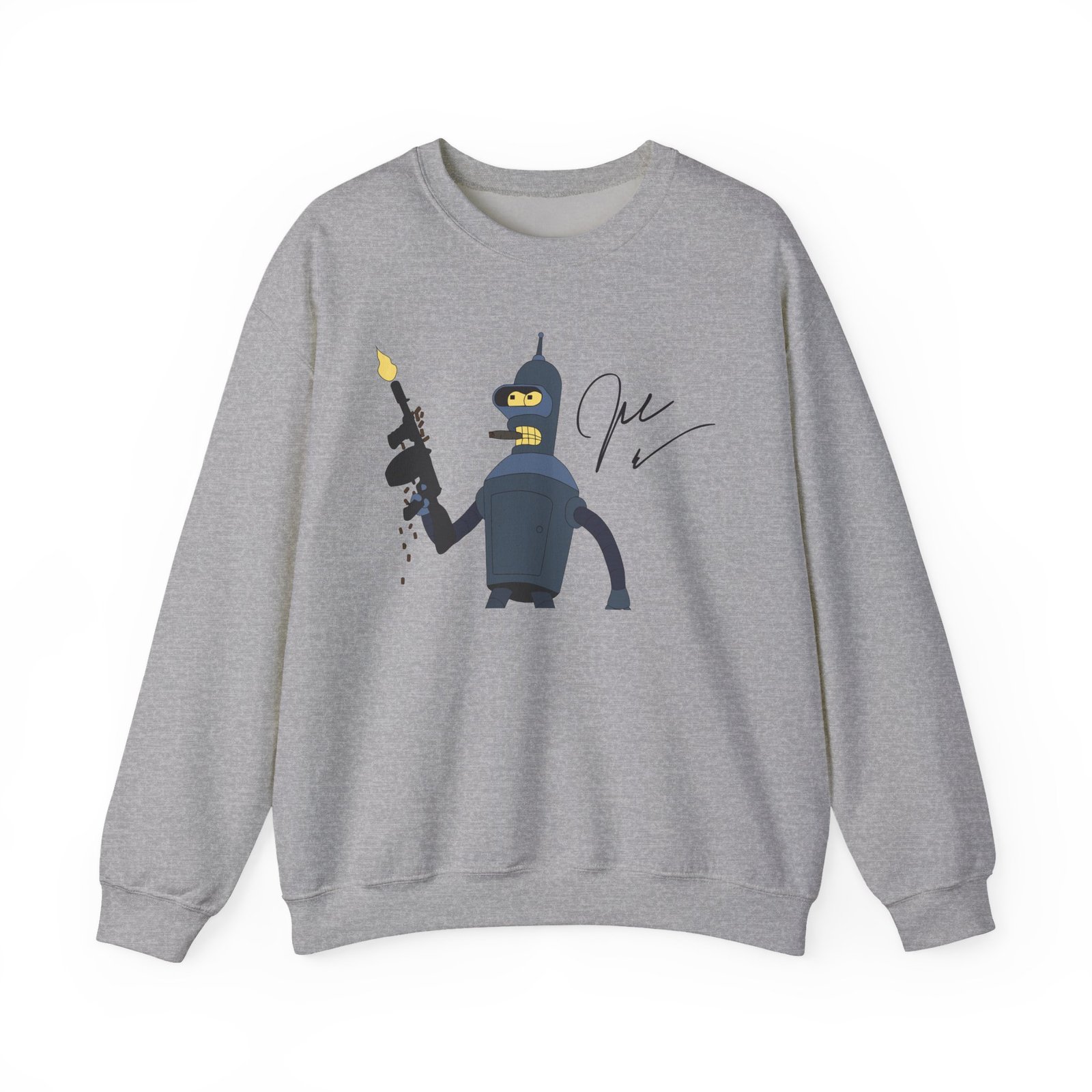 Ideal for any situation, a John Dimaggio Futurama Bender unisex heavy blend crewneck sweatshirt is pure comfort. These garments are made from polyester and cotton. This combination helps designs come out looking fresh and beautiful. The collar is ribbed knit, so it retains its shape even after washing. There are no itchy side seams on these sweaters.