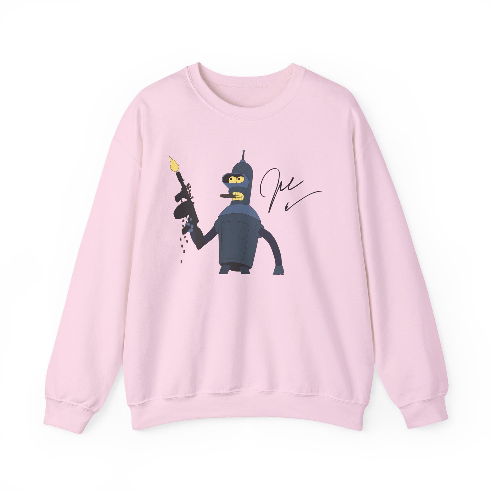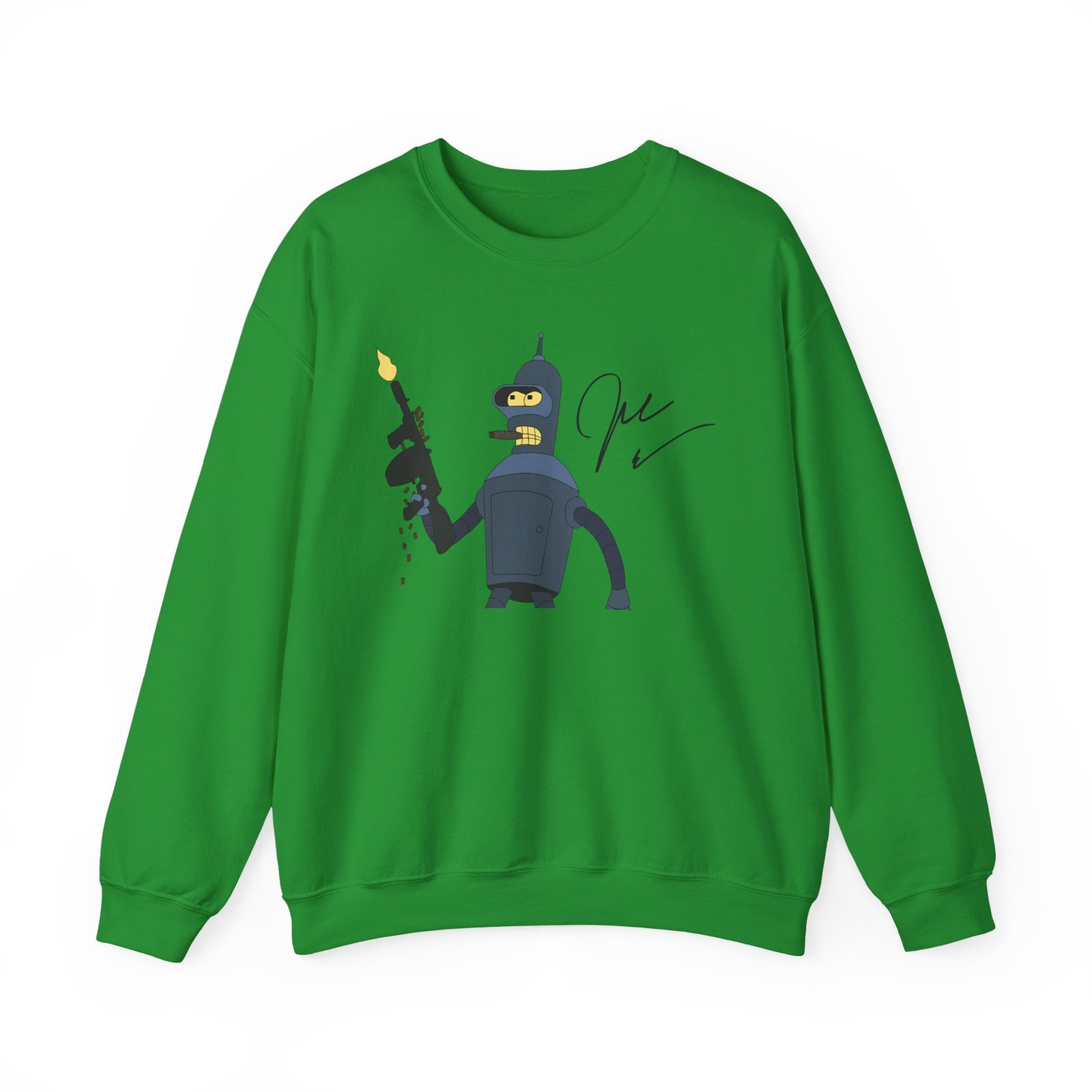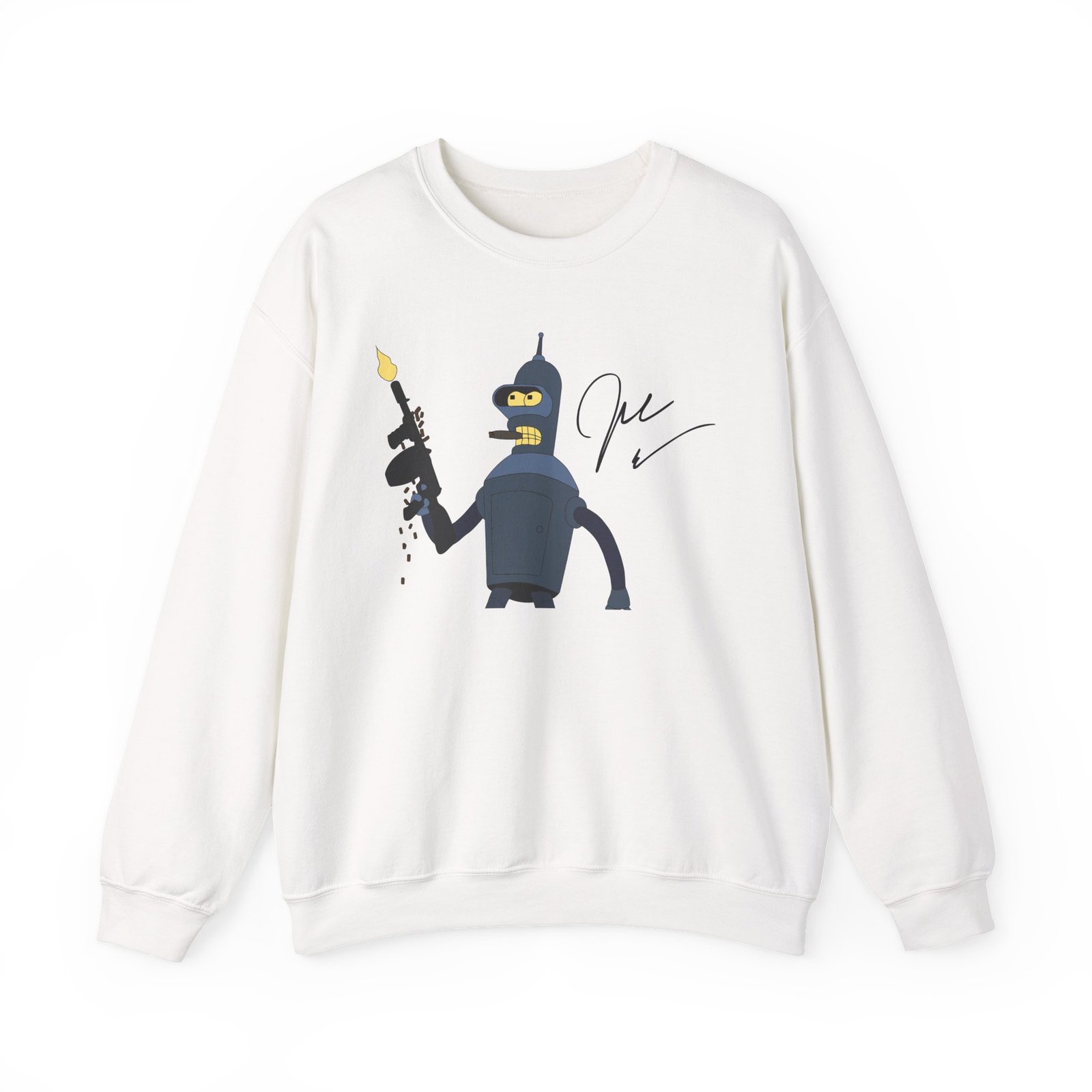 Ideal for any situation, a John Dimaggio Futurama Bender unisex heavy blend crewneck sweatshirt is pure comfort. These garments are made from polyester and cotton. This combination helps designs come out looking fresh and beautiful. The collar is ribbed knit, so it retains its shape even after washing. There are no itchy side seams on these sweaters.