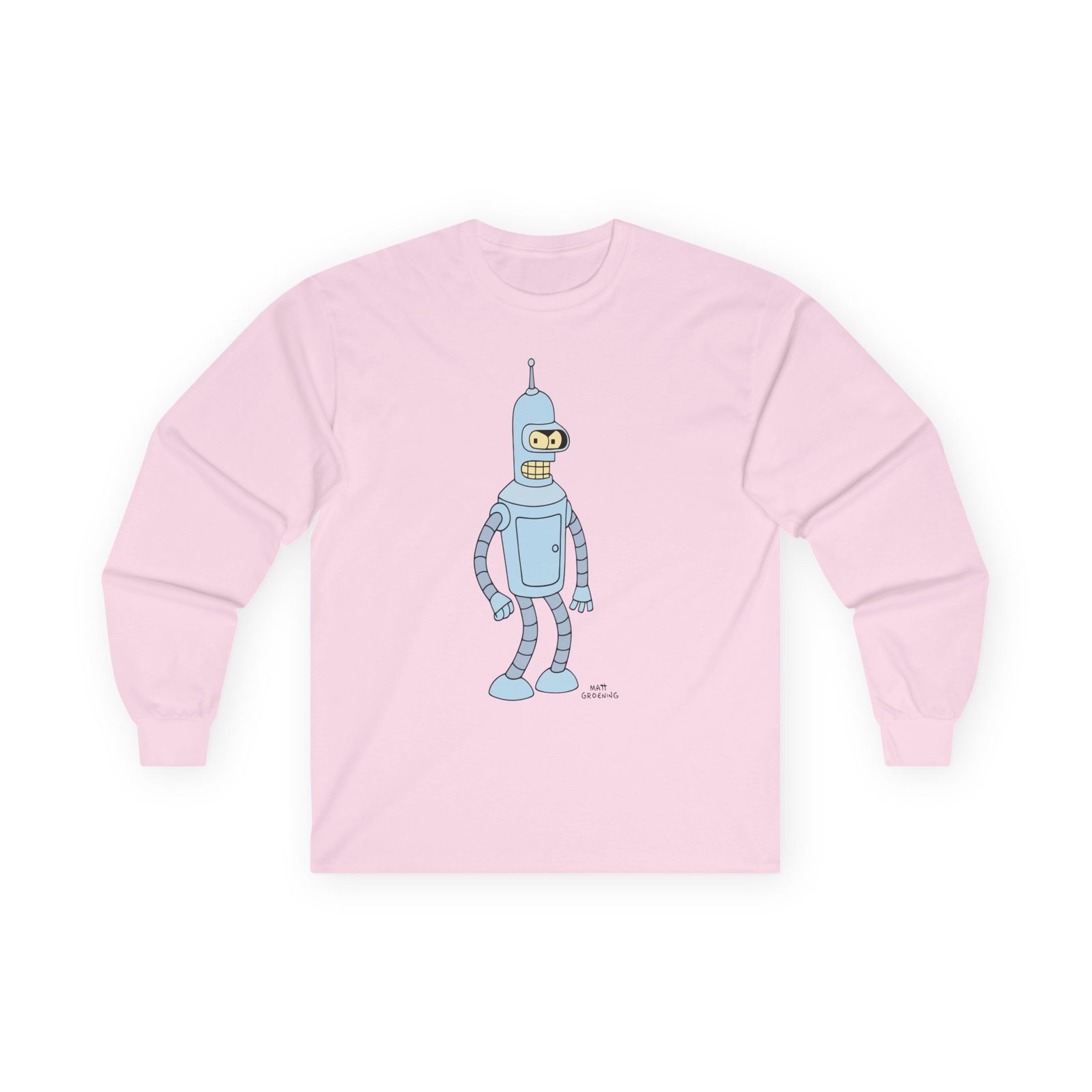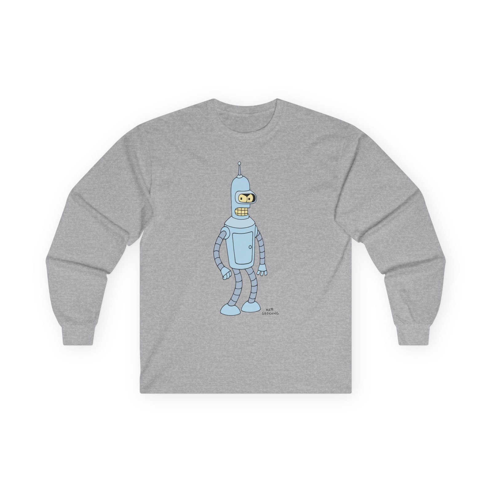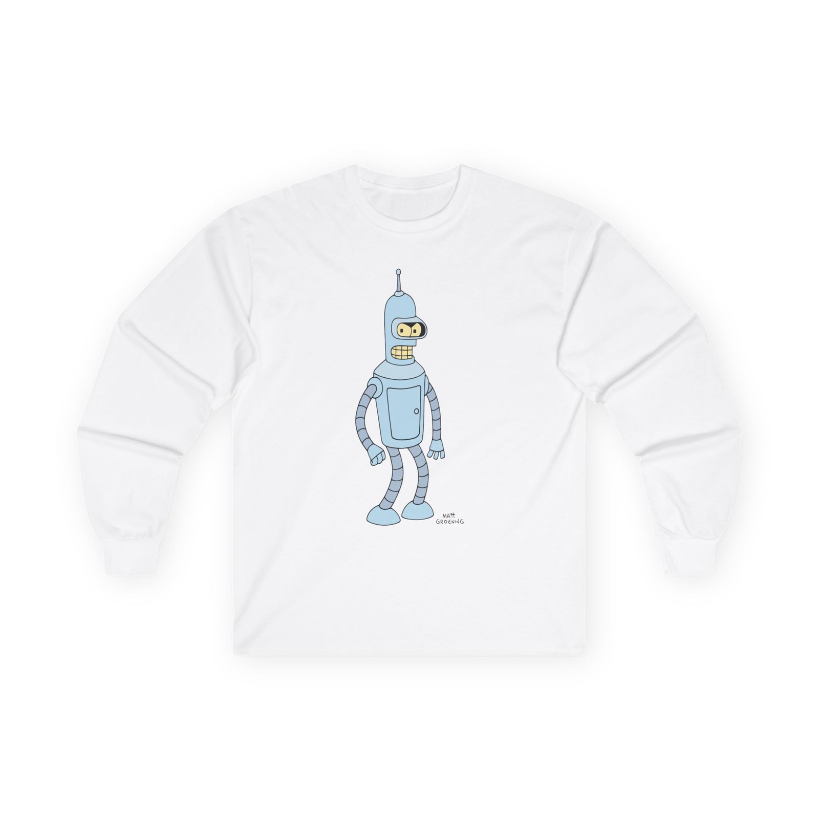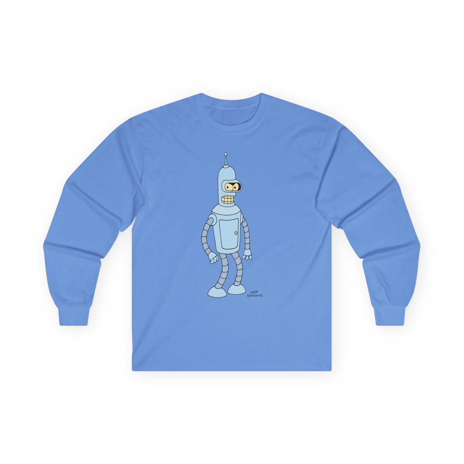 A bit more formal than a standard-issue t-shirt, the John Dimaggio Futurama Bender ultra cotton long sleeve tee is a clear comfort winner. The sleeves also act as a nice frame. There are no side seams. The shoulders are taped for improved durability. This makes for a good fitting around the shoulders and neck. The cotton used for these shirts is environmentally friendly.