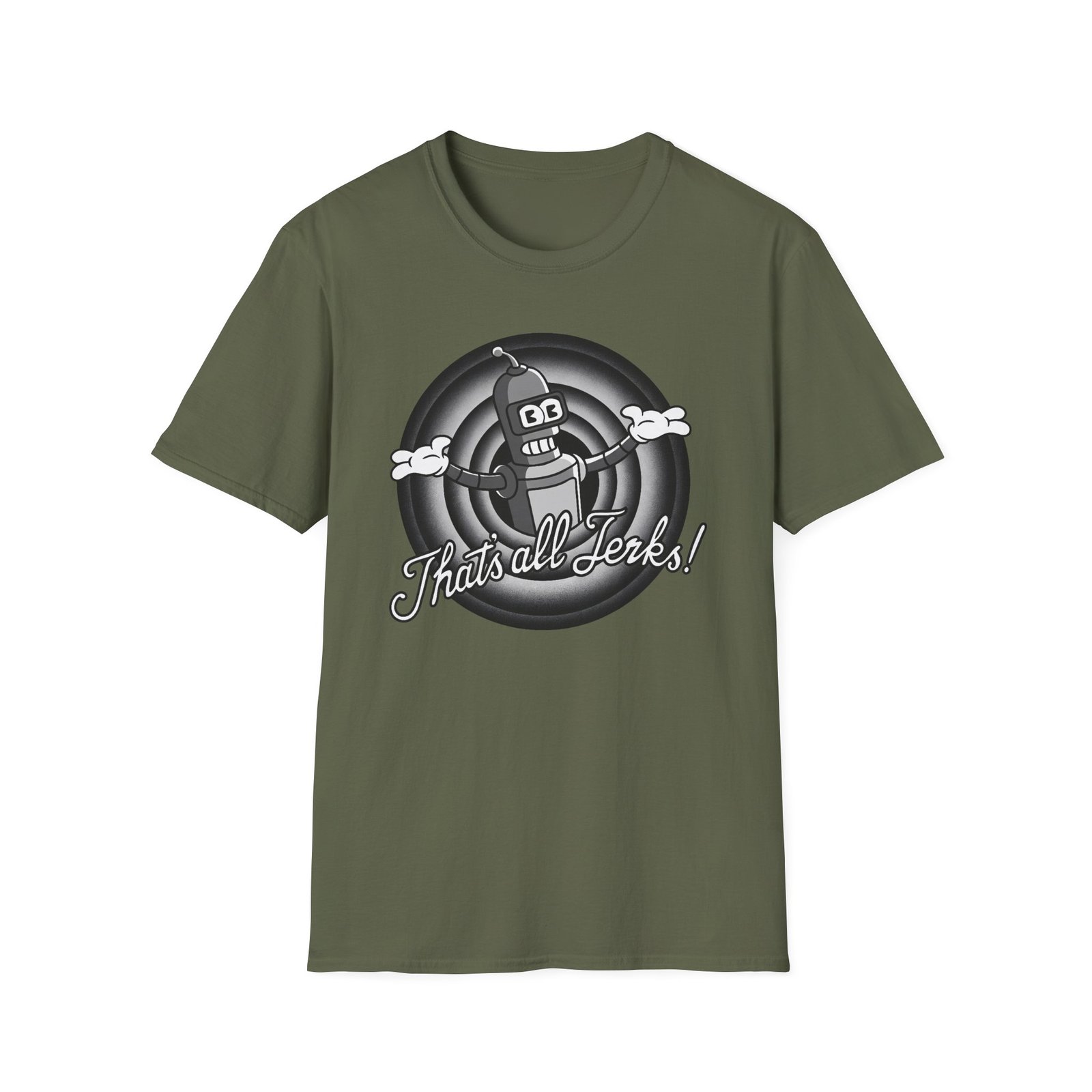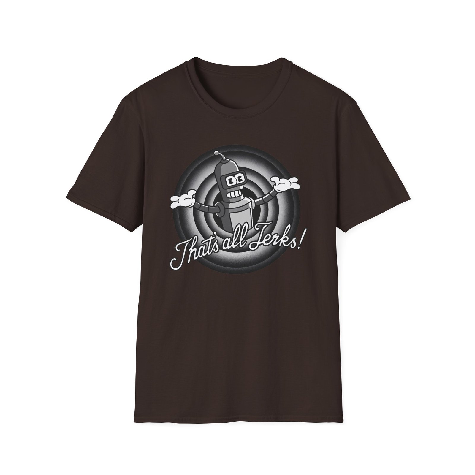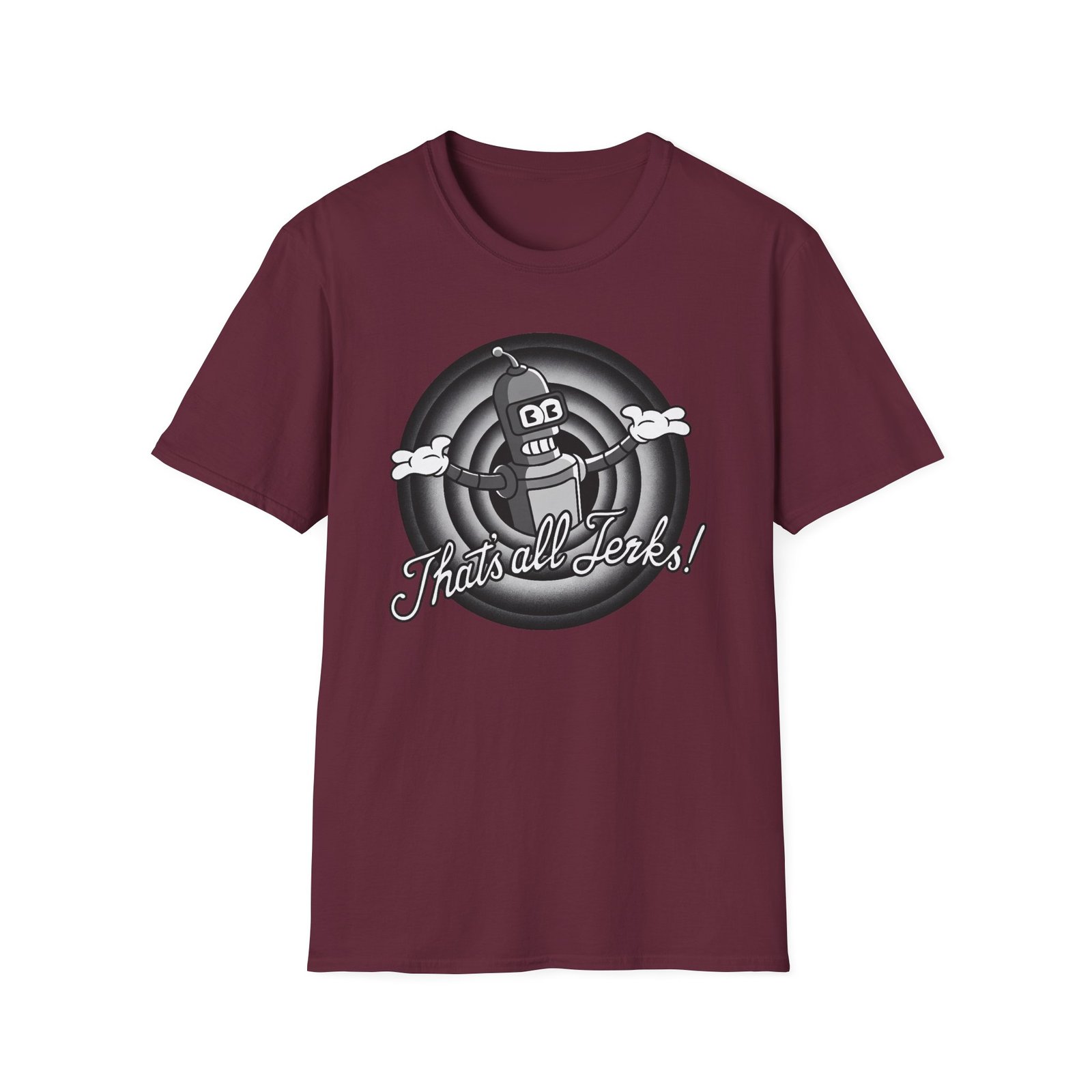 The John Dimaggio That's All, Jerks unisex soft-style t-shirt puts a new spin on casual comfort. Made from very soft materials, this tee is 100% cotton for solid colors. Heather colors and sports grey include polyester. The shoulders have twill tape for improved durability. There are no side seams. The collar is made with ribbed knitting to prevent curling damage.