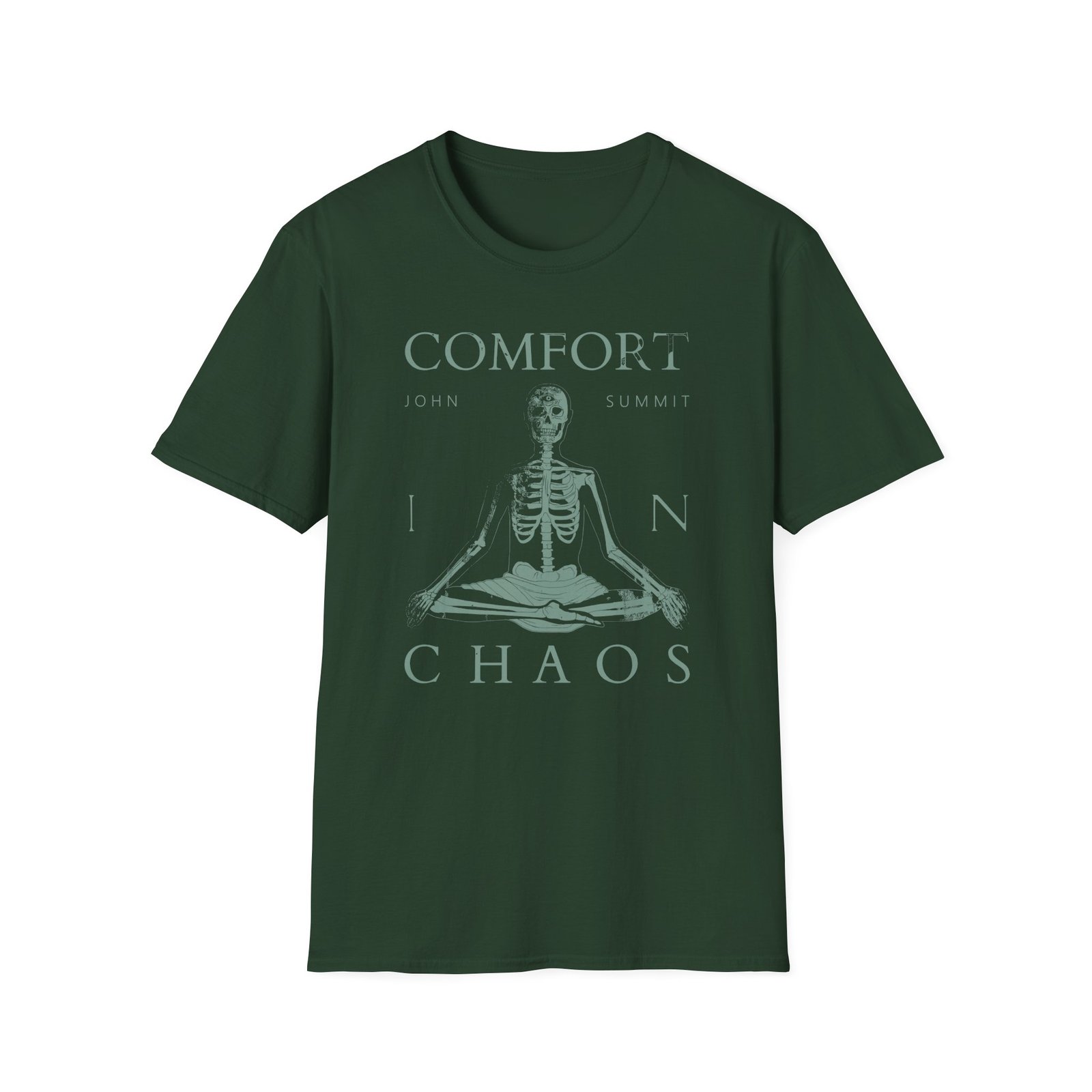 The John Summit Comfort in Chaos X Marcos Alvarado unisex soft-style t-shirt puts a new spin on casual comfort. Made from very soft materials, this tee is 100% cotton for solid colors. Heather colors and sports grey include polyester. The shoulders have twill tape for improved durability. There are no side seams. The collar is made with ribbed knitting to prevent curling damage.