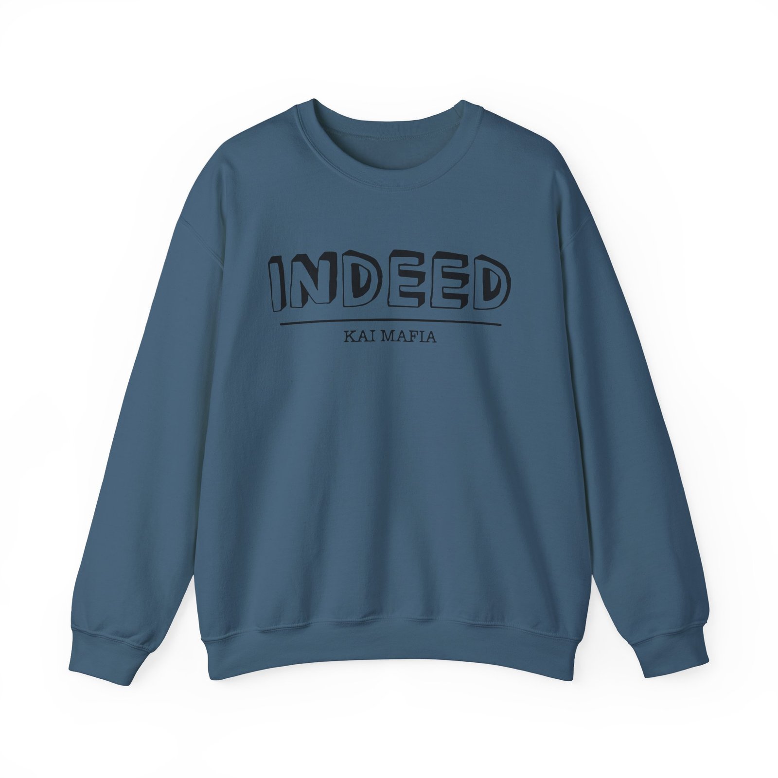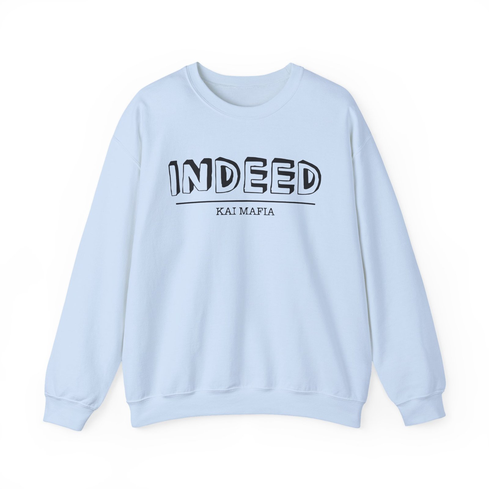 Ideal for any situation, a Kai Cenat Indeed unisex heavy blend crewneck sweatshirt is pure comfort. These garments are made from polyester and cotton. This combination helps designs come out looking fresh and beautiful. The collar is ribbed knit, so it retains its shape even after washing. There are no itchy side seams on these sweaters.