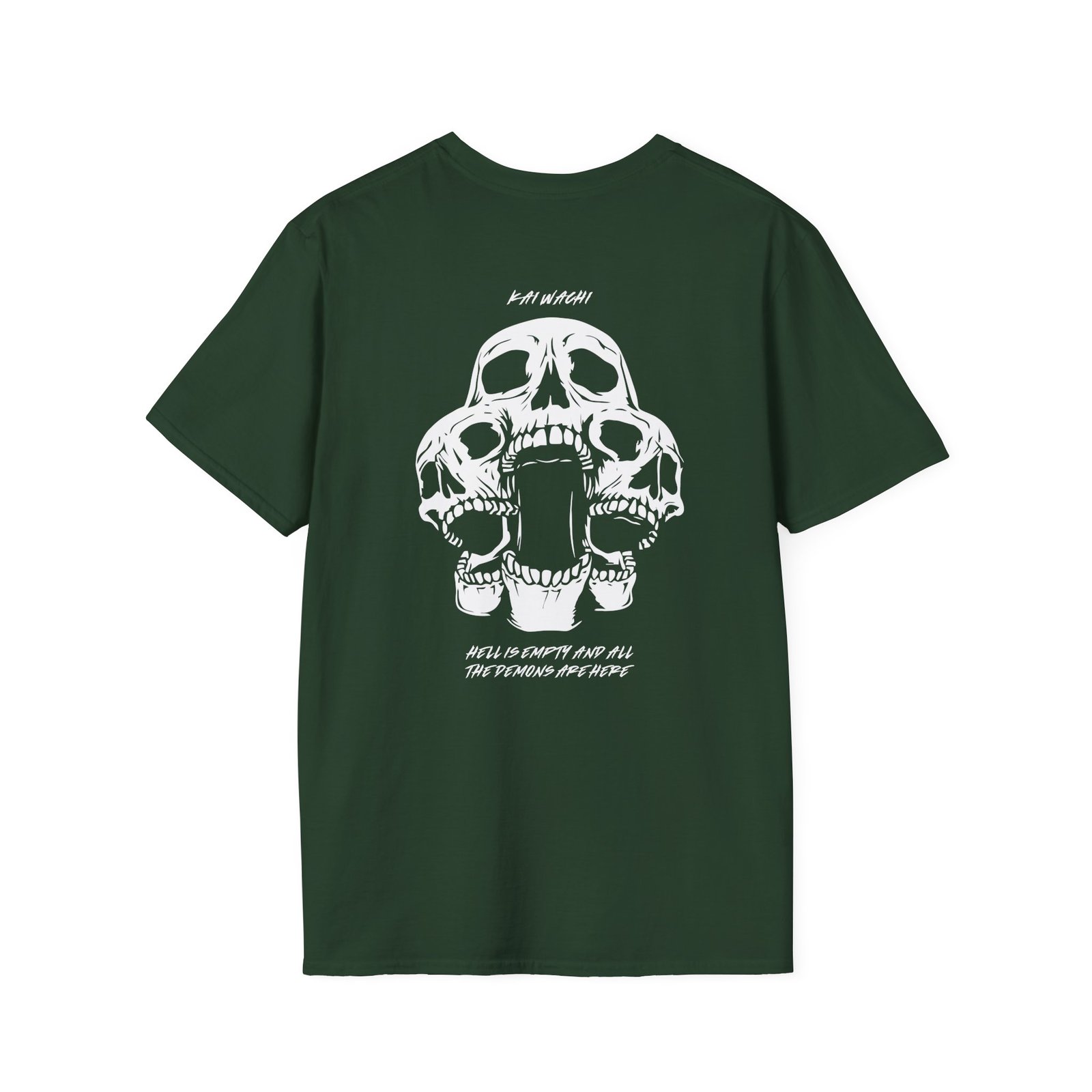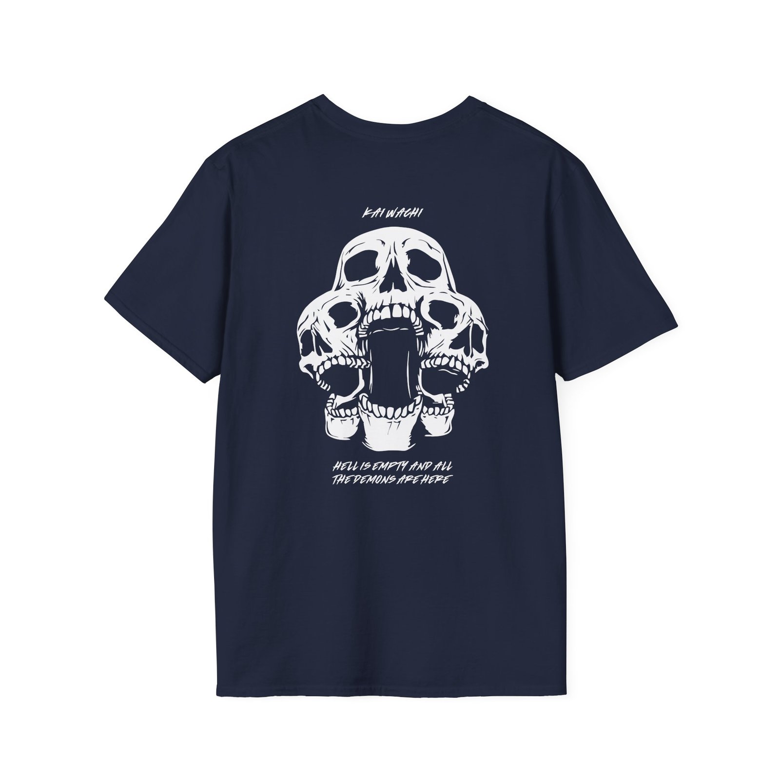 The Kai Wachi Skull Team unisex soft-style t-shirt puts a new spin on casual comfort. Made from very soft materials, this tee is 100% cotton for solid colors. Heather colors and sports grey include polyester. The shoulders have twill tape for improved durability. There are no side seams. The collar is made with ribbed knitting to prevent curling damage.