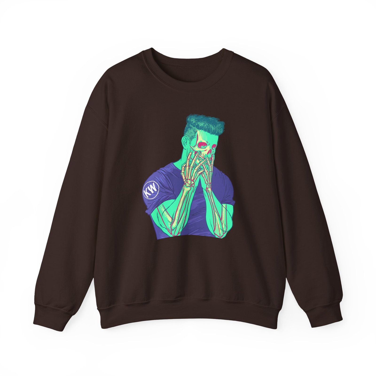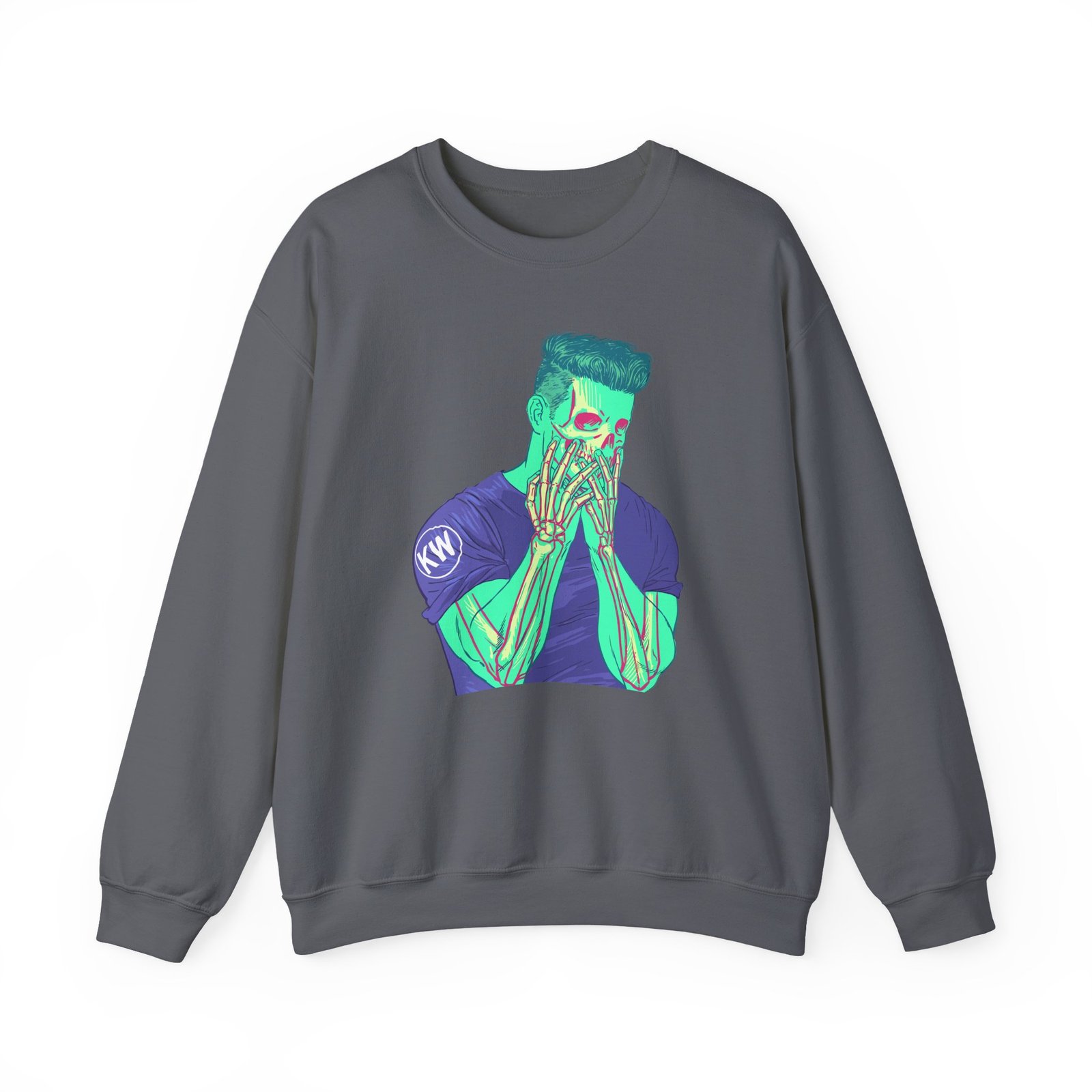 Ideal for any situation, a Kai Wachi Skull unisex heavy blend crewneck sweatshirt is pure comfort. These garments are made from polyester and cotton. This combination helps designs come out looking fresh and beautiful. The collar is ribbed knit, so it retains its shape even after washing. There are no itchy side seams on these sweaters.