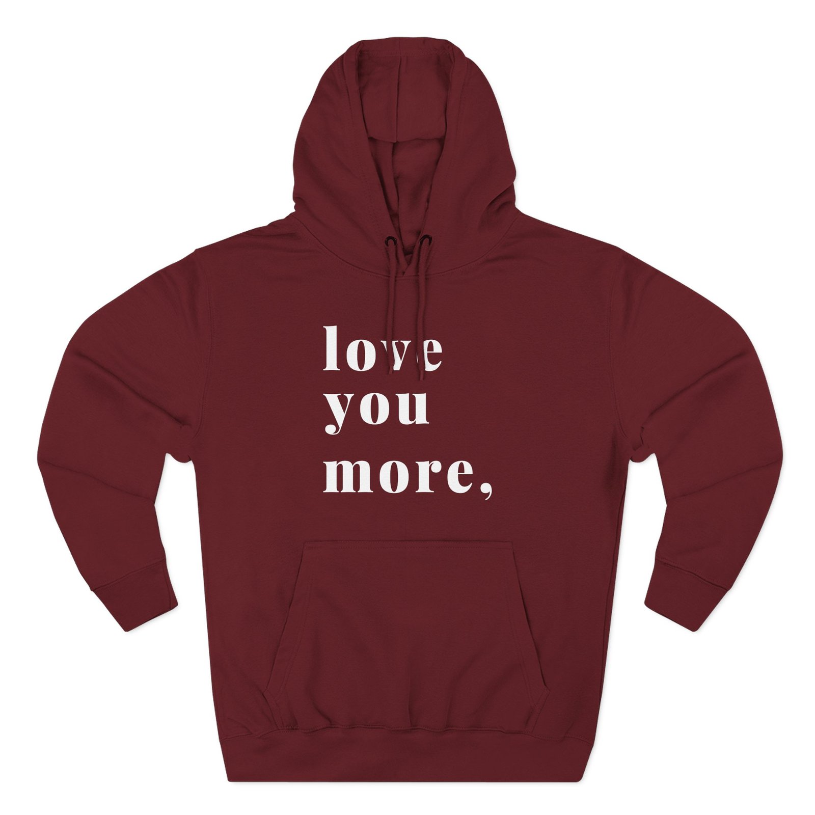 Beat the cold with this Karrie Locher Love You More premium pullover hoodie that’s just the right layer of warm and cozy. Made with three-panel fleece lining, this pullover is double stitched for durability and roomy. Pick one in your favorite color to match your style.