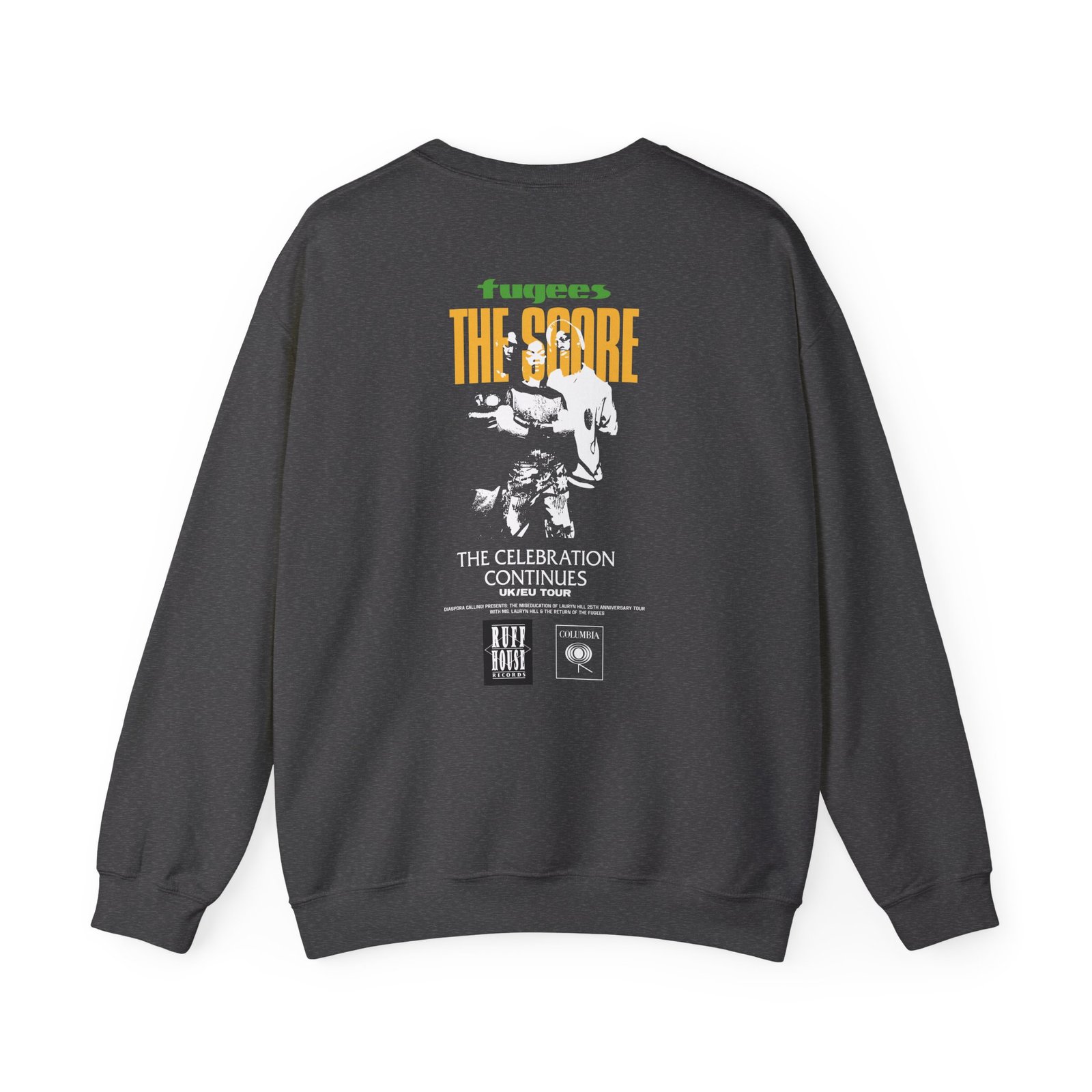 Ideal for any situation, a Lauryn Hill Fugees Uk/eu Tour the Score unisex heavy blend crewneck sweatshirt is pure comfort. These garments are made from polyester and cotton. This combination helps designs come out looking fresh and beautiful. The collar is ribbed knit, so it retains its shape even after washing. There are no itchy side seams on these sweaters.