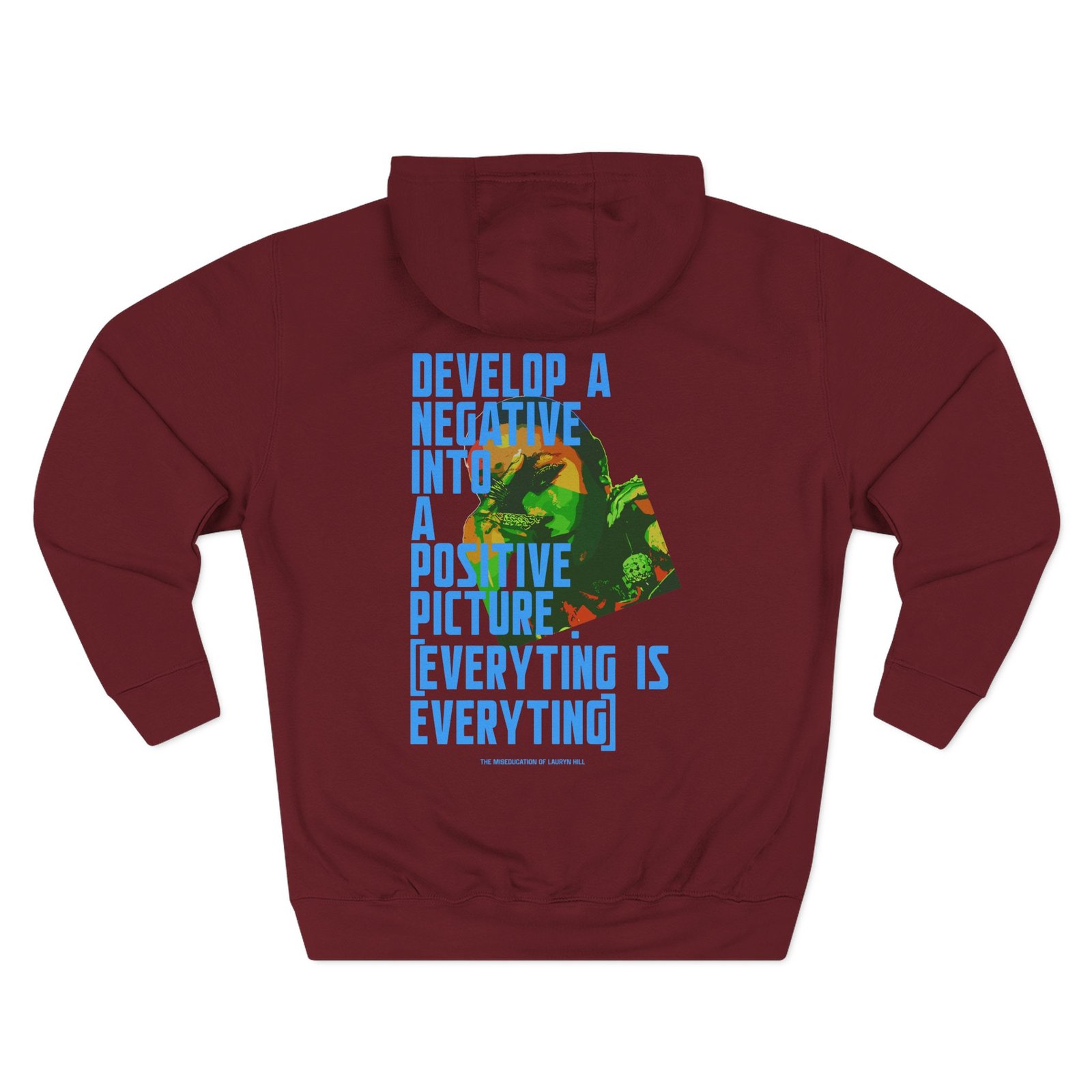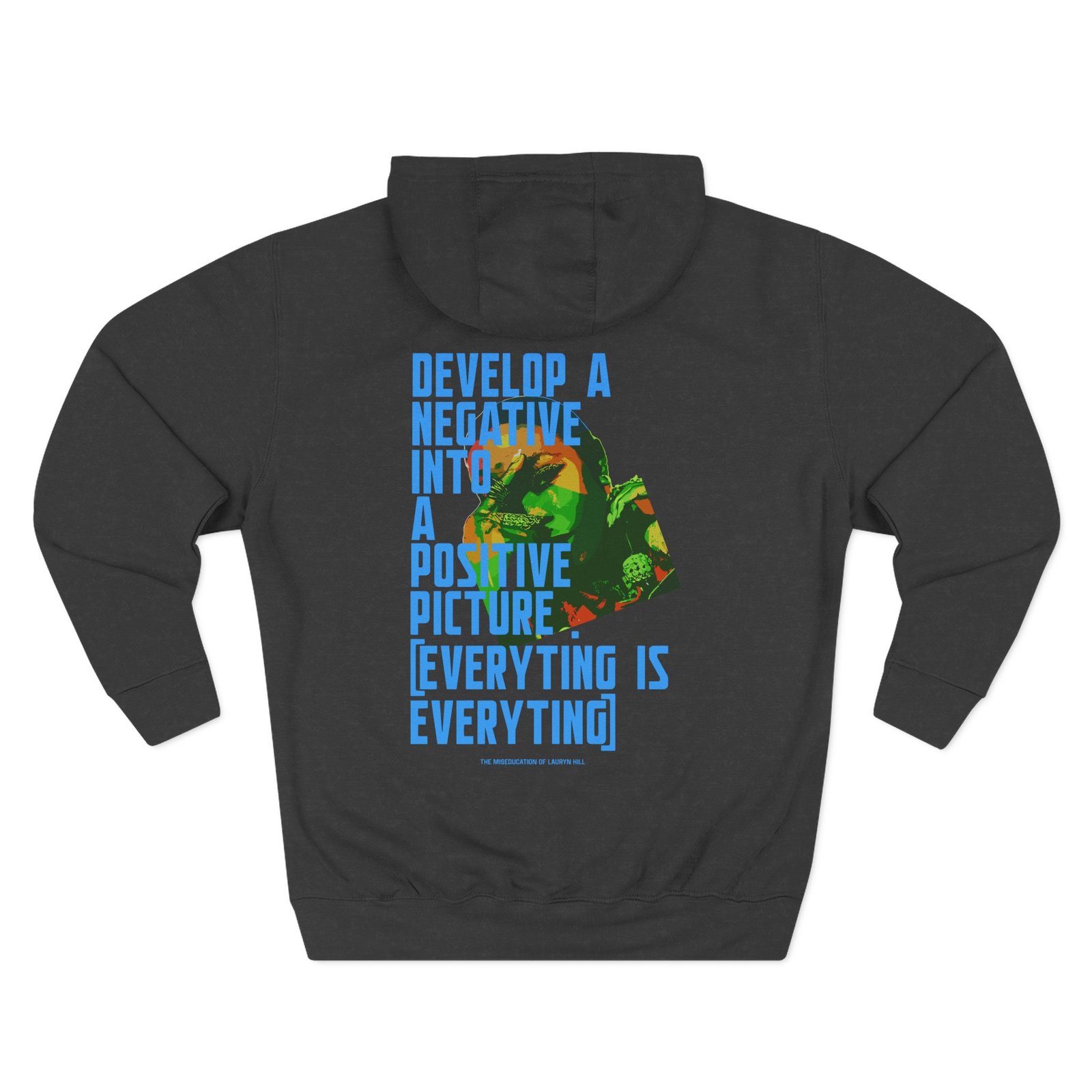 Beat the cold with this Lauryn Hill Negative to Positive premium pullover hoodie that’s just the right layer of warm and cozy. Made with three-panel fleece lining, this pullover is double stitched for durability and roomy. Pick one in your favorite color to match your style.