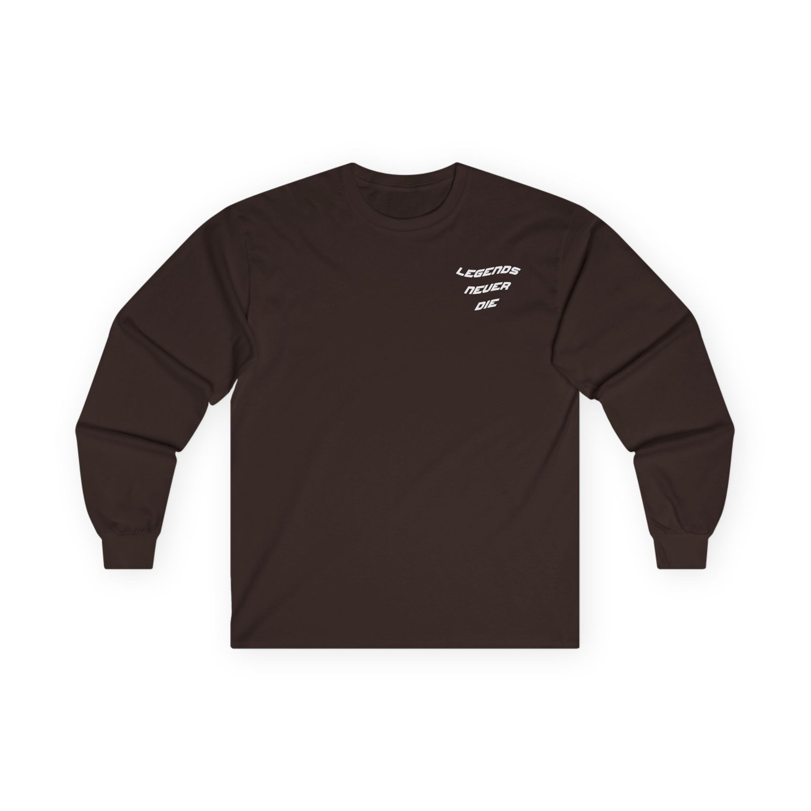 A bit more formal than a standard-issue t-shirt, the Legends Never Die Clouds ultra cotton long sleeve tee is a clear comfort winner. The sleeves also act as a nice frame. There are no side seams. The shoulders are taped for improved durability. This makes for a good fitting around the shoulders and neck. The cotton used for these shirts is environmentally friendly.