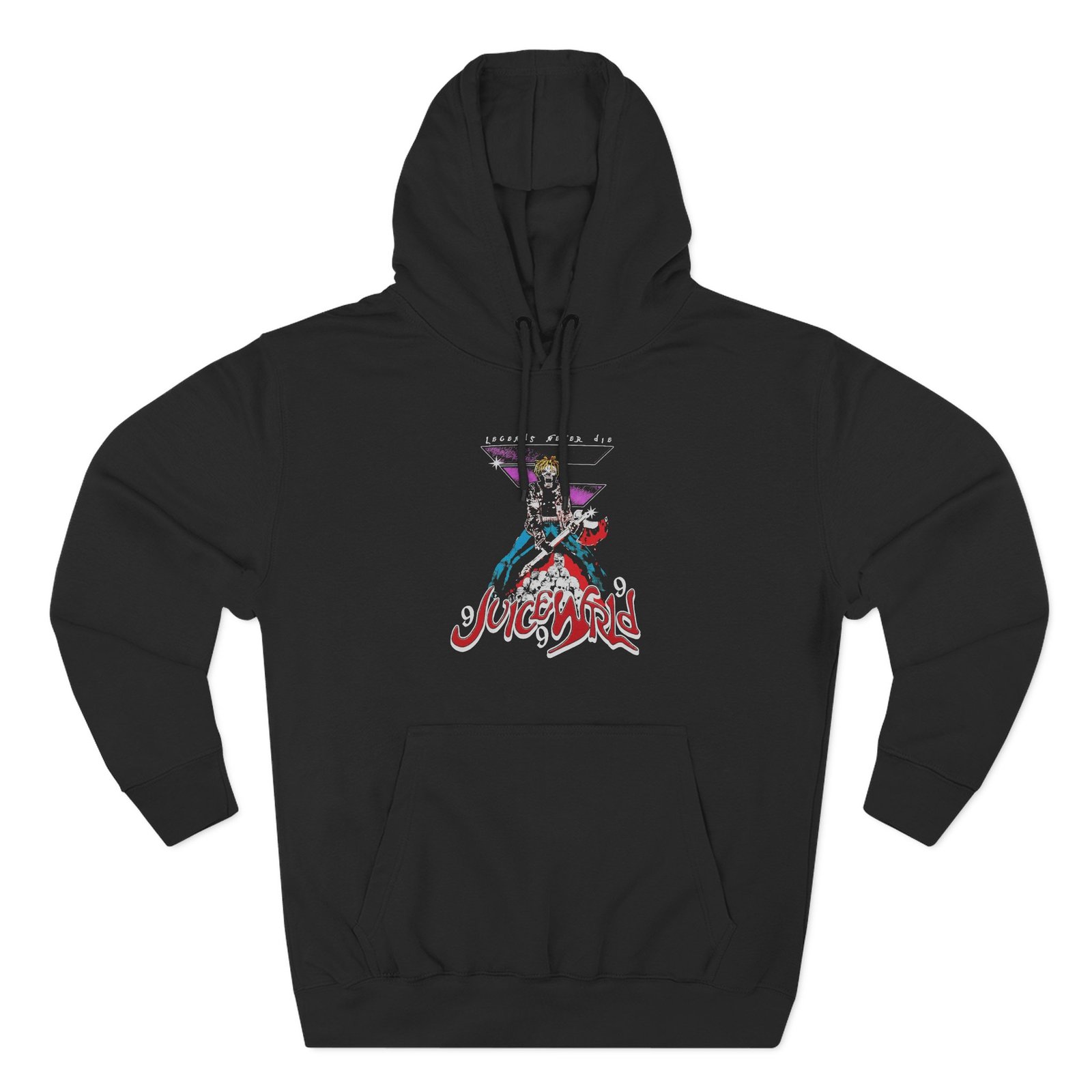 Beat the cold with this Legends Never Die Juice Champion premium pullover hoodie that’s just the right layer of warm and cozy. Made with three-panel fleece lining, this pullover is double stitched for durability and roomy. Pick one in your favorite color to match your style.