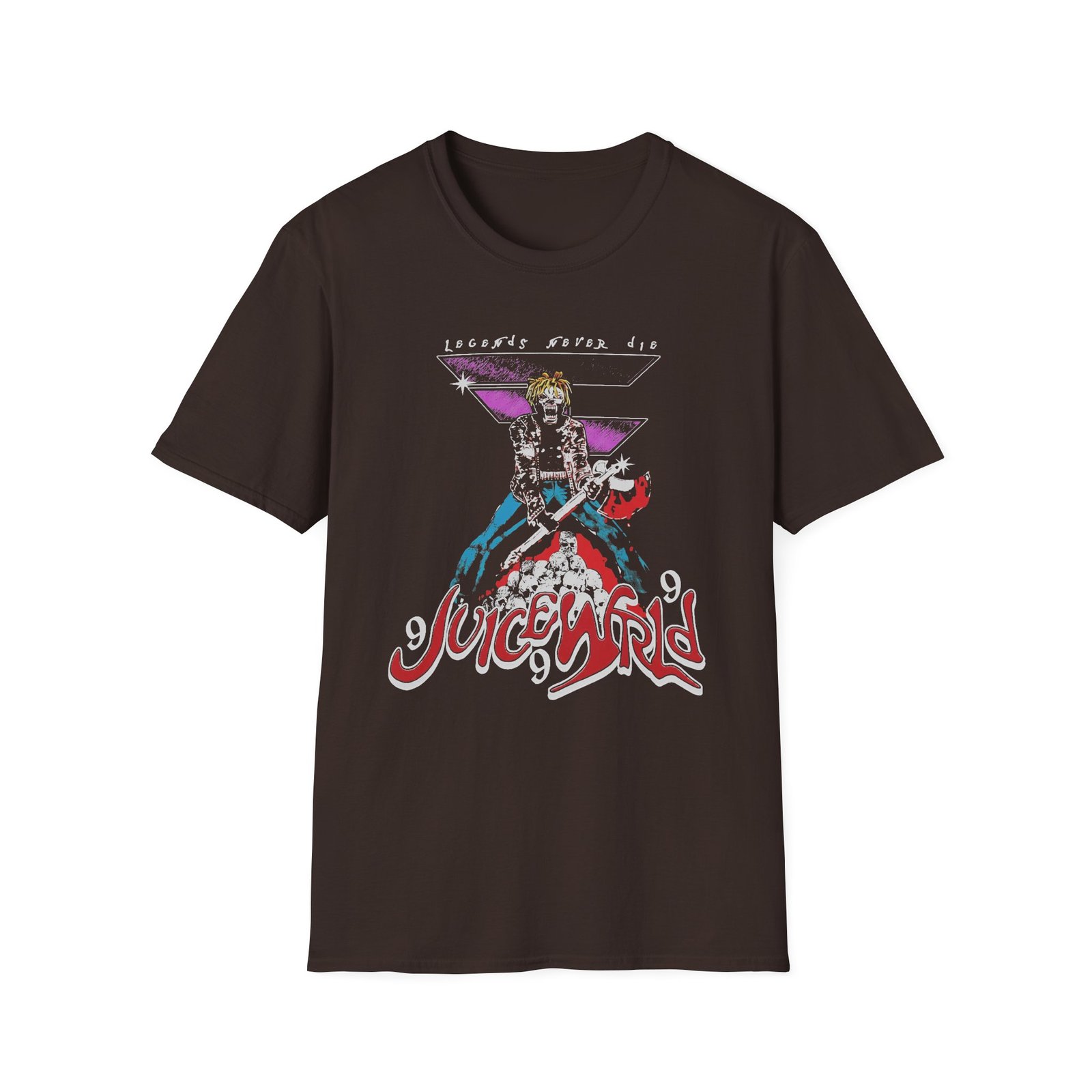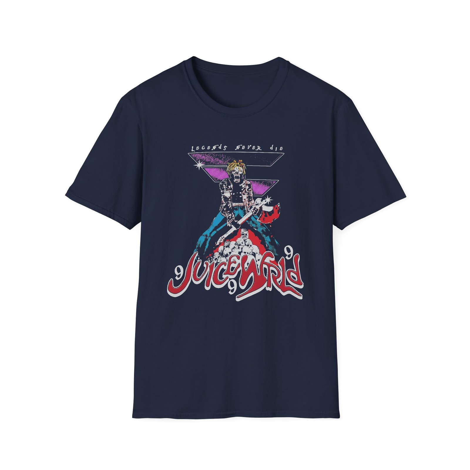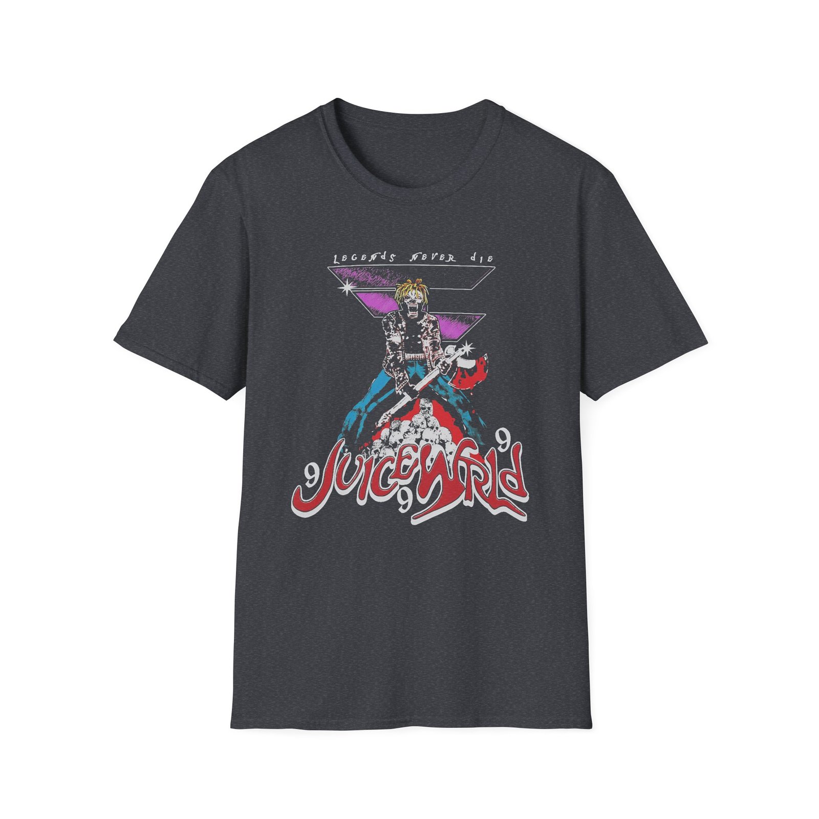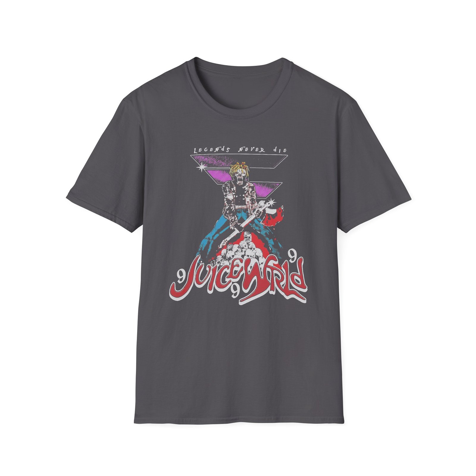 The Legends Never Die Juice Champion unisex soft-style t-shirt puts a new spin on casual comfort. Made from very soft materials, this tee is 100% cotton for solid colors. Heather colors and sports grey include polyester. The shoulders have twill tape for improved durability. There are no side seams. The collar is made with ribbed knitting to prevent curling damage.