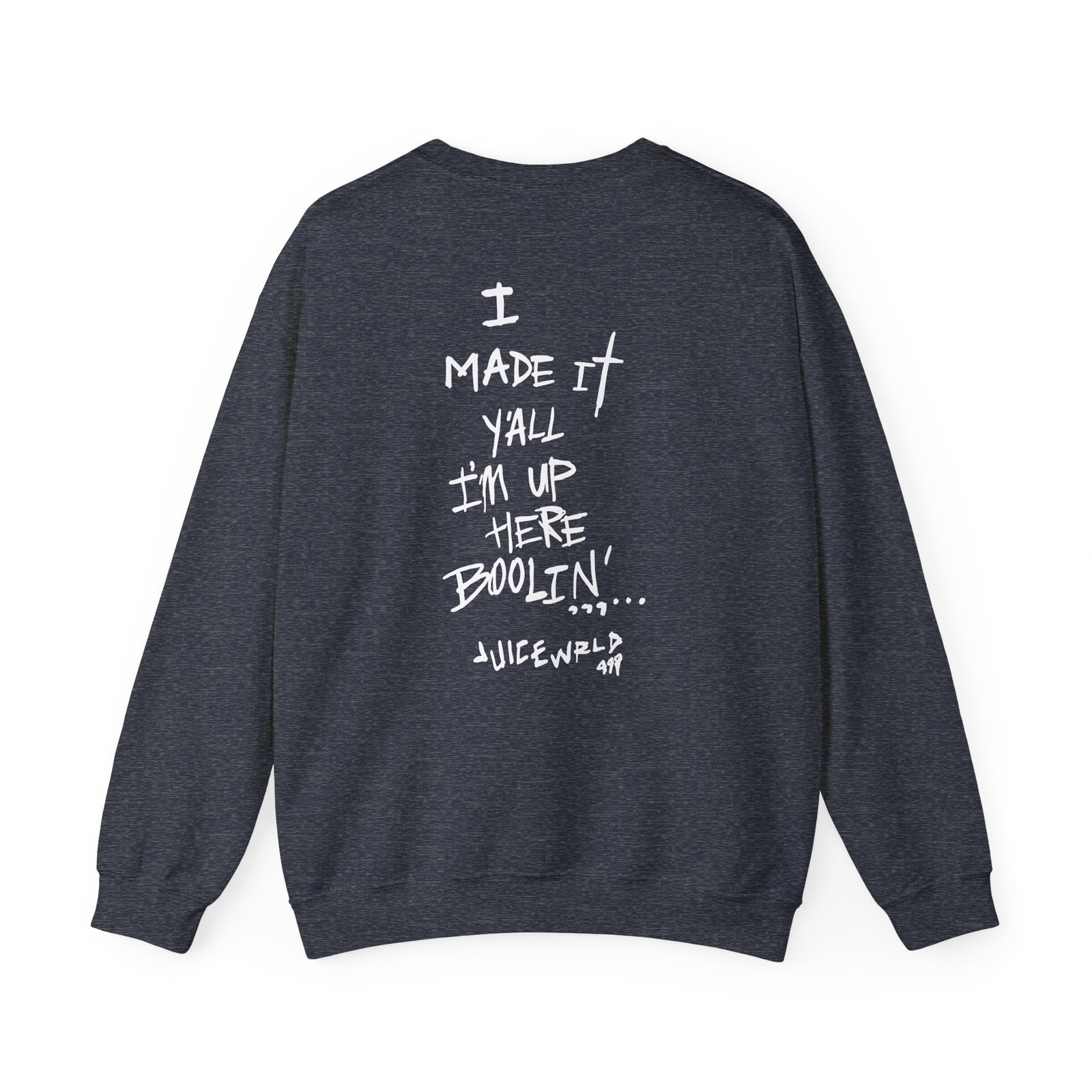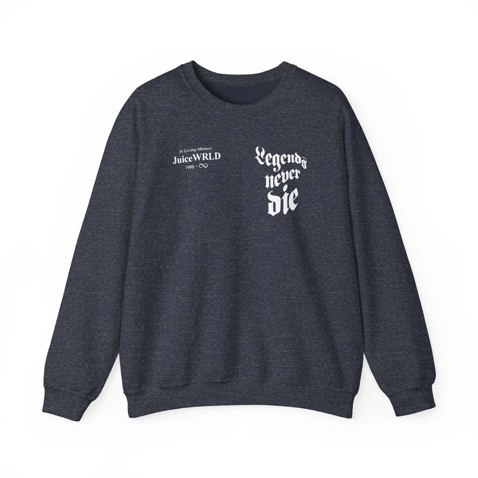 Ideal for any situation, a Legends Never Die Juice WRLD 999 Club unisex heavy blend crewneck sweatshirt is pure comfort. These garments are made from polyester and cotton. This combination helps designs come out looking fresh and beautiful. The collar is ribbed knit, so it retains its shape even after washing. There are no itchy side seams on these sweaters.