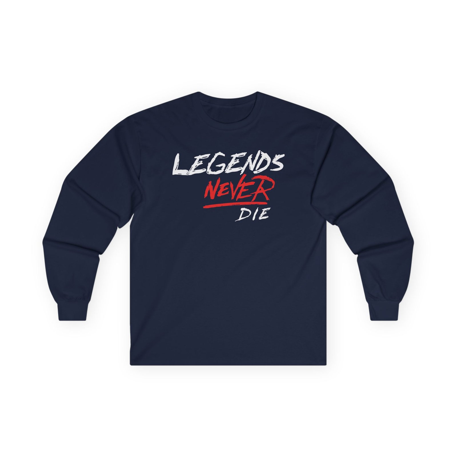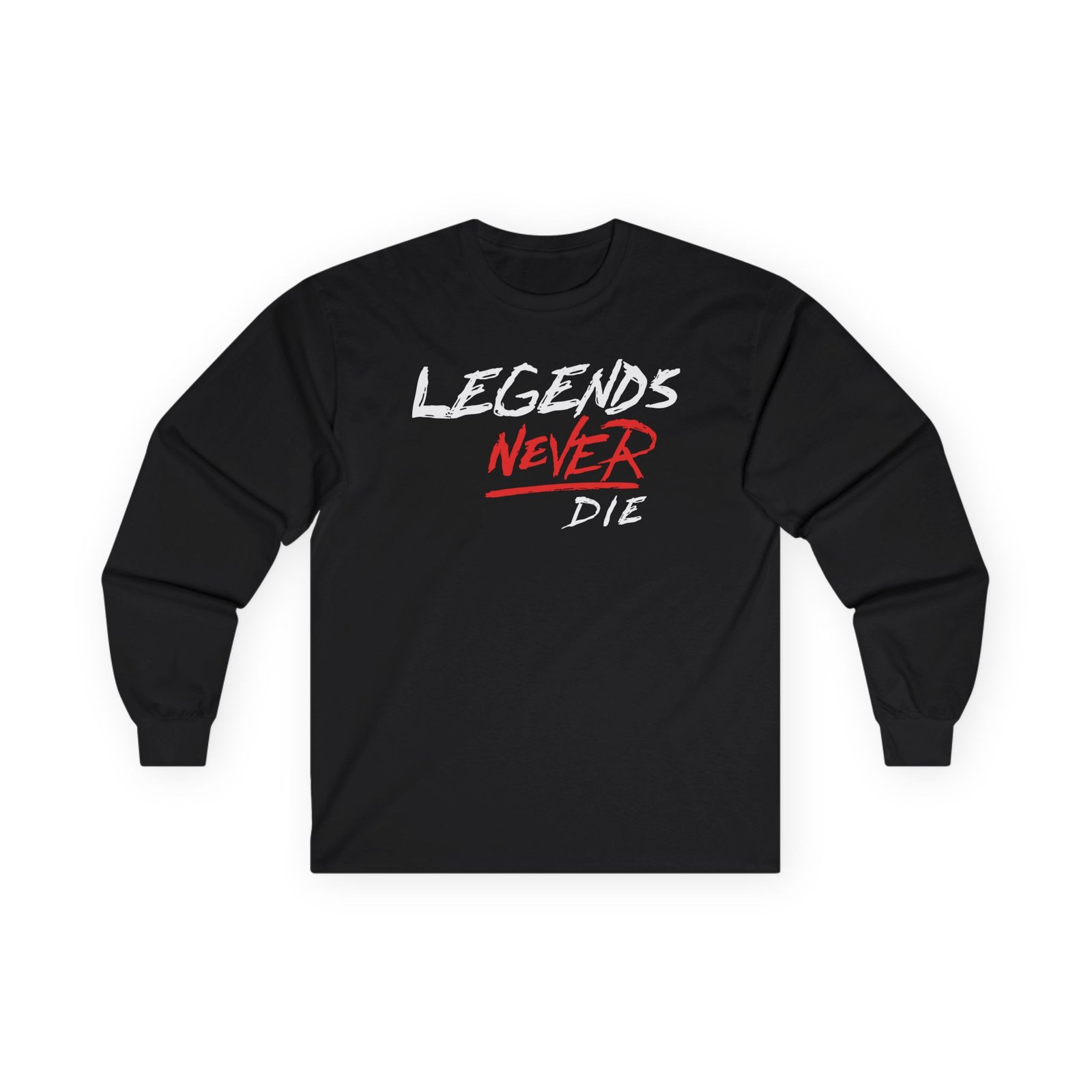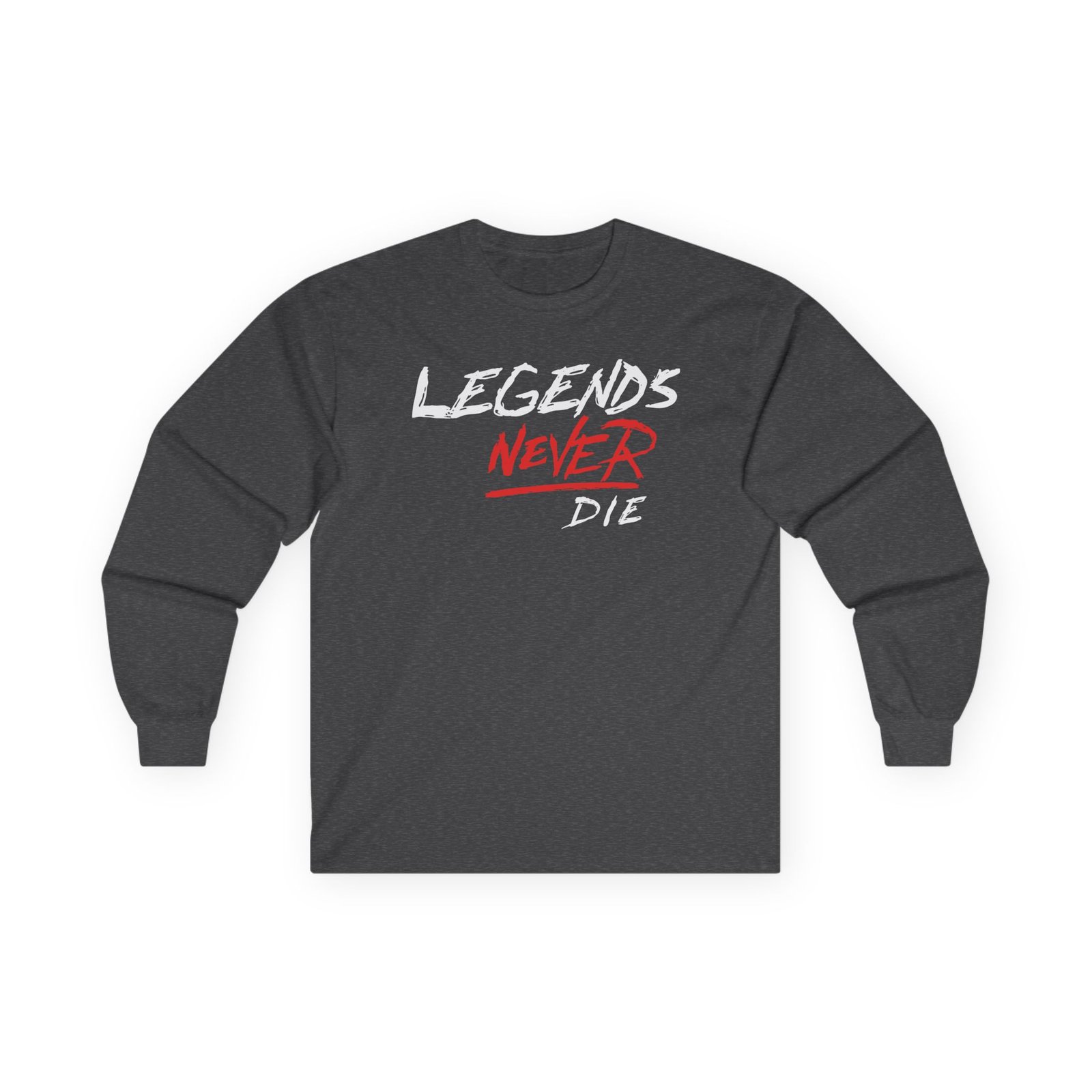 A bit more formal than a standard-issue t-shirt, the Legends Never Die Revenge ultra cotton long sleeve tee is a clear comfort winner. The sleeves also act as a nice frame. There are no side seams. The shoulders are taped for improved durability. This makes for a good fitting around the shoulders and neck. The cotton used for these shirts is environmentally friendly.