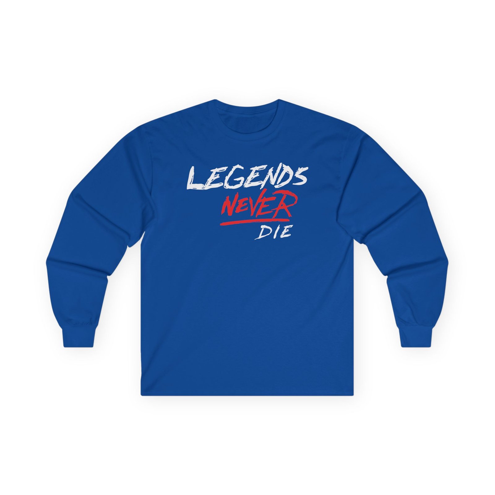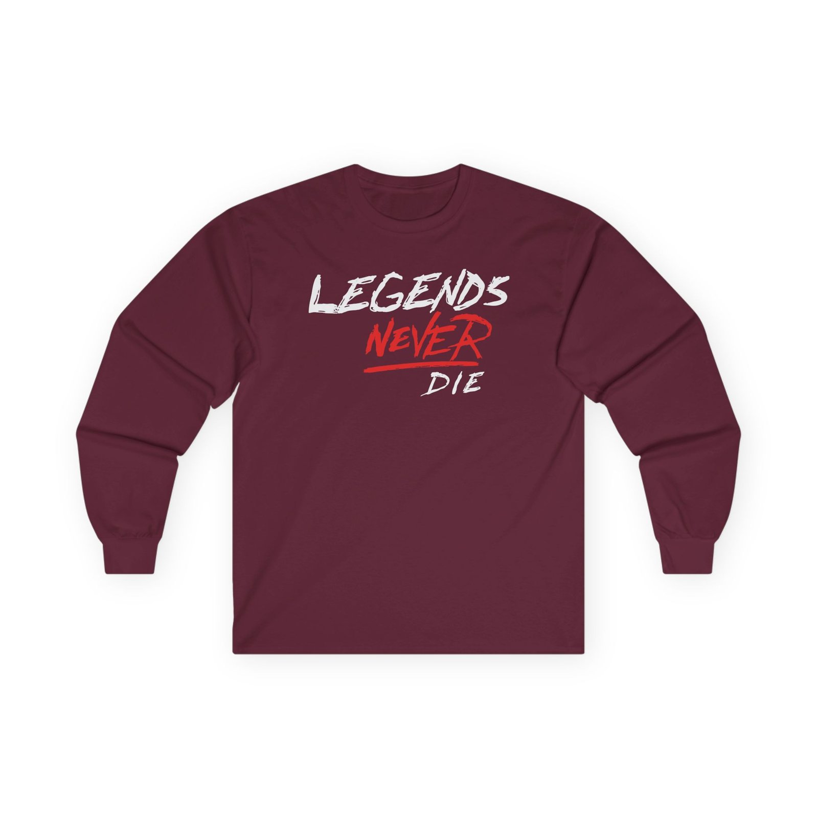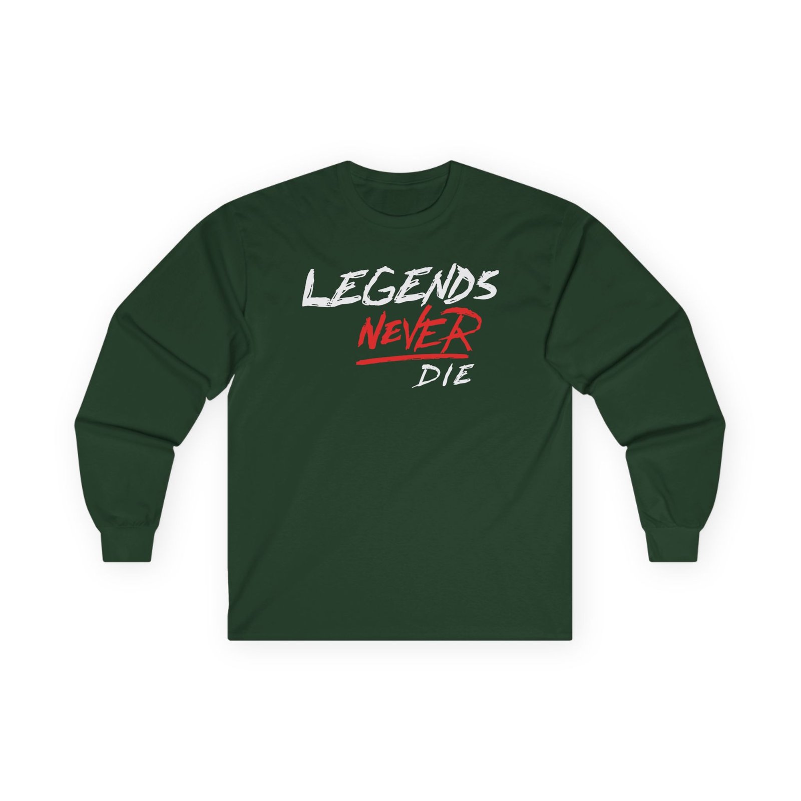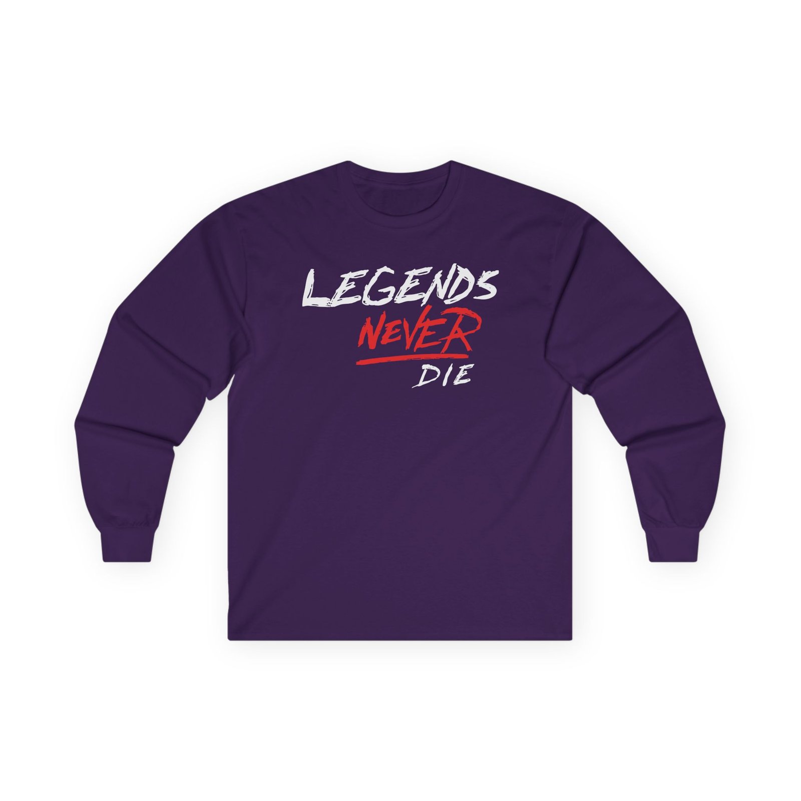 A bit more formal than a standard-issue t-shirt, the Legends Never Die Revenge ultra cotton long sleeve tee is a clear comfort winner. The sleeves also act as a nice frame. There are no side seams. The shoulders are taped for improved durability. This makes for a good fitting around the shoulders and neck. The cotton used for these shirts is environmentally friendly.