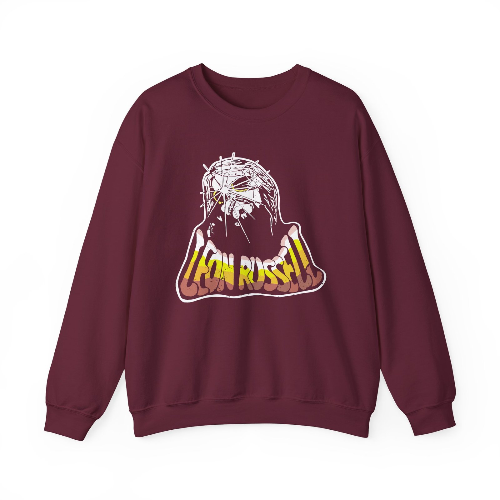 Ideal for any situation, a Leon Russell Sun unisex heavy blend crewneck sweatshirt is pure comfort. These garments are made from polyester and cotton. This combination helps designs come out looking fresh and beautiful. The collar is ribbed knit, so it retains its shape even after washing. There are no itchy side seams on these sweaters.