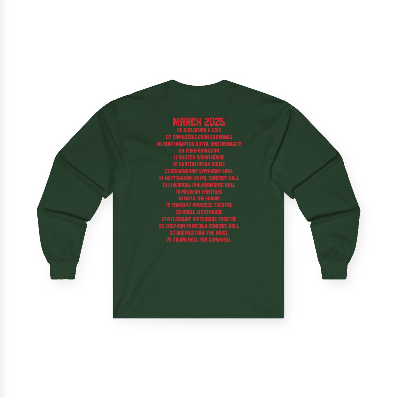 A bit more formal than a standard-issue t-shirt, the Levellers 2025 March We the Collective Tour ultra cotton long sleeve tee is a clear comfort winner. The sleeves also act as a nice frame. There are no side seams. The shoulders are taped for improved durability. This makes for a good fitting around the shoulders and neck. The cotton used for these shirts is environmentally friendly.