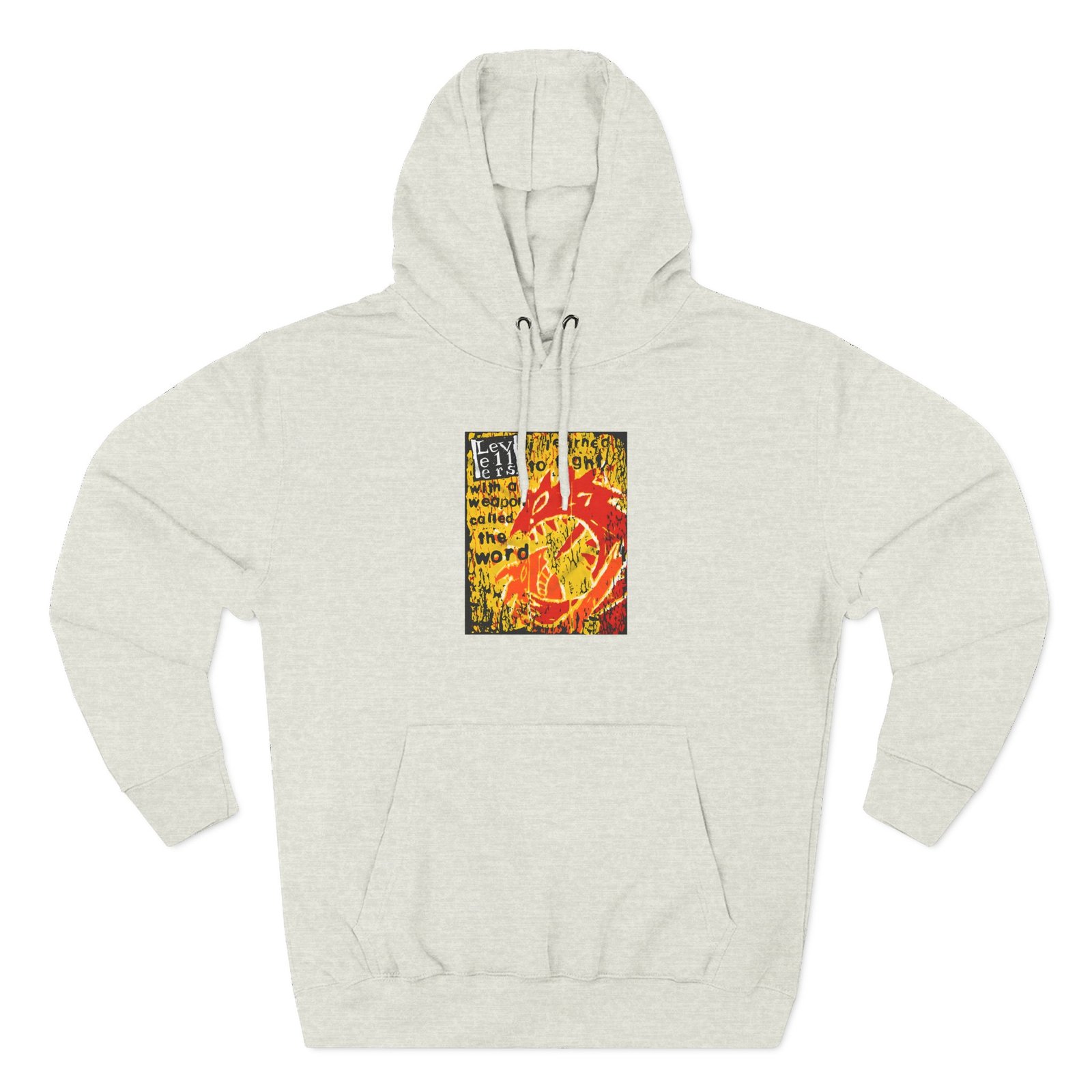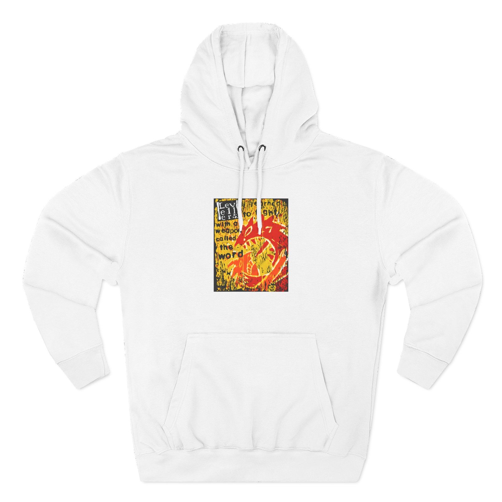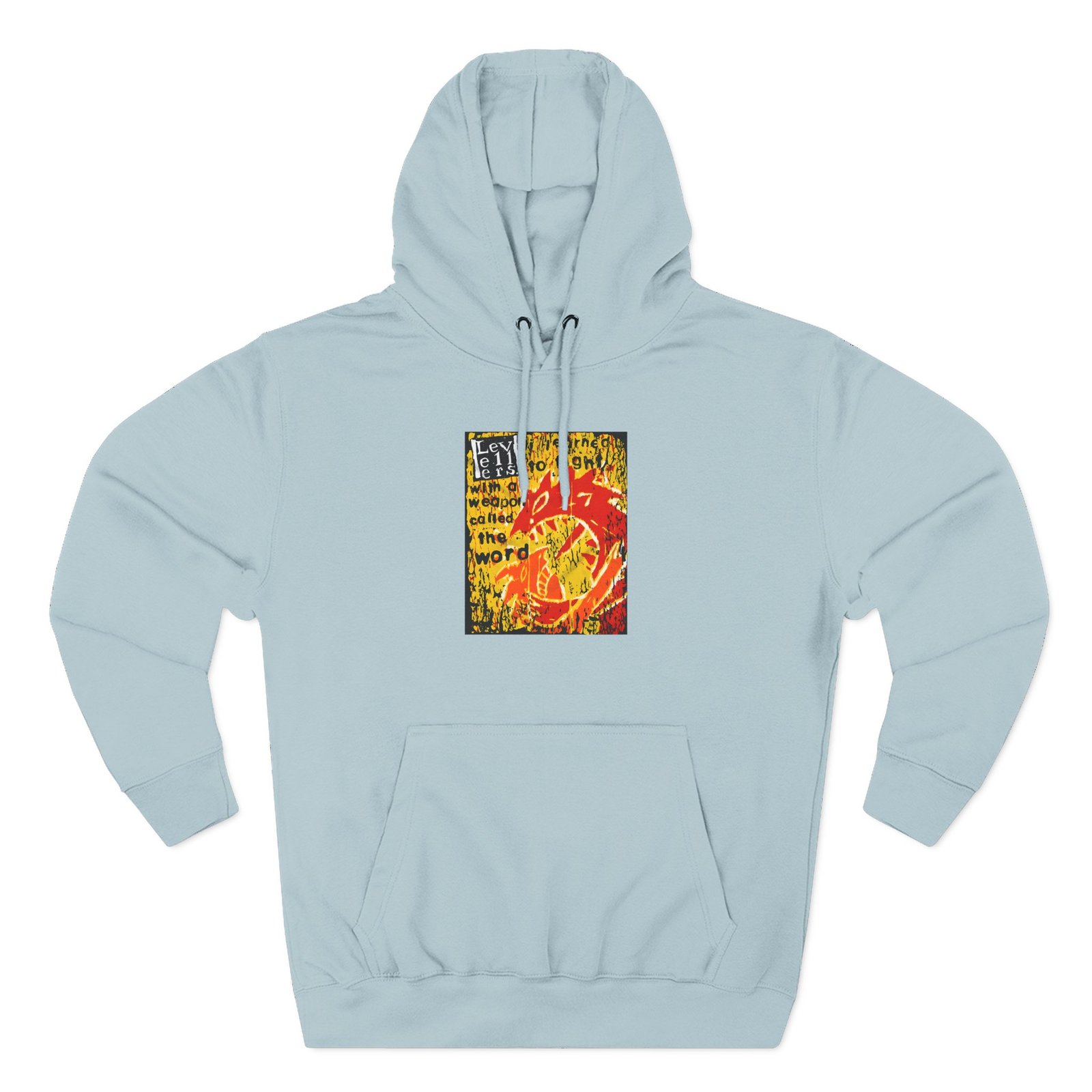 Beat the cold with this Levellers a Weapon Called the Word premium pullover hoodie that’s just the right layer of warm and cozy. Made with three-panel fleece lining, this pullover is double stitched for durability and roomy. Pick one in your favorite color to match your style.