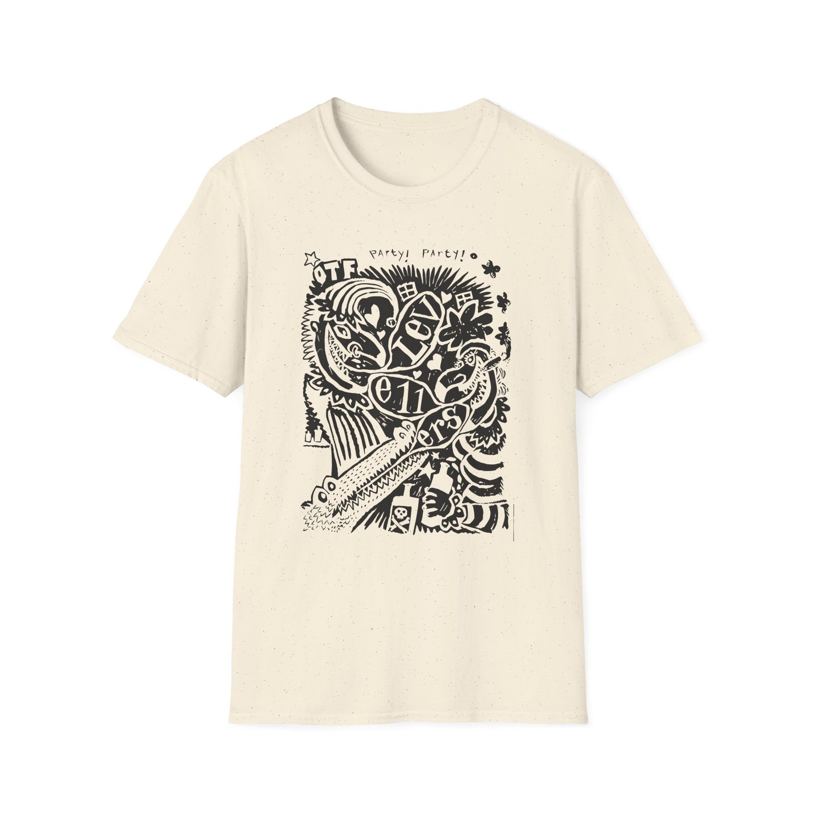 The Levellers Party Party unisex soft-style t-shirt puts a new spin on casual comfort. Made from very soft materials, this tee is 100% cotton for solid colors. Heather colors and sports grey include polyester. The shoulders have twill tape for improved durability. There are no side seams. The collar is made with ribbed knitting to prevent curling damage.