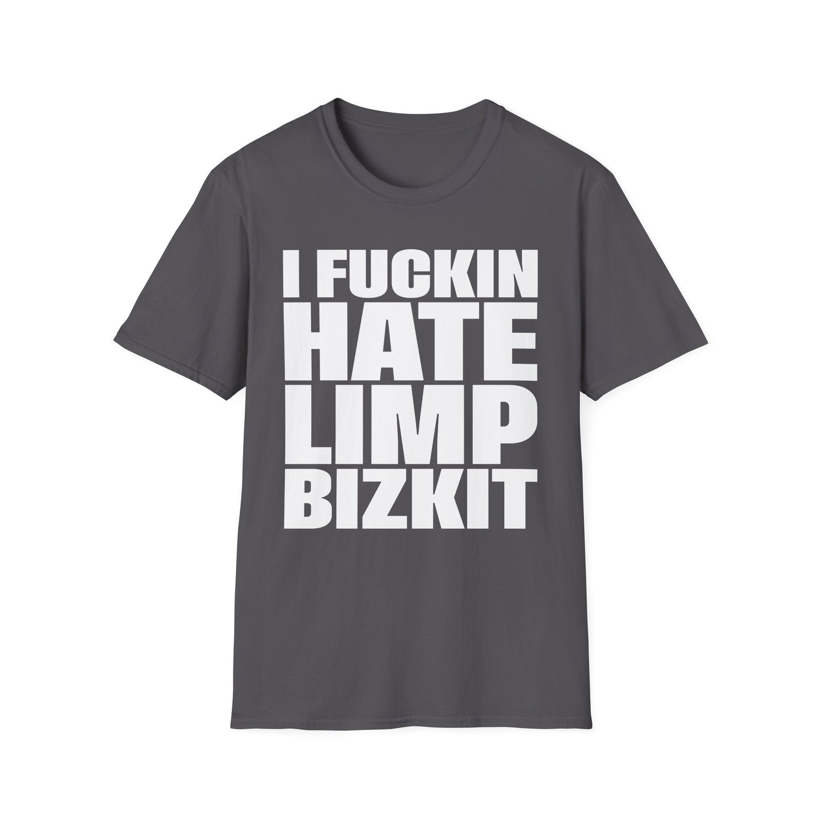 The Limp Bizkit I Fuc*in Hate unisex soft-style t-shirt puts a new spin on casual comfort. Made from very soft materials, this tee is 100% cotton for solid colors. Heather colors and sports grey include polyester. The shoulders have twill tape for improved durability. There are no side seams. The collar is made with ribbed knitting to prevent curling damage.